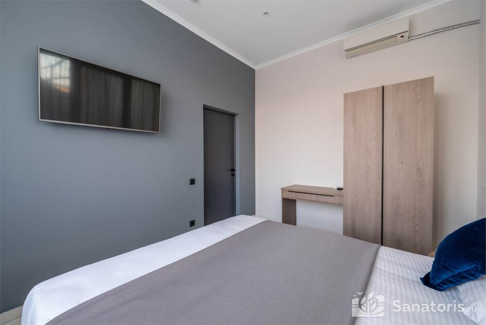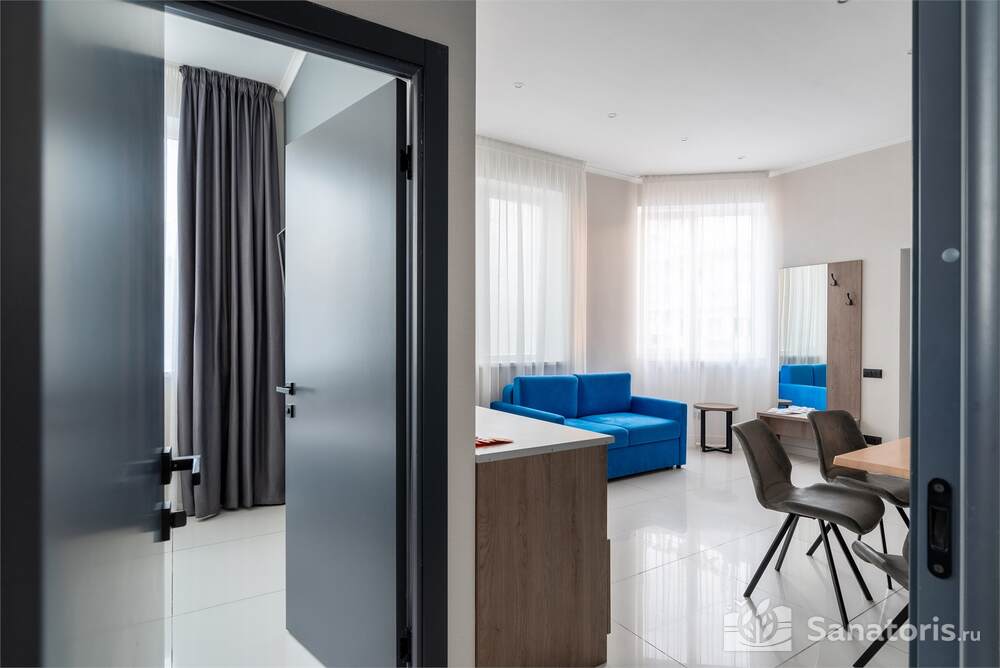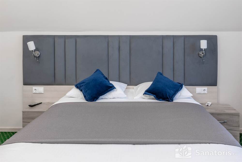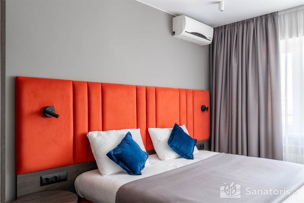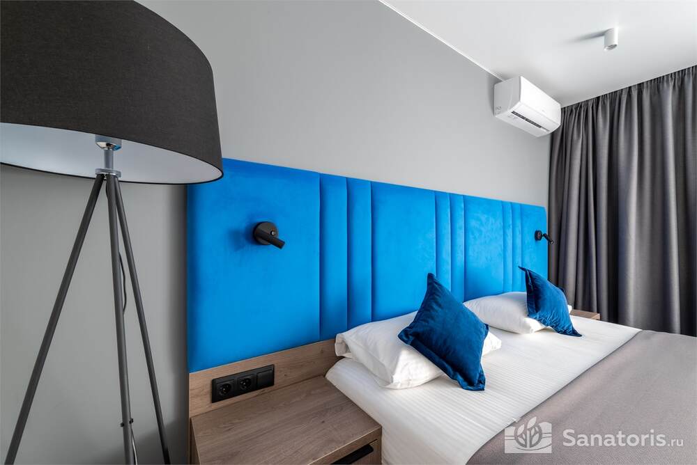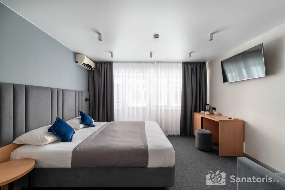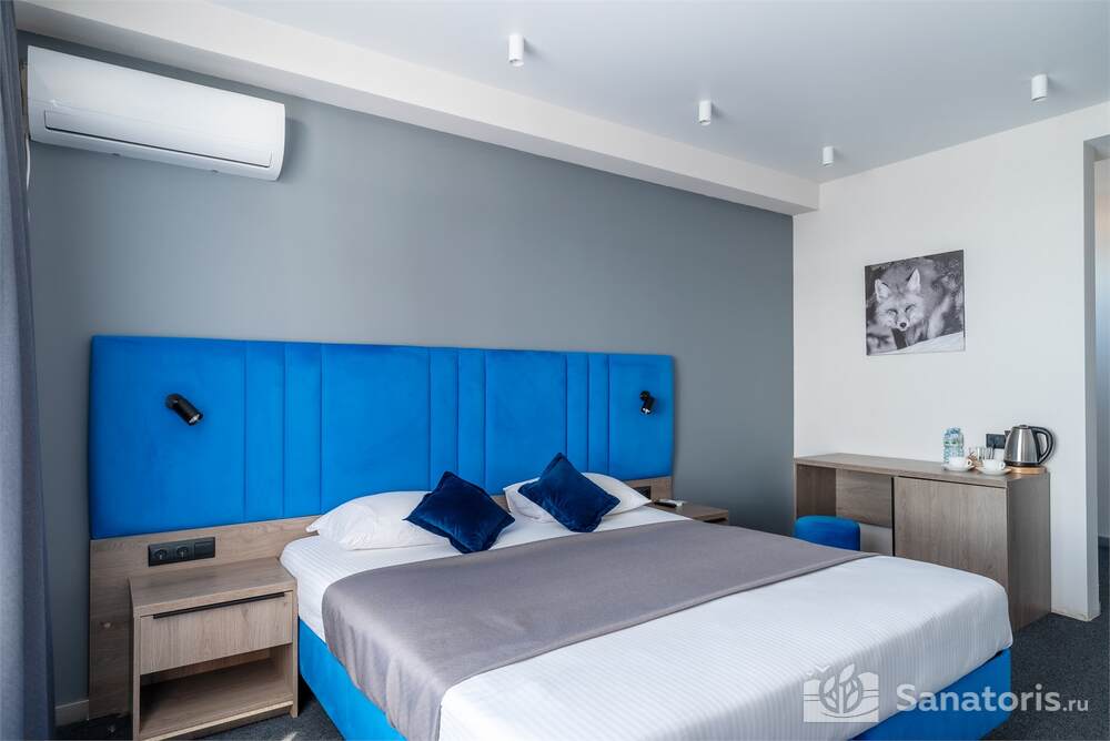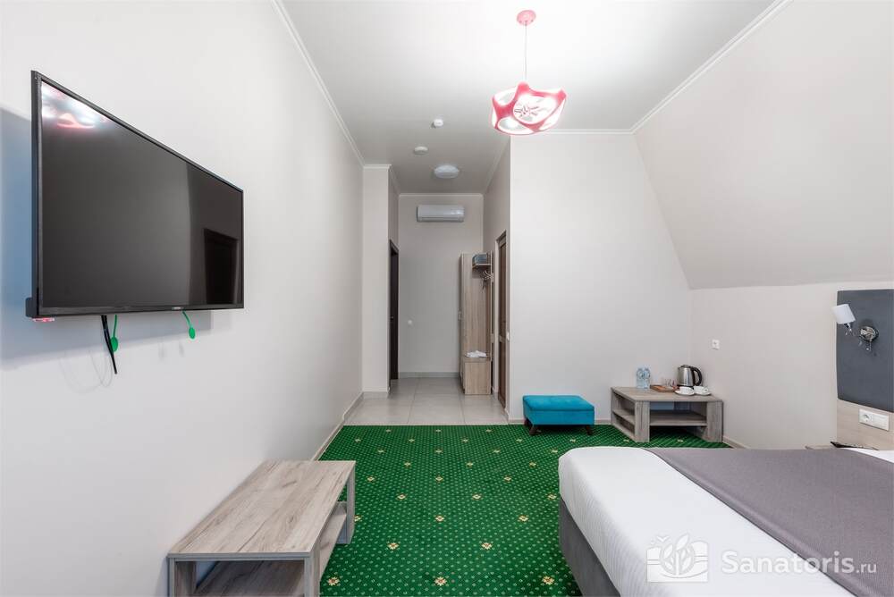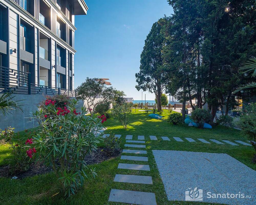 Гостиница состоит из 4 этажей. Она расположена на ухоженной территории, где произрастает много зелени. Одновременно в отеле могут проживать 150 гостей. Для этого предусмотрены апартаменты на любой вкус и кошелек. Кроме этого есть номера для маломобильных людей. Интерьер номеров выполнен в пастельных тонах. Имеются балконы, которые открывают живописную морскую панораму.