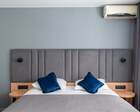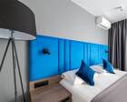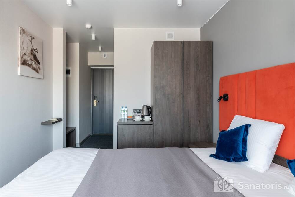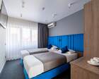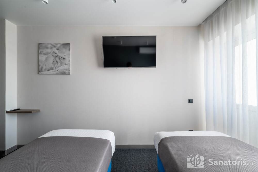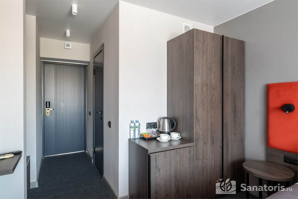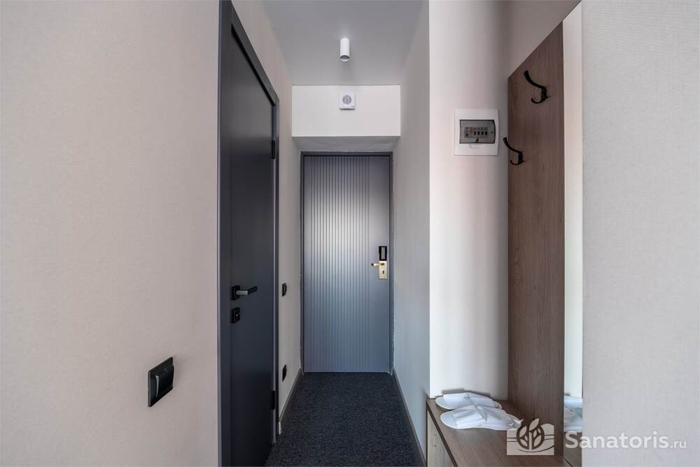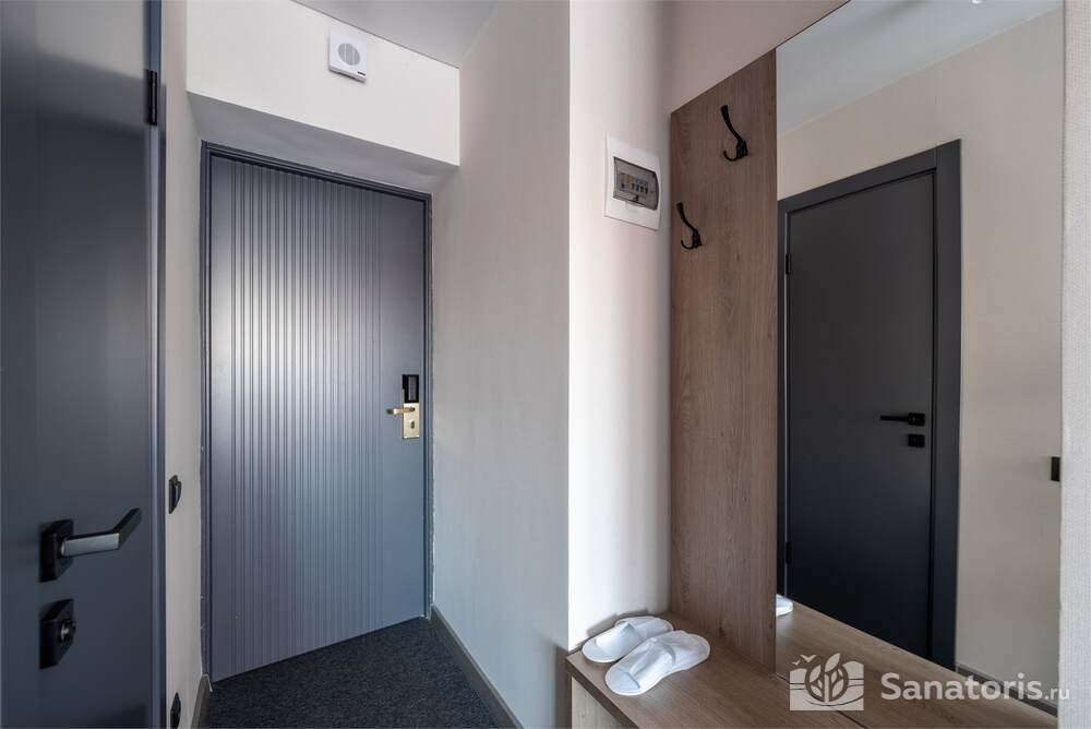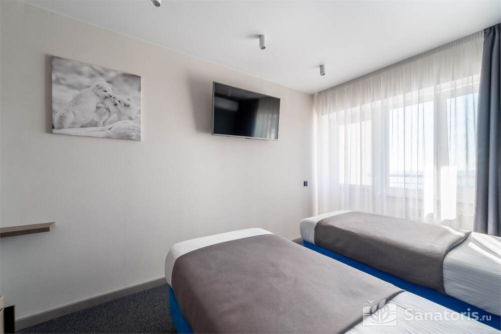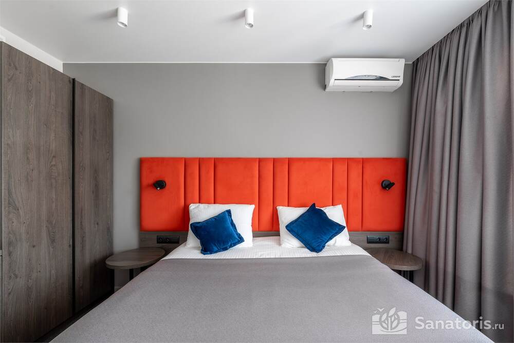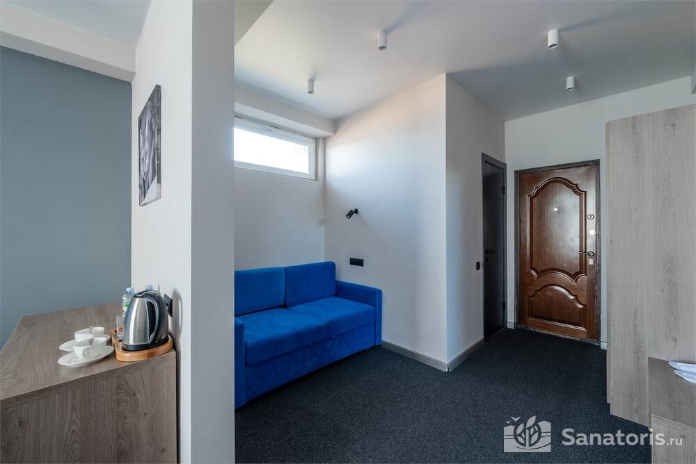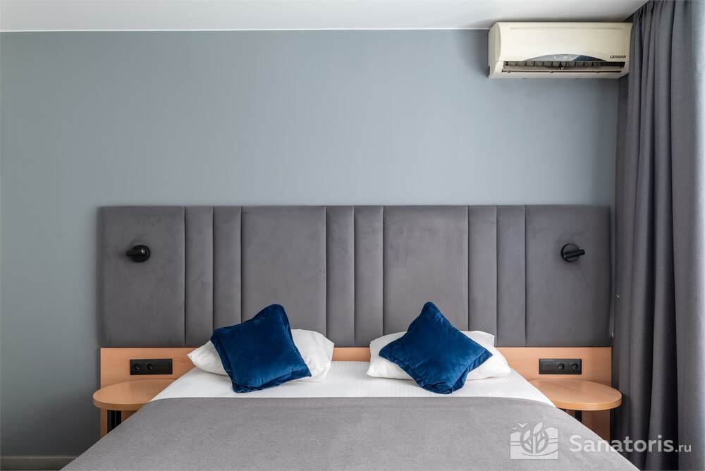 Гостиница состоит из 4 этажей. Она расположена на ухоженной территории, где произрастает много зелени. Одновременно в отеле могут проживать 150 гостей. Для этого предусмотрены апартаменты на любой вкус и кошелек. Кроме этого есть номера для маломобильных людей. Интерьер номеров выполнен в пастельных тонах. Имеются балконы, которые открывают живописную морскую панораму.