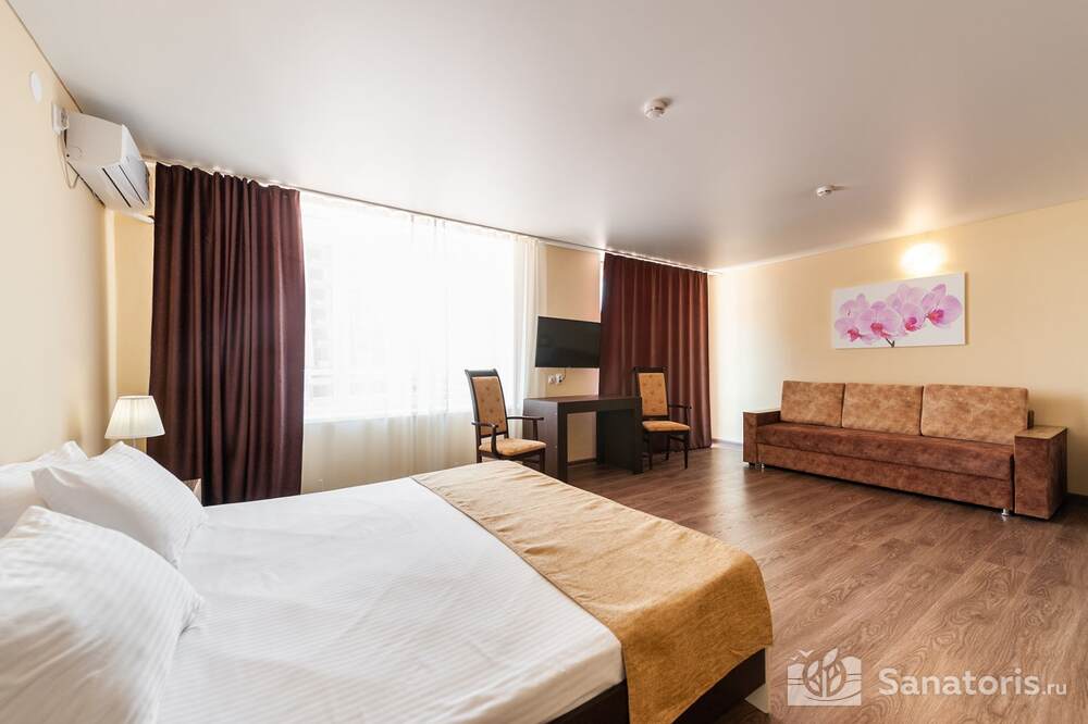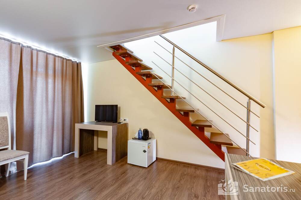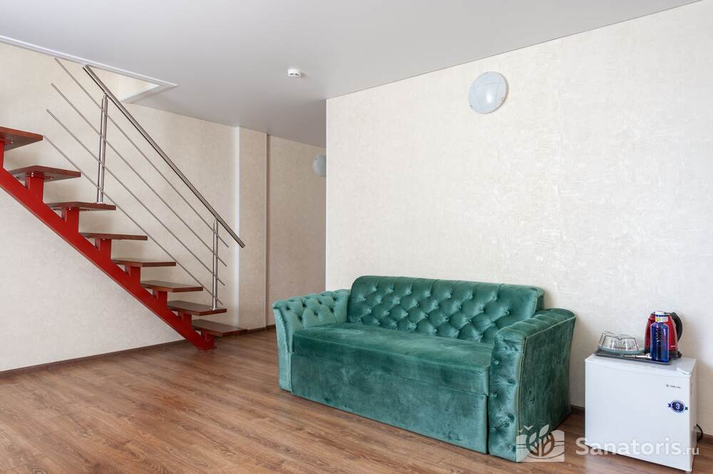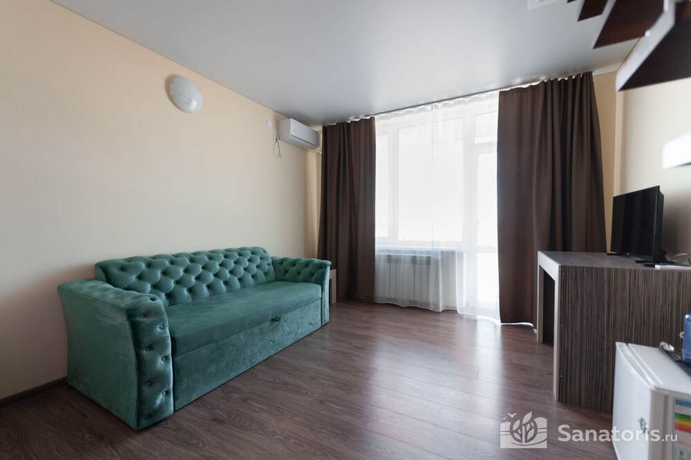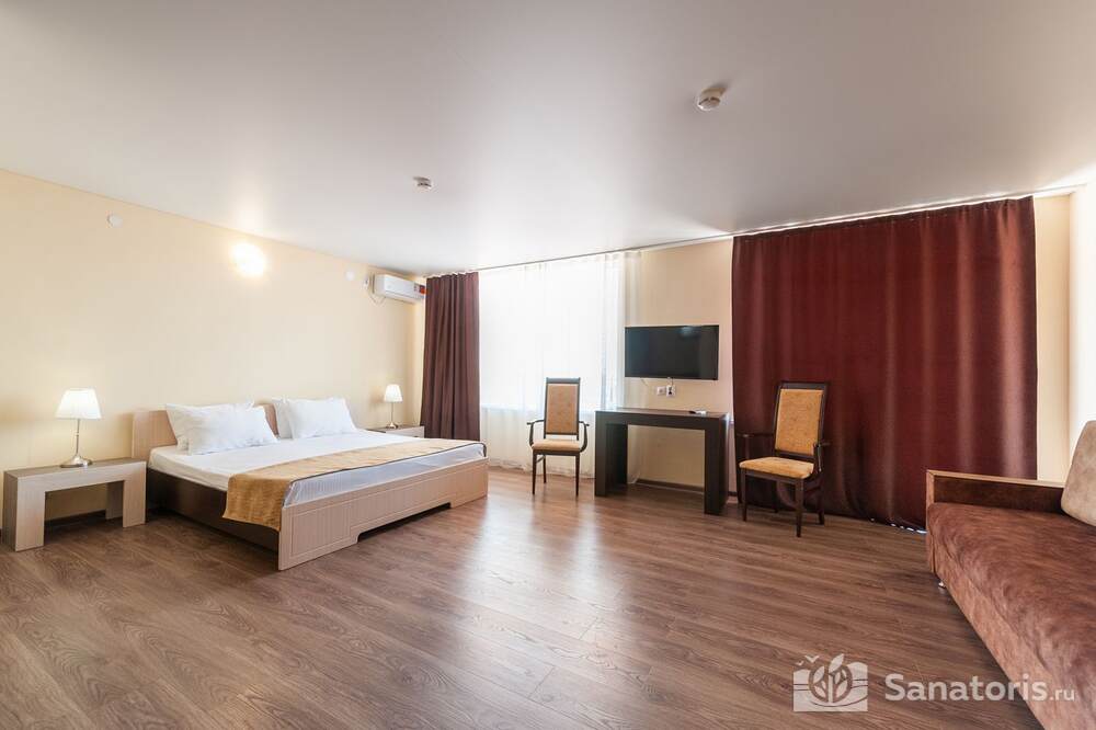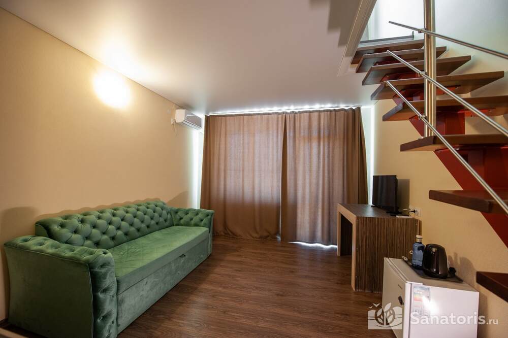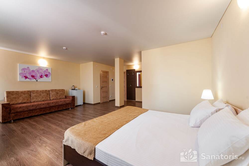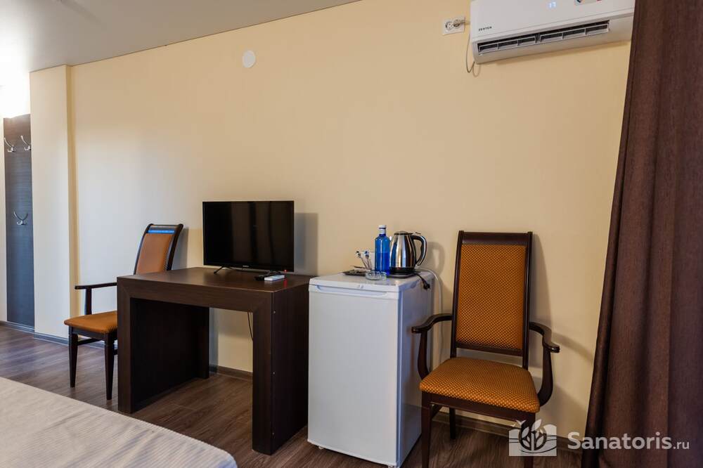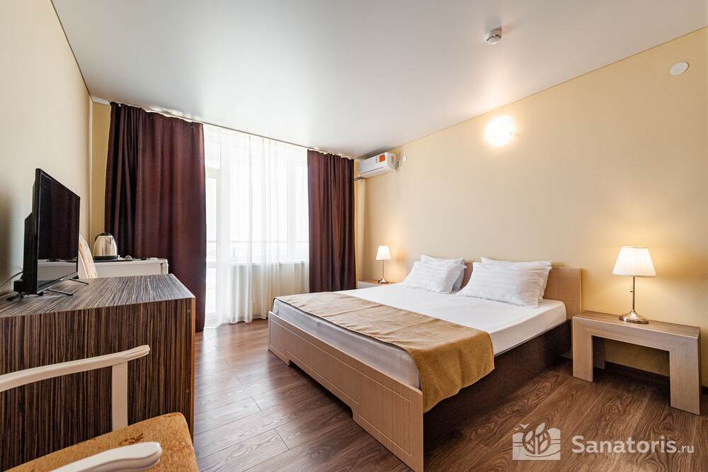 Для проживания туристов предусмотрено 70 номеров разного уровня комфорта. Во всех апартаментах есть туалет, ванная комната, спутниковое телевидение, холодильник, электрический чайник. Есть номера с террасами. Из окон открывается живописный вид на морское побережье.