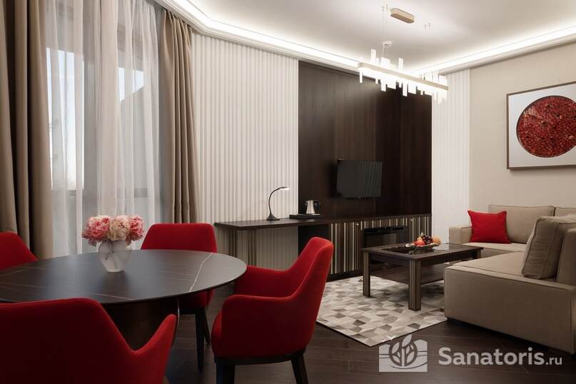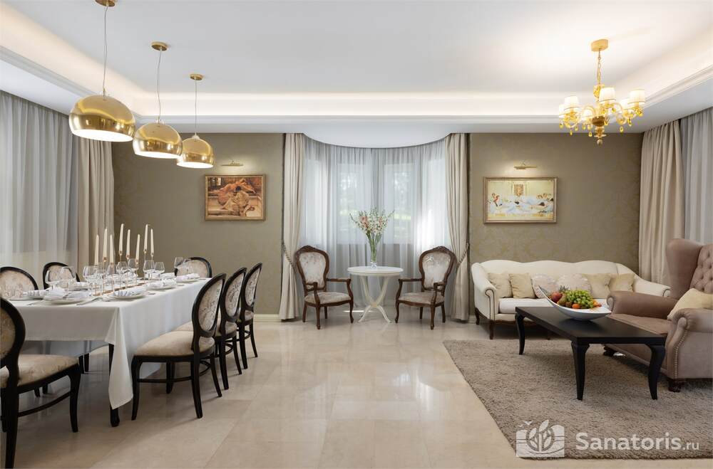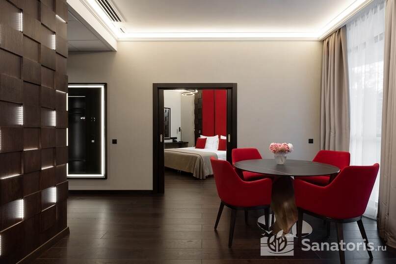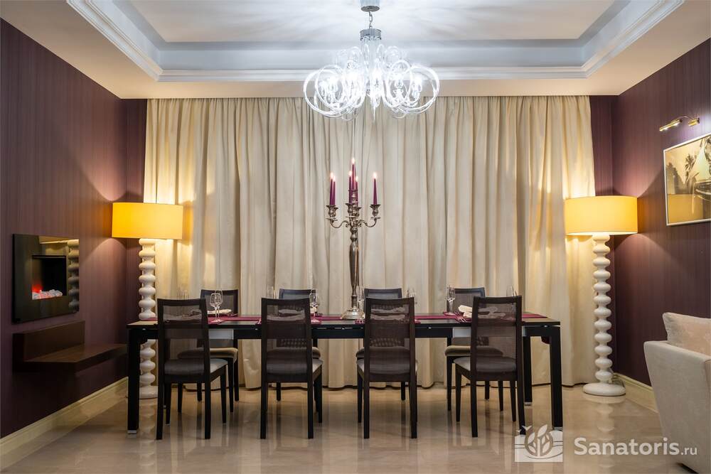 Для гостей комплекса работают три шикарных ресторана. Первый ресторан предлагает итальянскую кухню, второй – французскую, третий – русскую и европейскую. Круглосуточно функционирует лобби-бар, где можно предлагают множество закусок и напитков.