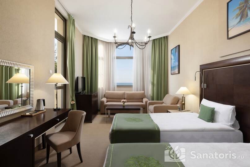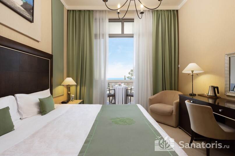 Гостиница располагает 42 современными апартаментами. В каждом номере есть туалет, ванная комната, система кондиционирования, электрический чайник, большой телевизор. Из панорамных окон открывается живописный вид на Черное море и величественные горы.