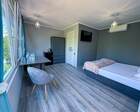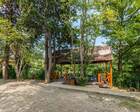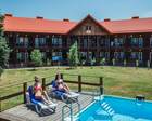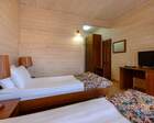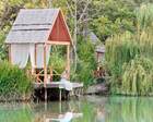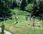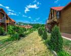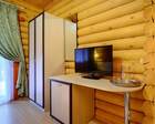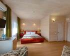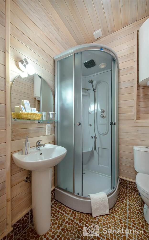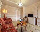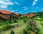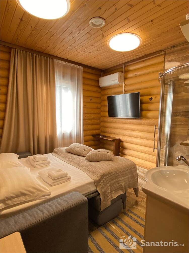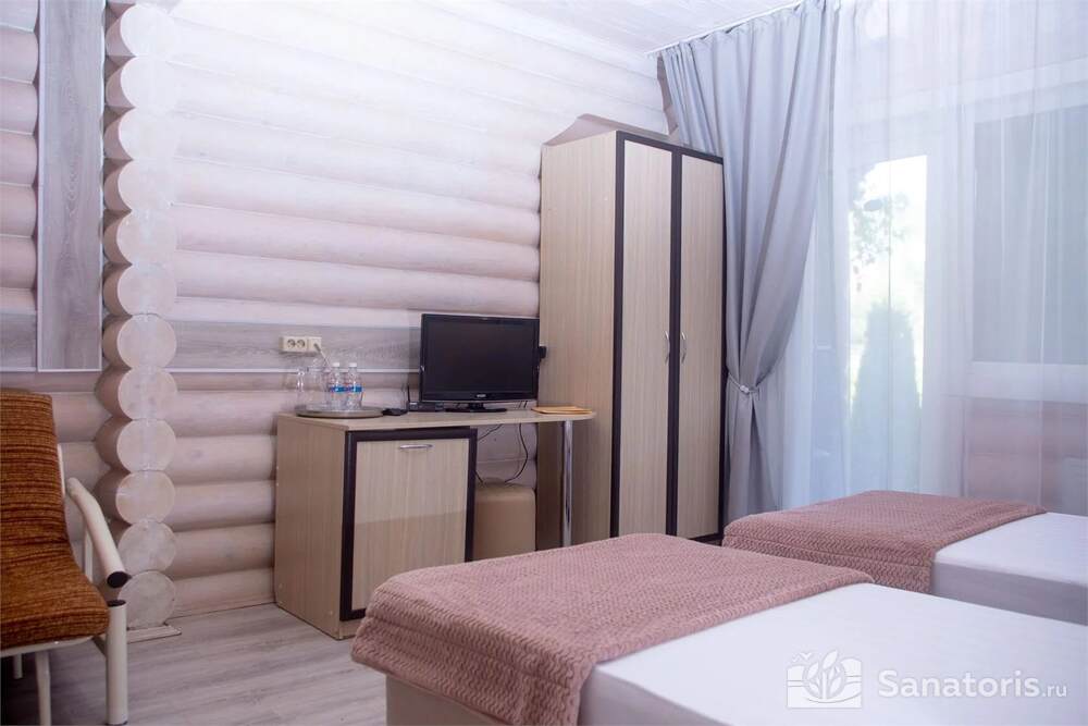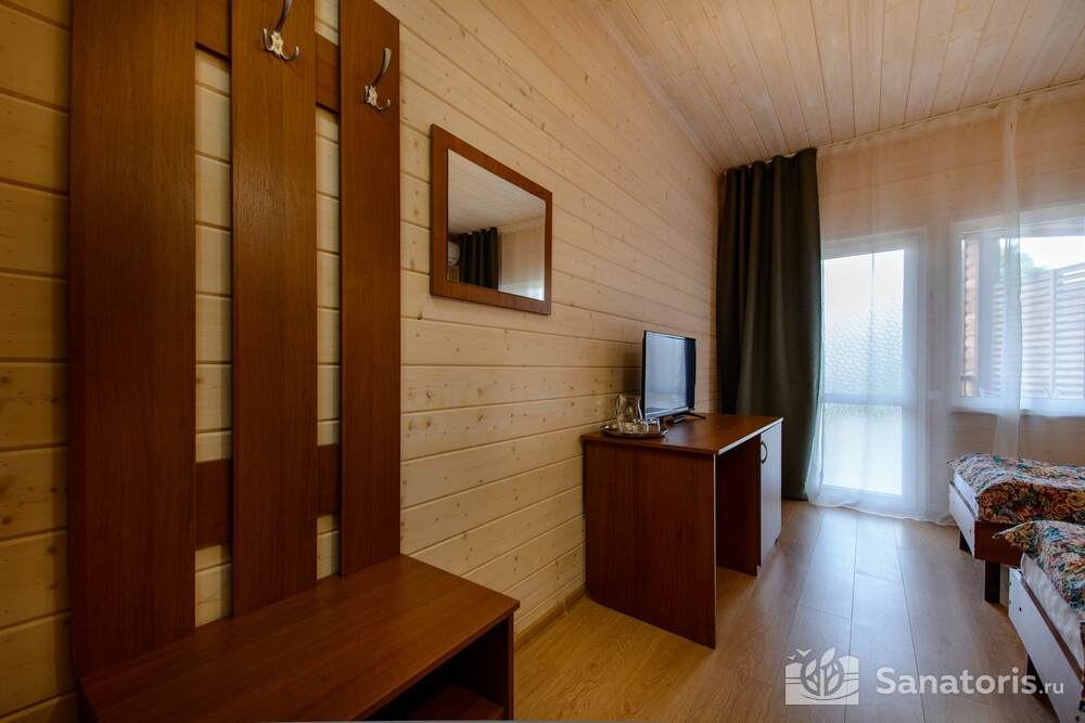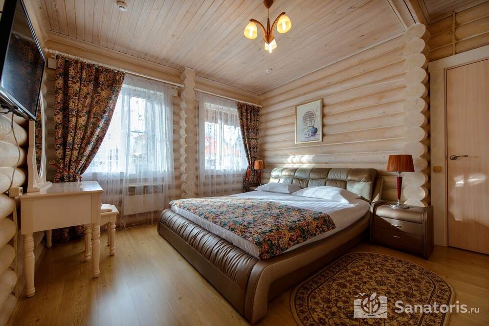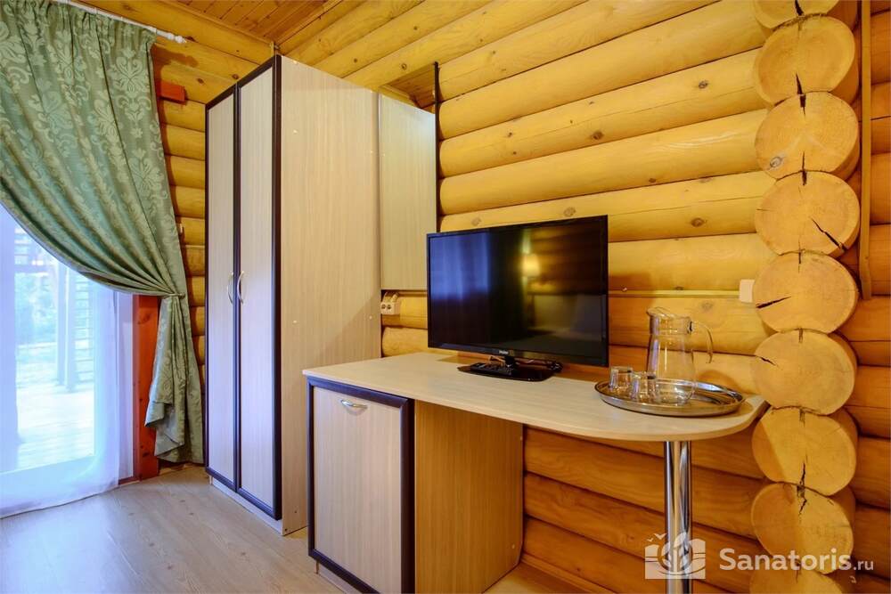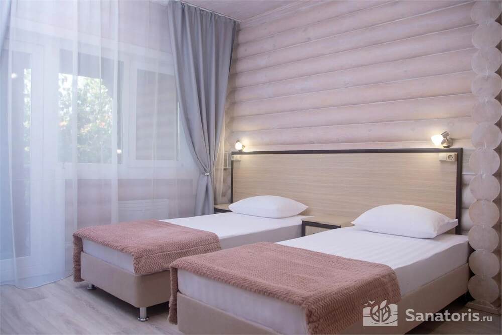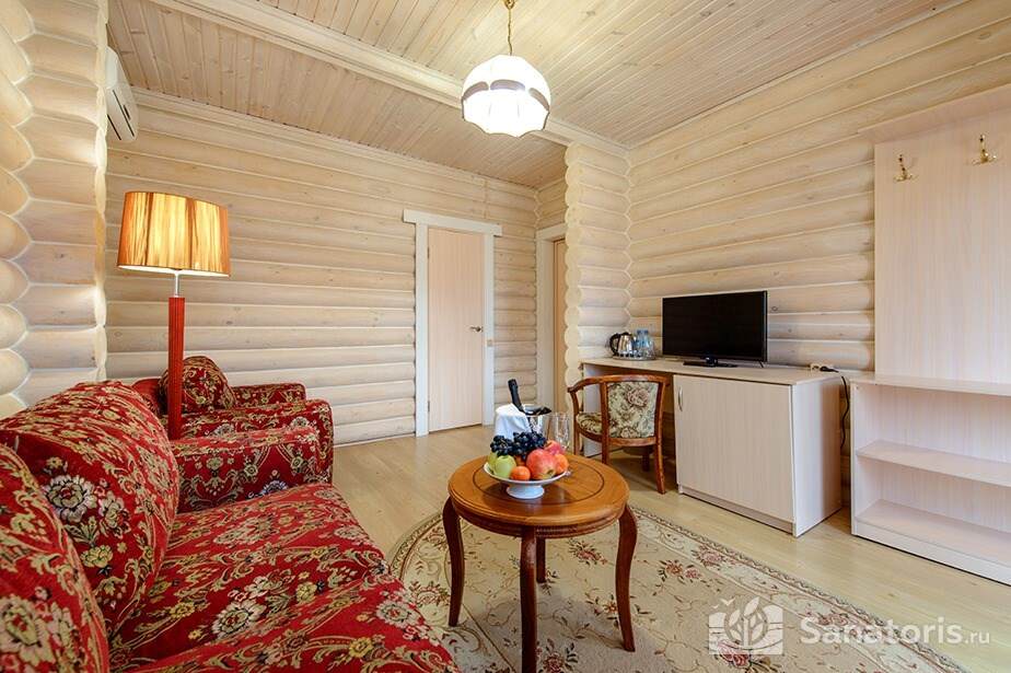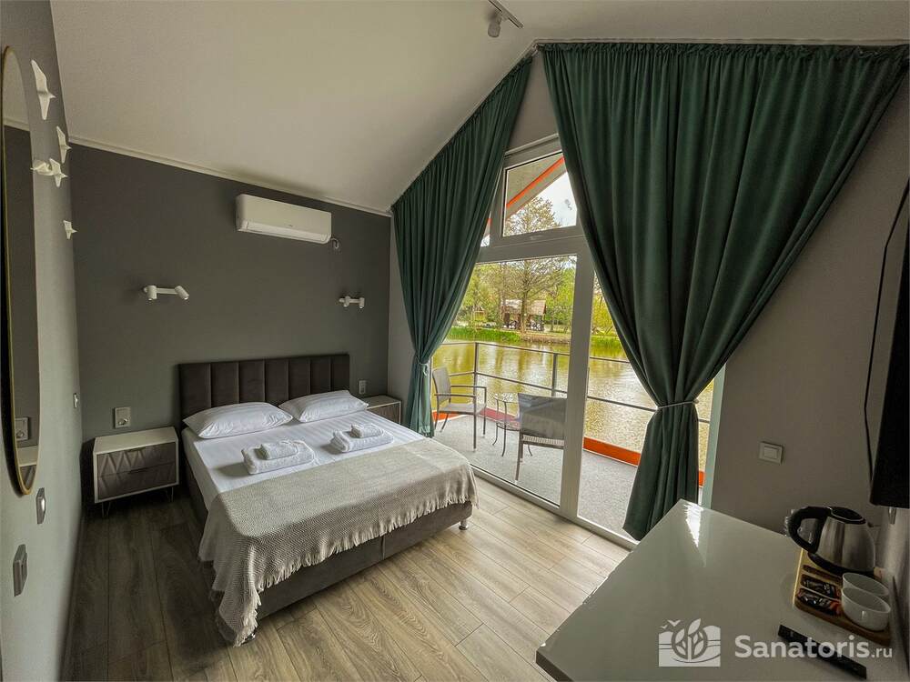 В ухоженной парковой зоне площадью 7 Га размещаются 9 комфортных коттеджей и 2-этажный корпус, выполненные из соответствующих экоматериалов. Здания великолепно смотрятся на фоне природы. Также приятны прогулки по аллеям, мимо цветущих клумб и декоративных кустарников. Есть летнее кафе на террасе, плавающий ресторанчик, детские площадки и игровые комнаты в гостинице.