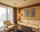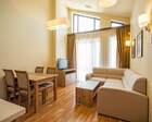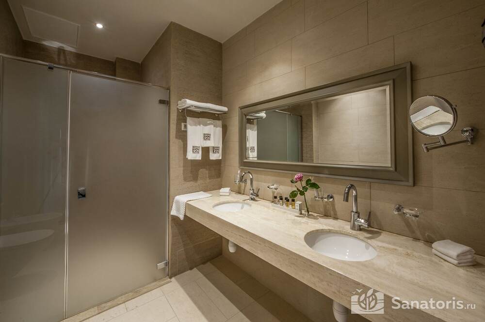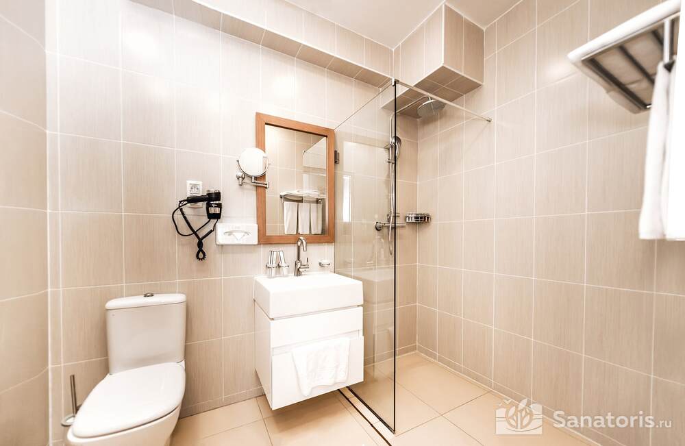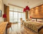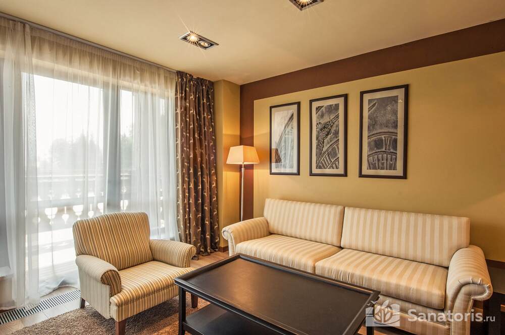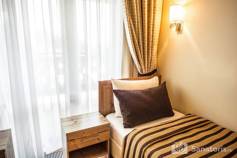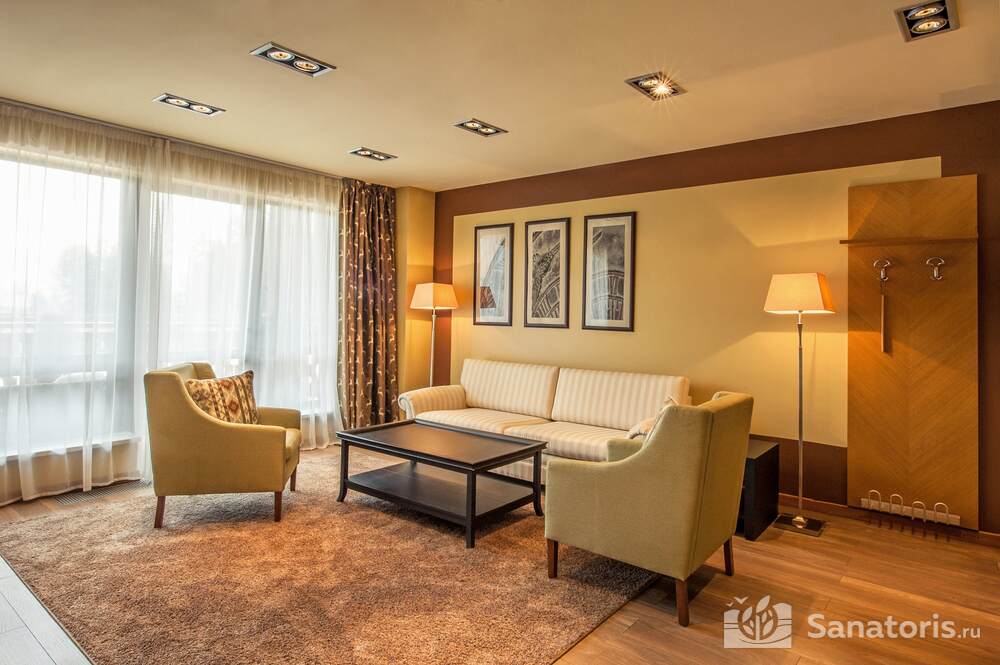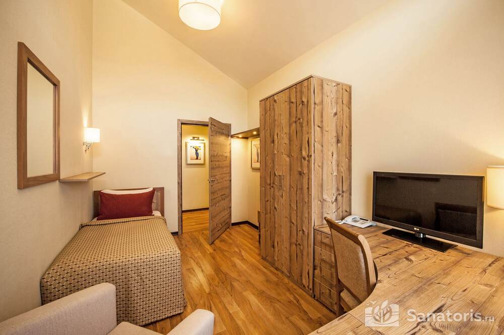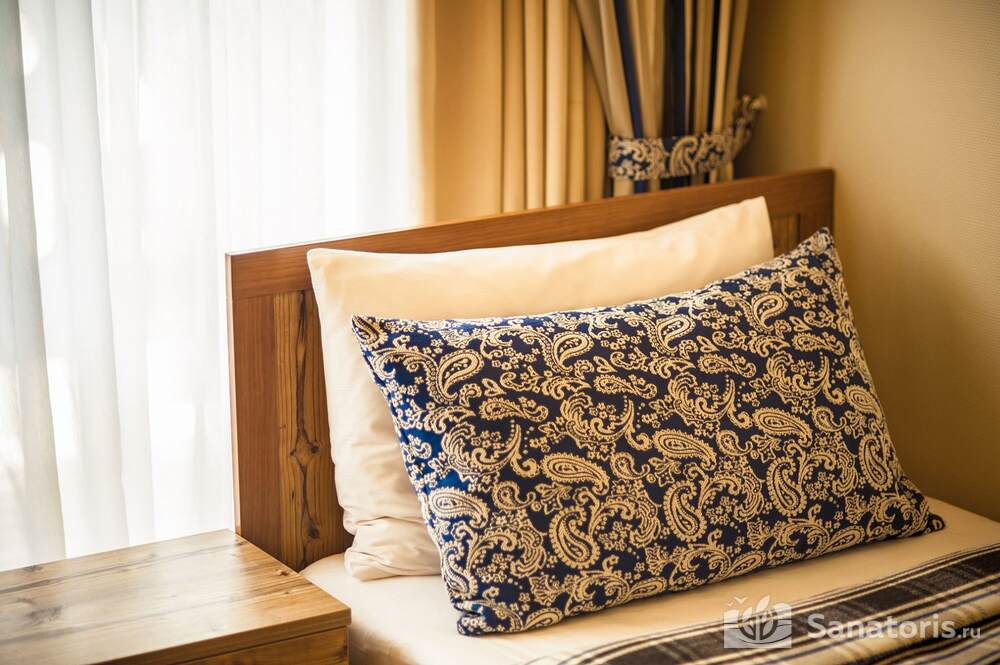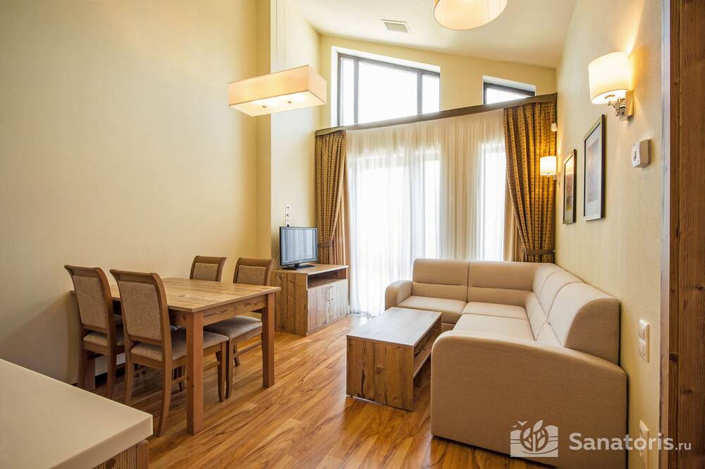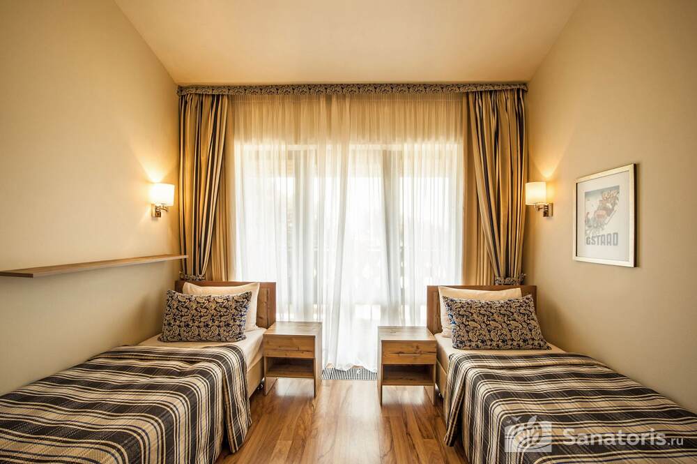 Гостиничный комплекс одновременно может принять в своих стенах до 1100 людей. Номера находятся отдельно от основного корпуса, но между ними имеется удобный переход. В главном корпусе к распоряжению гостей доступны услуги ресторана, посещение спортивного зала и бассейна. Имеются специально оборудованные номера для людей с инвалидностью. Спальные номера оборудованы коммуникациями первой необходимости. Для личного пользования проживающих доступны чайник, телефон, мини бар, банные принадлежности. Из номера открывается прекрасный вид на горы. Для посетителей доступен бесплатный WI-FI. Прием и заселение новоприбывших гостей осуществляется на ресепшене главного корпуса.