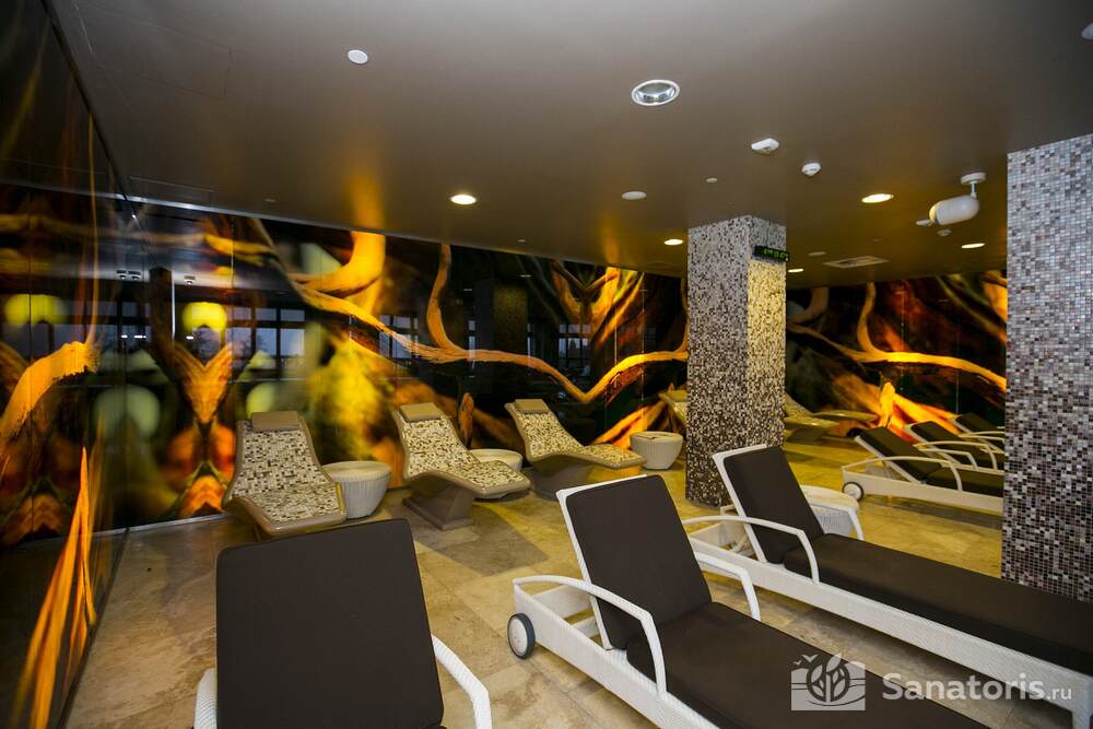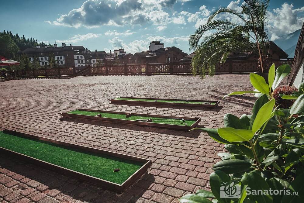 На территории гостиничного комплекса имеется два бассейна, также есть возможность насладиться термальной зоной, где можно окунуться в ледяную воду. В SPA-комплексе можно воспользоваться услугами традиционных саун, солевых и травяных комнат. Из развлечений в отеле имеются: боулинг, фитнес-занятия, скалодром, волейбольное поле и многое другое. А также в теплые времена года можно насладиться прогулкой на лошади. Предусмотрено хранение спортивных принадлежностей и багажа на бесплатной основе.