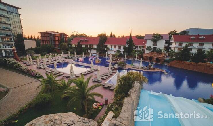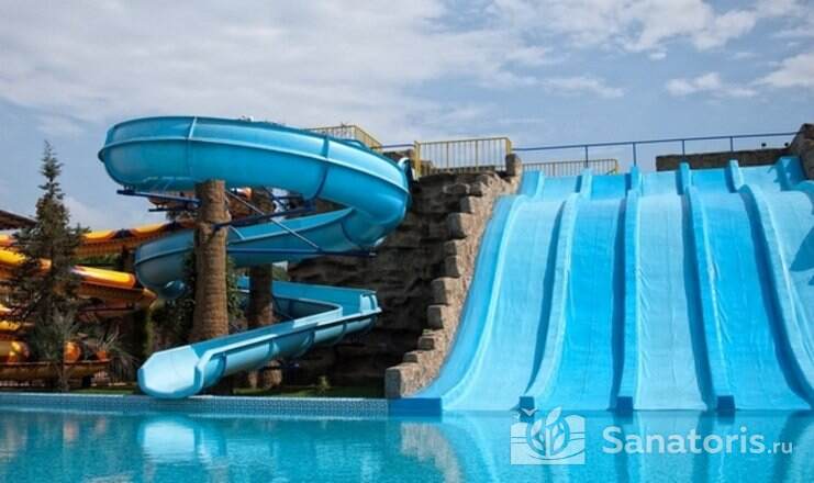 Для постояльцев оборудовано 5 бассейнов. Есть летние и зимние бассейны, с морской водой и пресной. Так же предусмотрены мелкие бассейны для детей. В аквапарке имеются водные горки и аттракционы на любой вкус и возраст.
