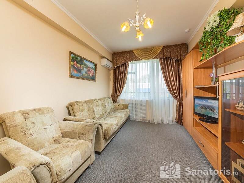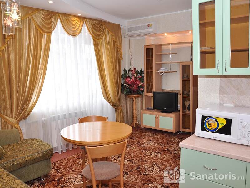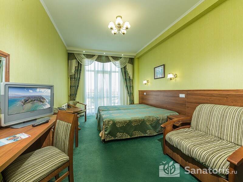 Отдыхающим предлагается трехразовое питание, организованное в межсезонье по формату заказного меню, а летом — в формате "все включено". С учетом категории номеров, для отдыхающих питание в пансионате разделяется на 3 зоны. Для постояльцев люксов отведено отдельное кафе, а отдыхающие в семейных и стандартных номерах питаются в столовой. При этом качество питания в пансионате всегда на высоком уровне. При желании также можно ходить в расположенные неподалеку кафе и рестораны, где предложат изысканные блюда и доступный уровень цен.