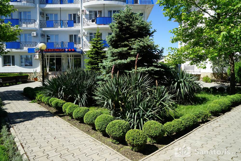 Вся территория пансионата находится под круглосуточным видеонаблюдением, что позволяет обеспечить безопасность и спокойствие отдыхающих. На территории "Рябинушки" множество цветников и зеленых зон, имеются фонтаны с тенистыми аллеями. По вечерам можно как прогуливаться по многочисленным паркам, так и участвовать в интересной программе развлечений от местных аниматоров. Пансионат включает шестиэтажный и несколько четырехэтажных корпусов. Имеются открытый и крытый бассейны, небольшое летнее кафе, уютная столовая и многое другое.