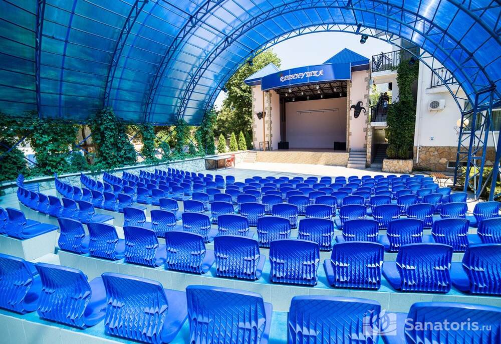 В пансионате работают профессиональные аниматоры, предлагаются всевозможные развлечения. В программу для отдыхающих входят конкурсы и различные игры, концерты и дискотеки, аквааэробика, цирковые и танцевальные представления. Для самых маленьких на открытом воздухе построены игровые площадки, имеются водные аттракционы и кино с мультиками. Неудивительно, что этот пансионат пользуется популярностью у отдыхающих с детьми.