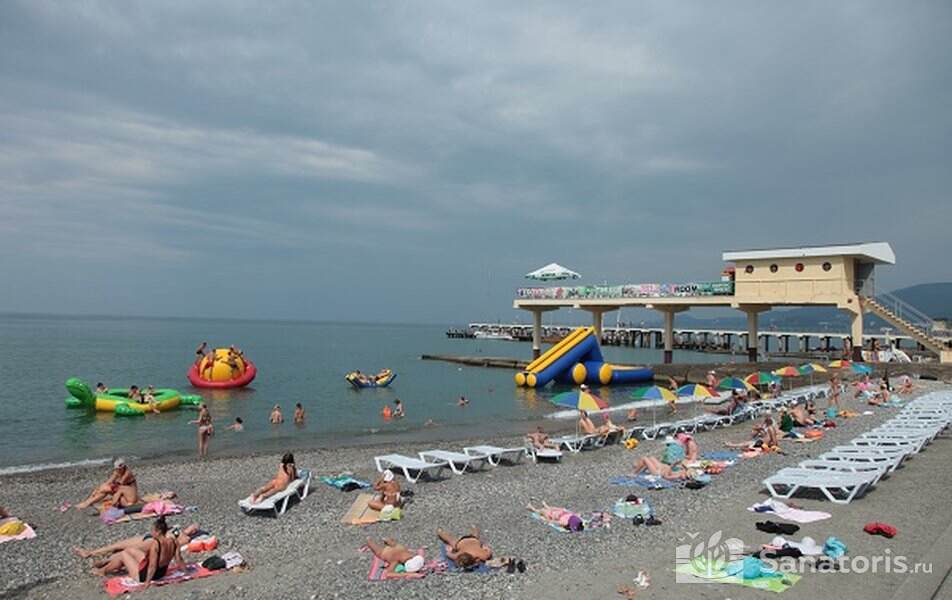 В 300 метрах от санатория расположен собственный пляж, оборудованный всем необходимым для приятного времяпровождения.