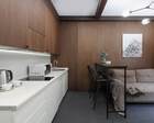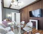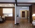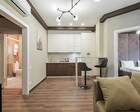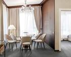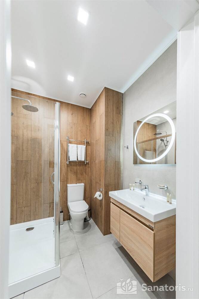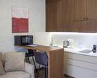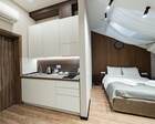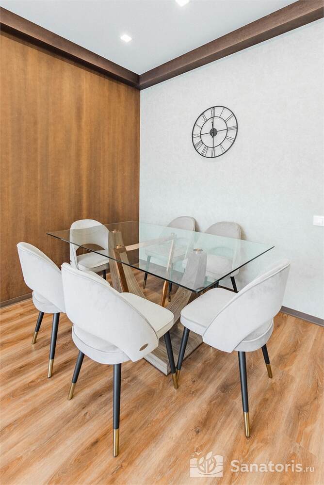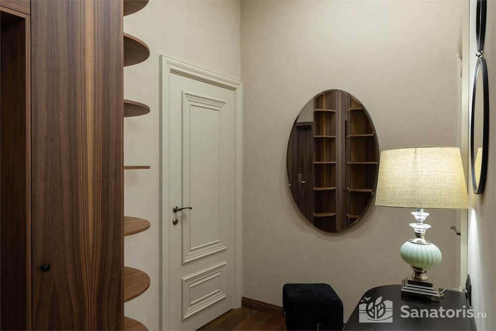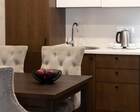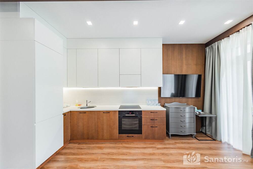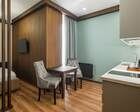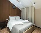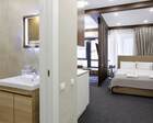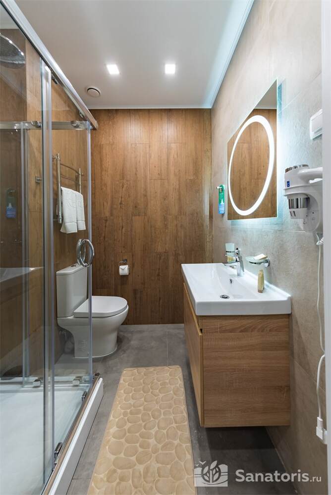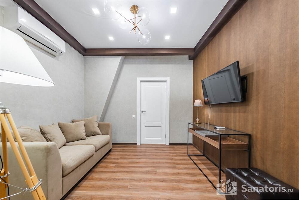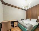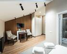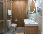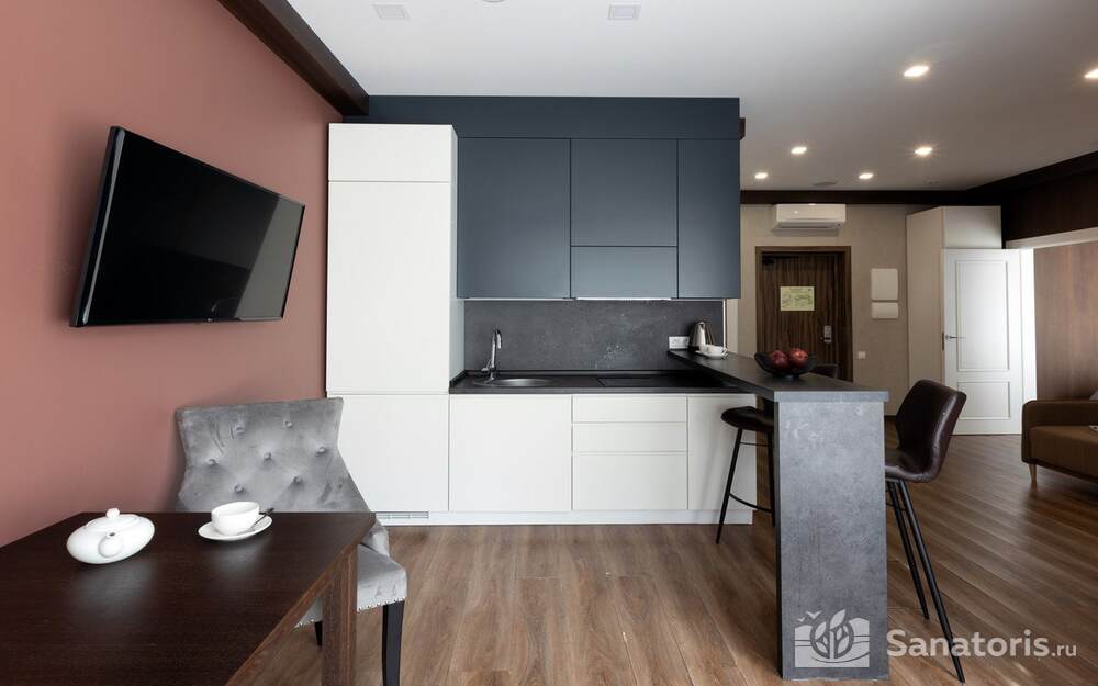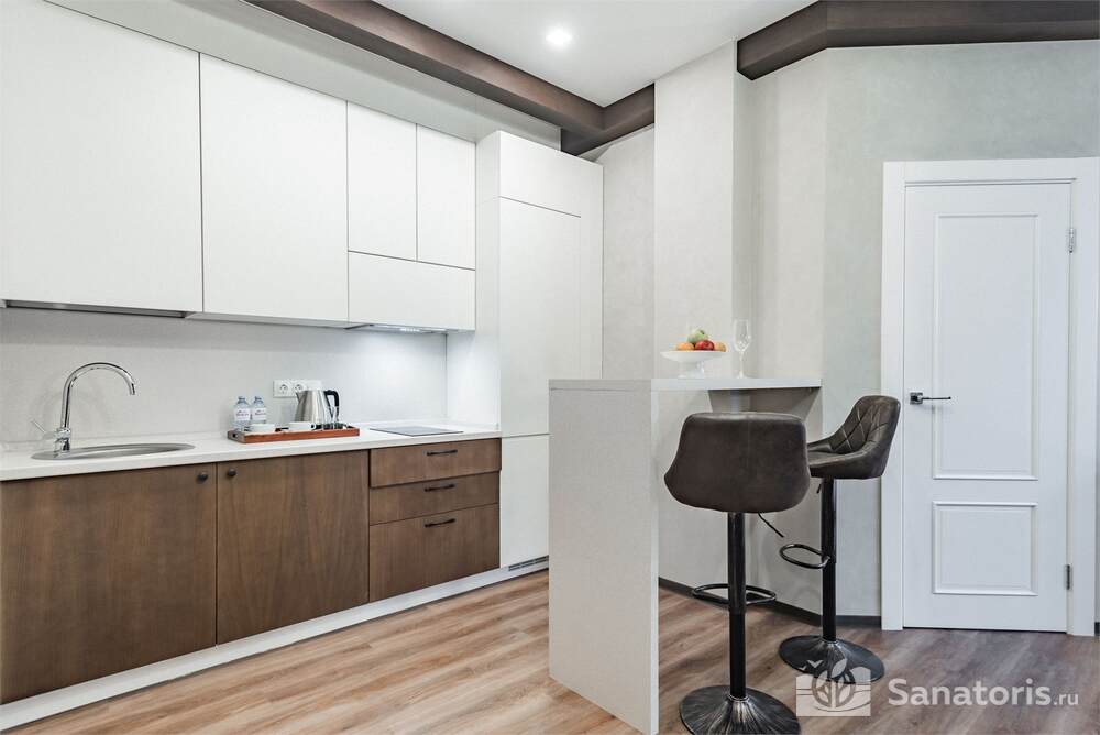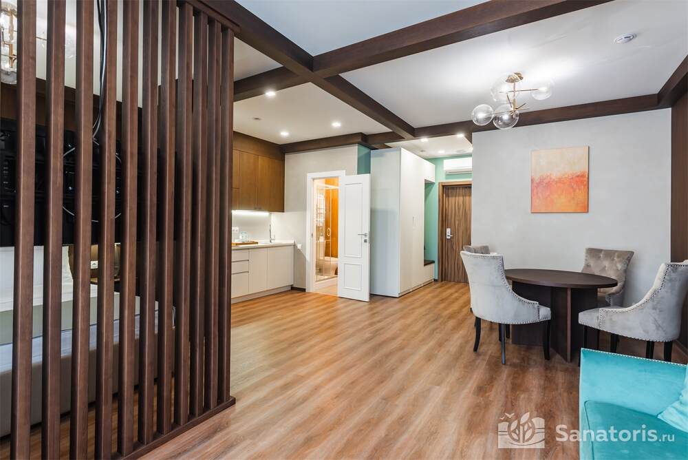 Сдержанность интерьера в комнатах подчеркивается шоколадными оттенками. Базовая комплектация номеров включает в себя: