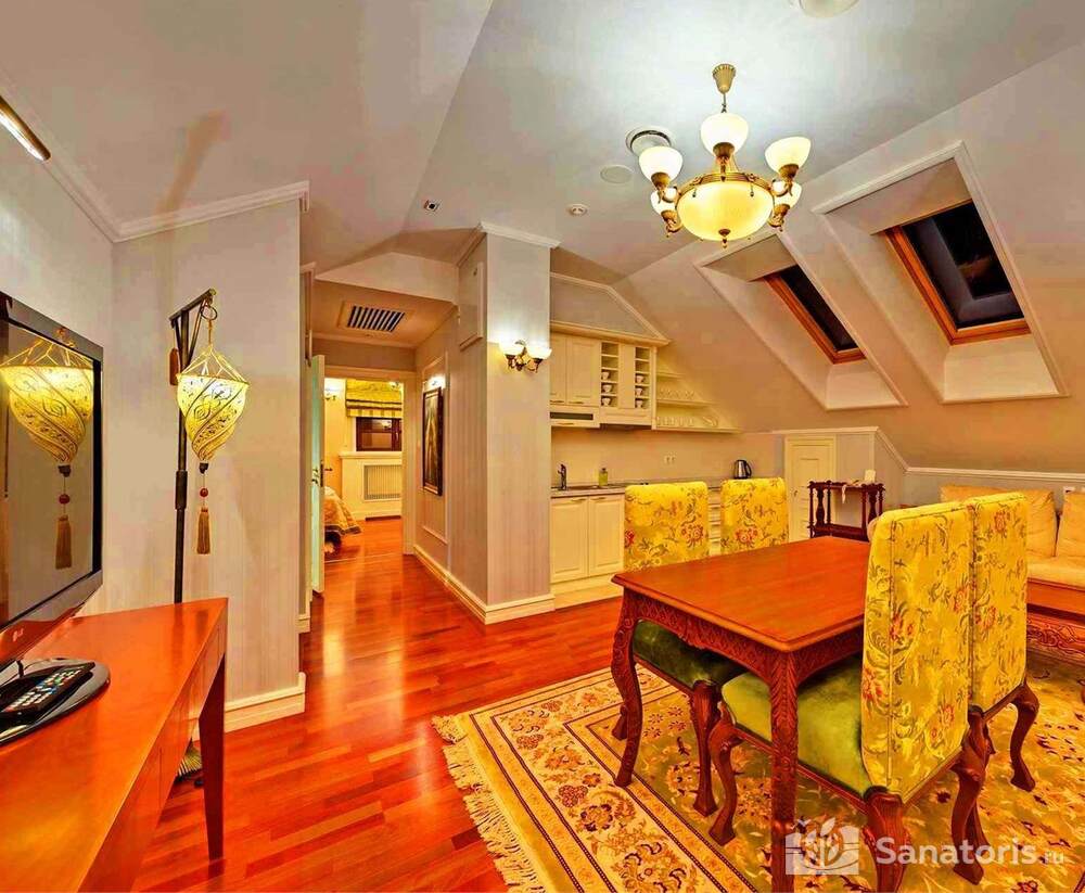 Многим постояльцам понравится, что на прилегающей к отелю местности присутствуют как крытые, так и открытые бассейны. Дополнительно есть комплекс «русская баня», работающий на коммерческой основе.