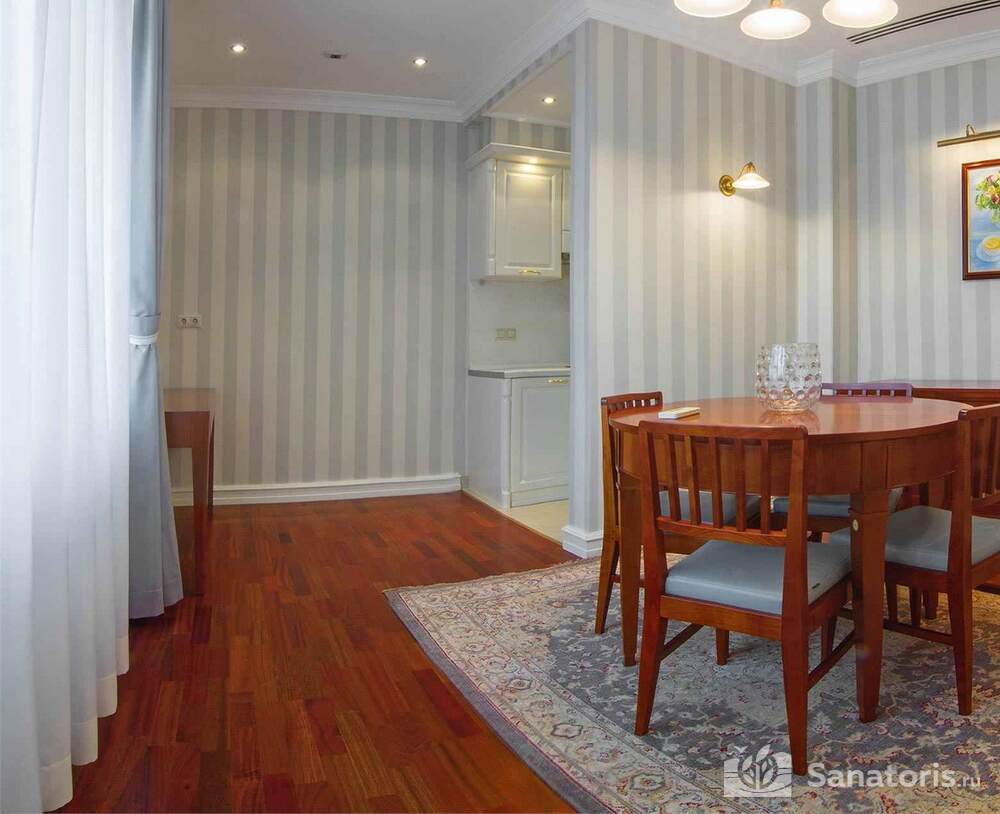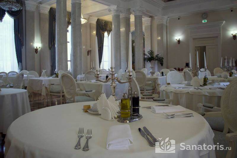 Если речь идет о питании, то оно организуется по системе «шведский стол». На территории санатория присутствуют кафе, а также основной большой ресторан.