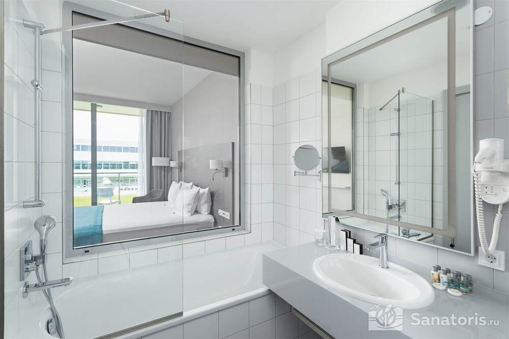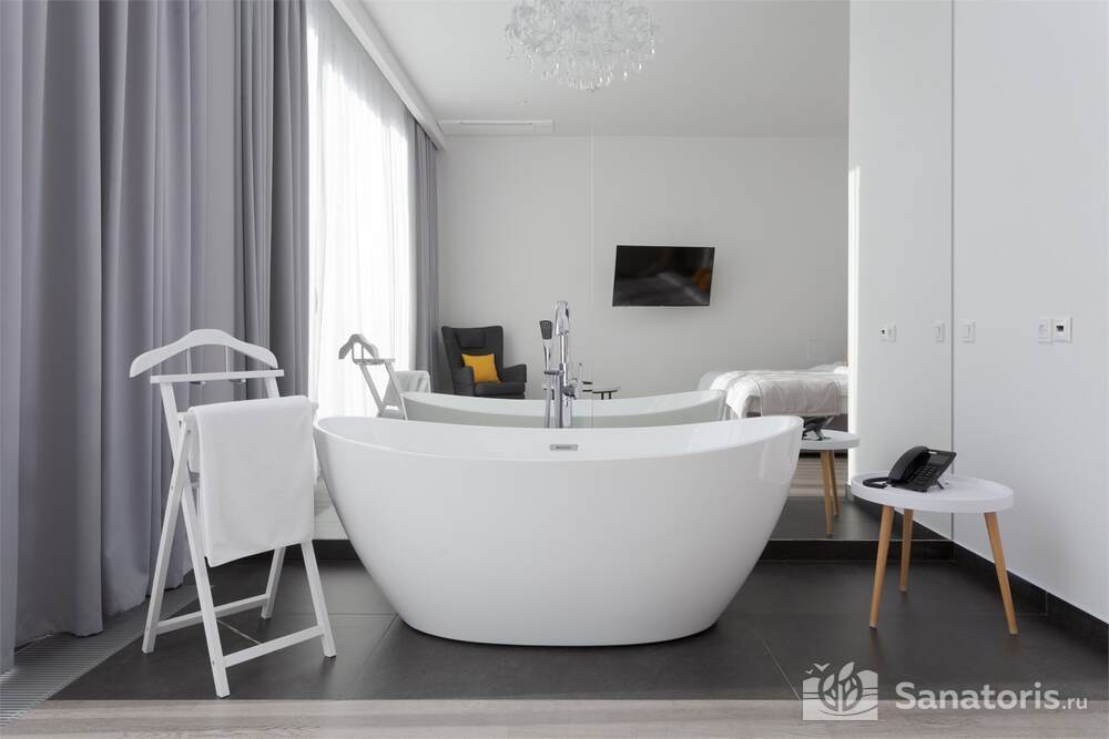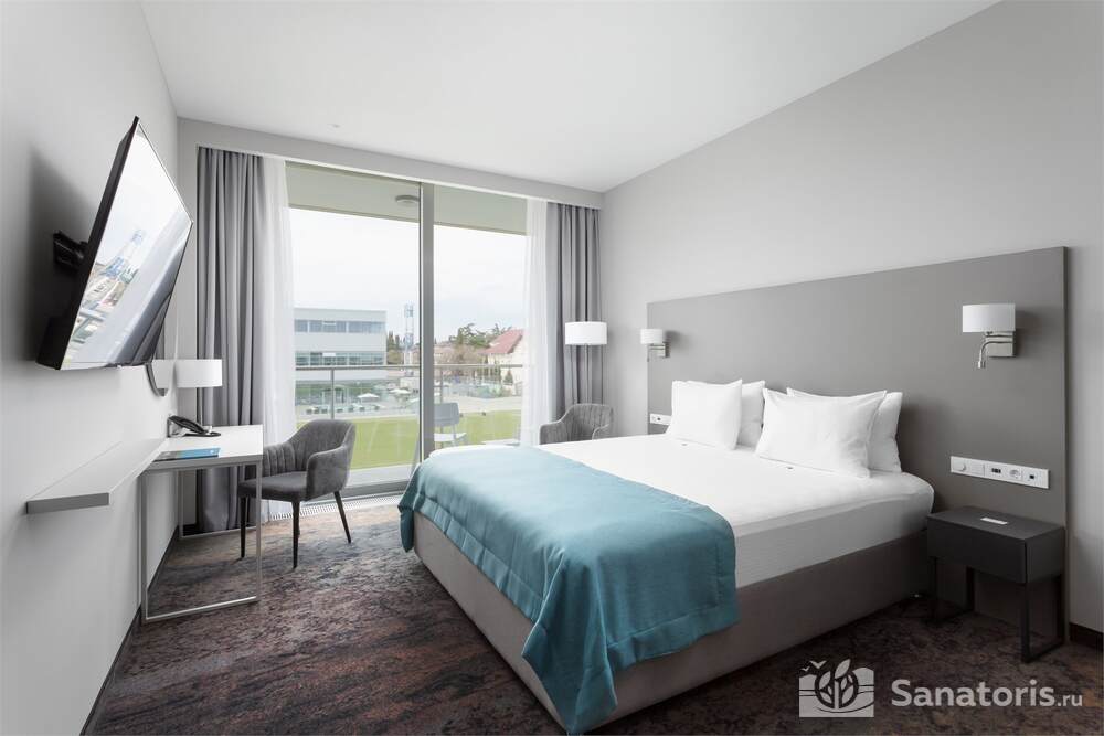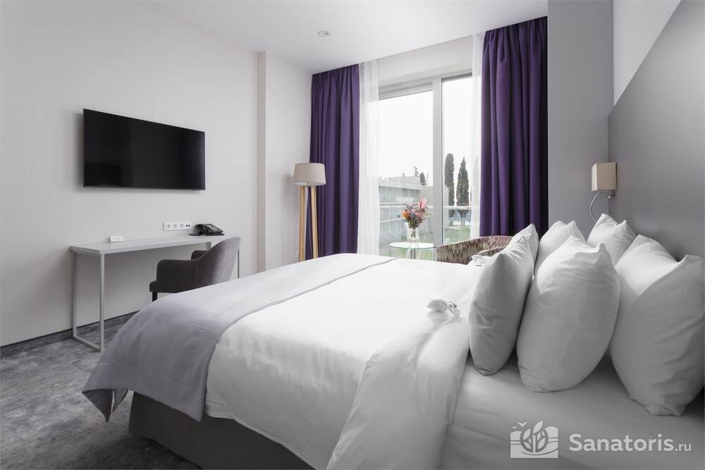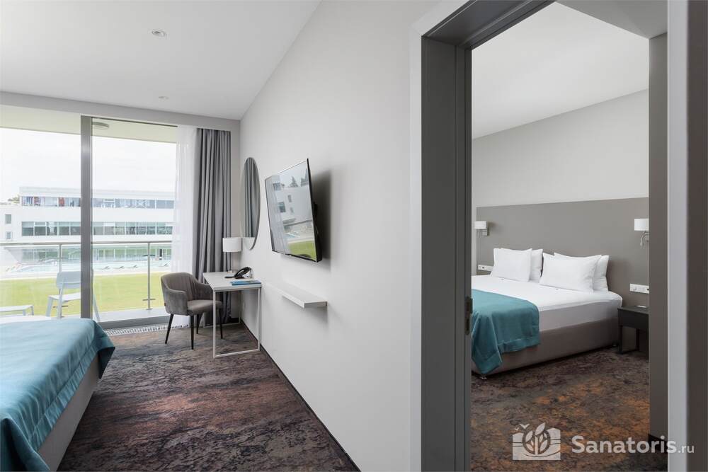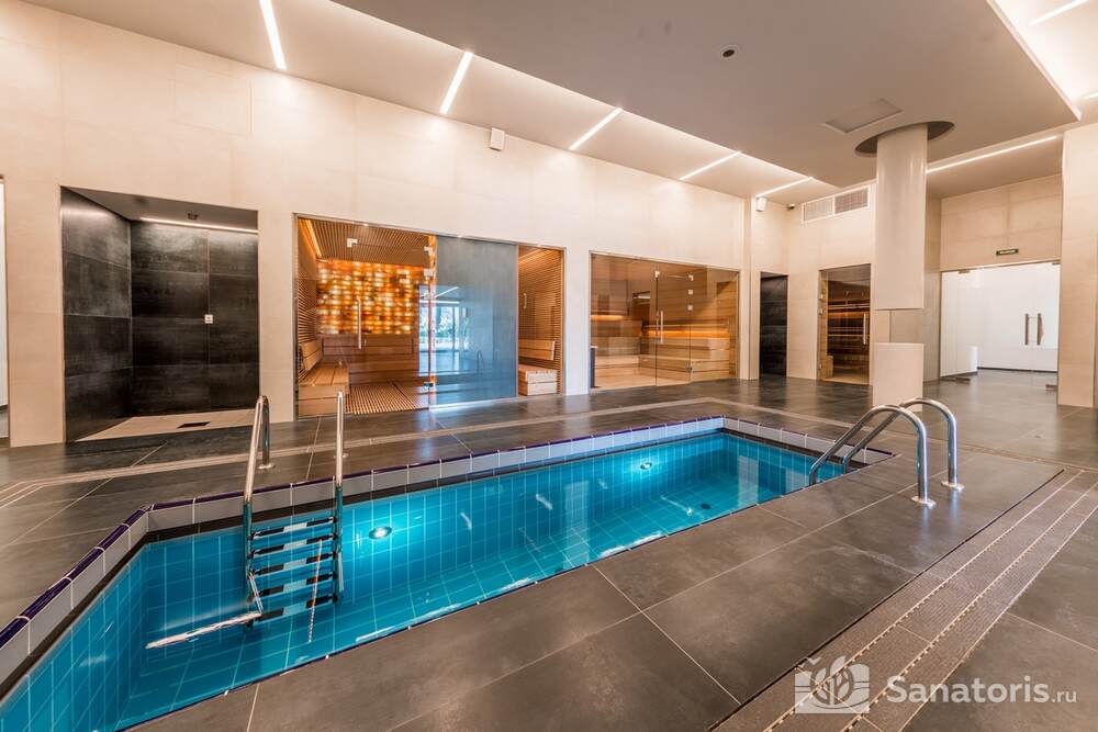 На территории отеля есть большой бассейн с подогревом. В нем можно купаться в любое время года. В термальном центре имеется финская сауна, солевая ванна, хамам, джакузи, русская баня. Здесь же расположен массажный кабинет.