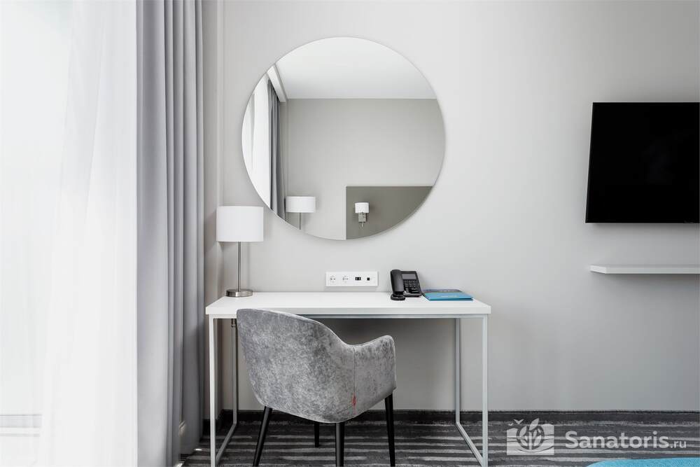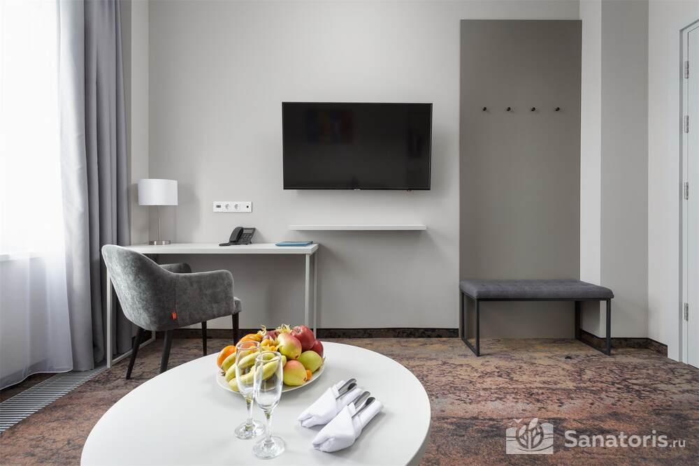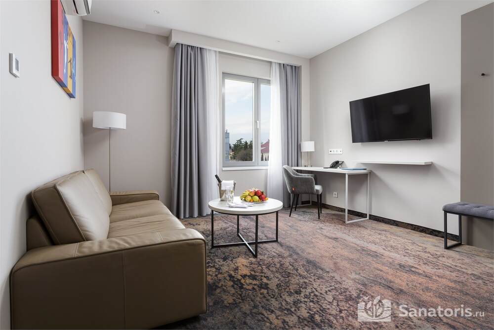 Постояльцы гостиницы проживают в двух корпусах по три этажа каждый. Современные номера обставлены качественной мебелью и предметами декора. В каждом номере есть система кондиционирования, плазменный телевизор, стационарный телефон, Интернет и бар. Удобства расположены в номере. В ванной комнате есть фен, свежие полотенца, банные халаты, комнатные тапочки и гигиенические принадлежности.