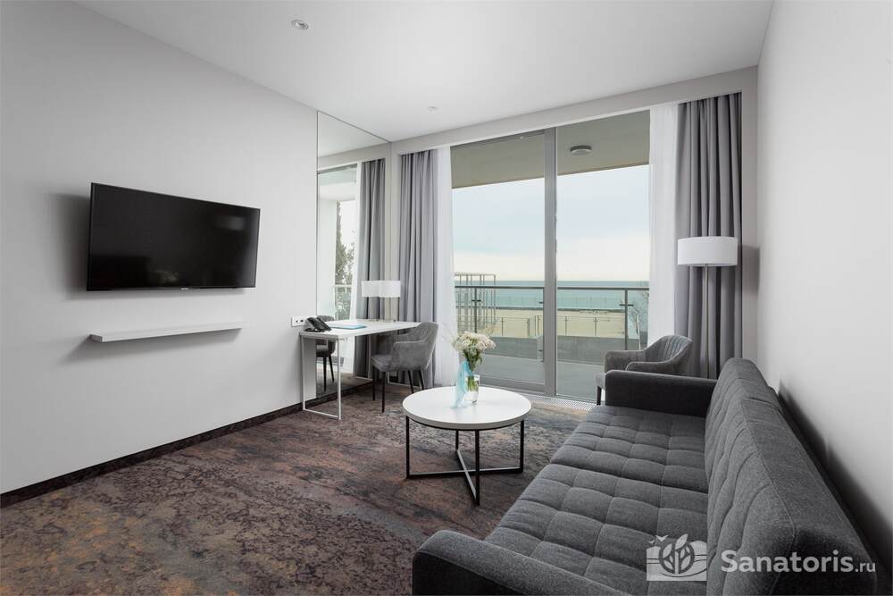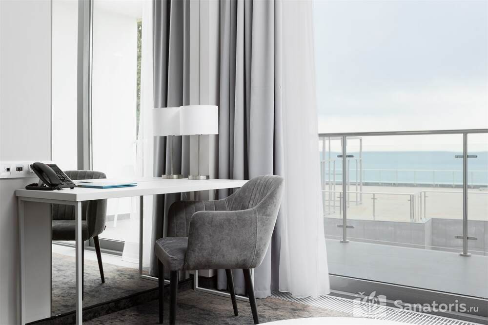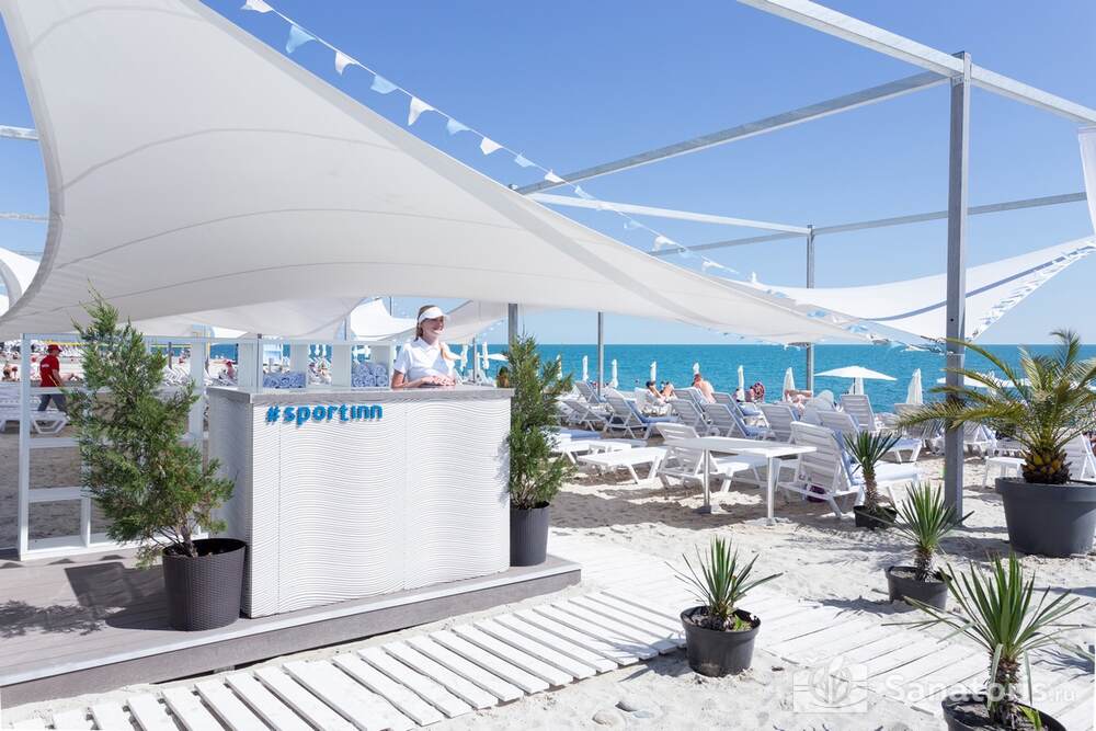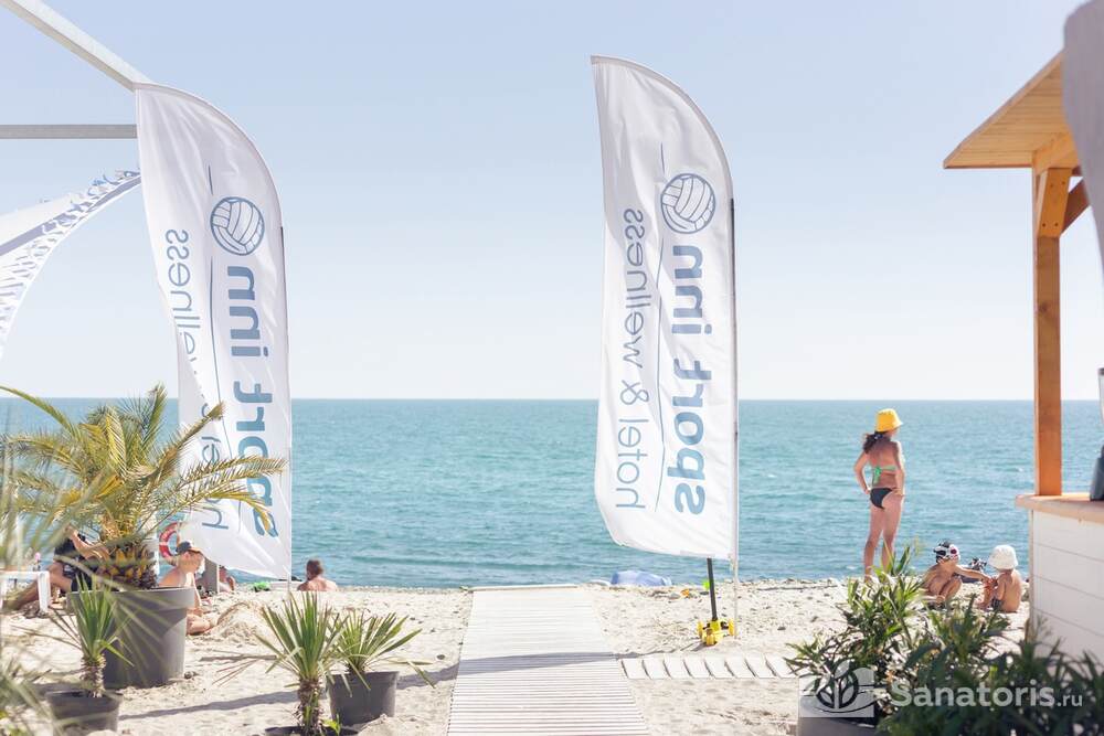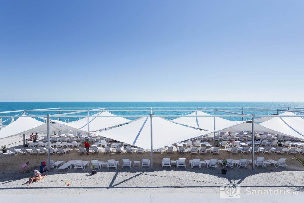 Путь от гостиницы до пляжа максимально короткий и удобный. Галечный пляж постоянно чистят, поэтому туристам будет приятно здесь отдыхать. Здесь есть комфортные кабинки для переодевания, лежаки, биотуалеты, душ. Можно арендовать навес или полотенца.