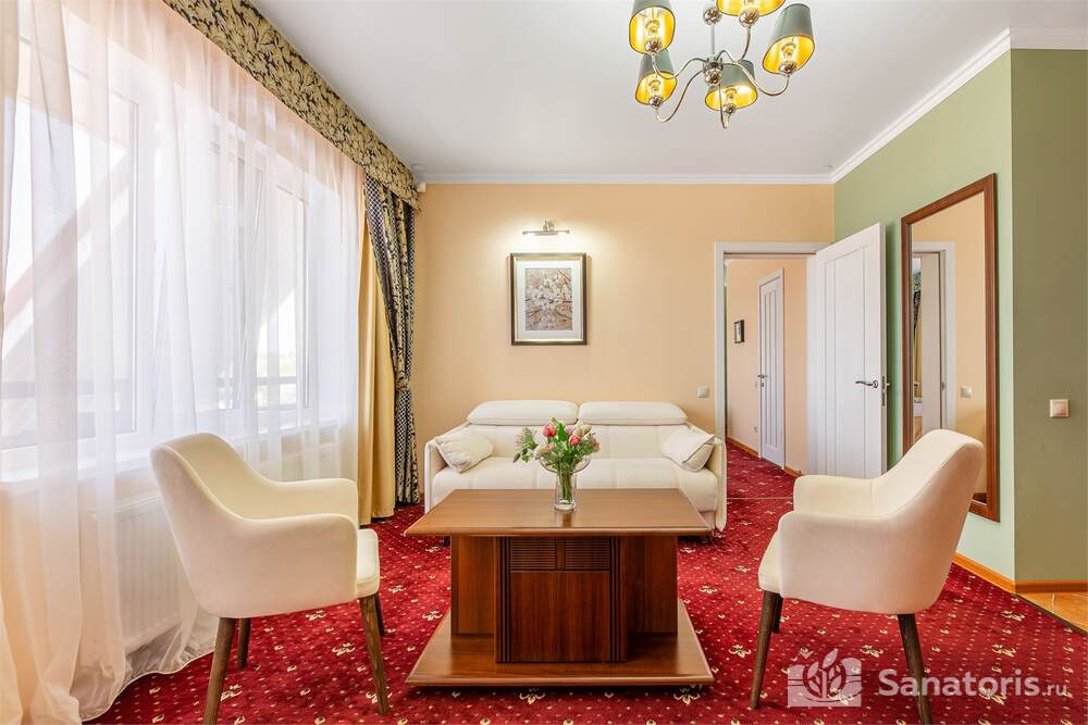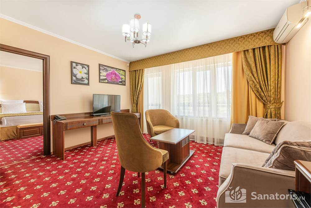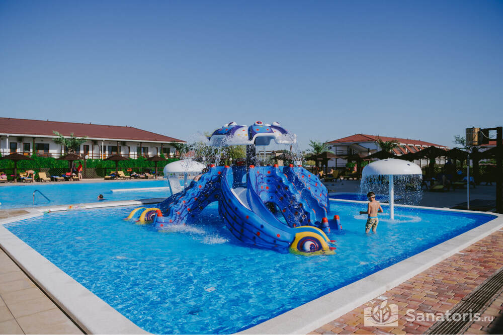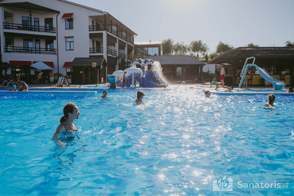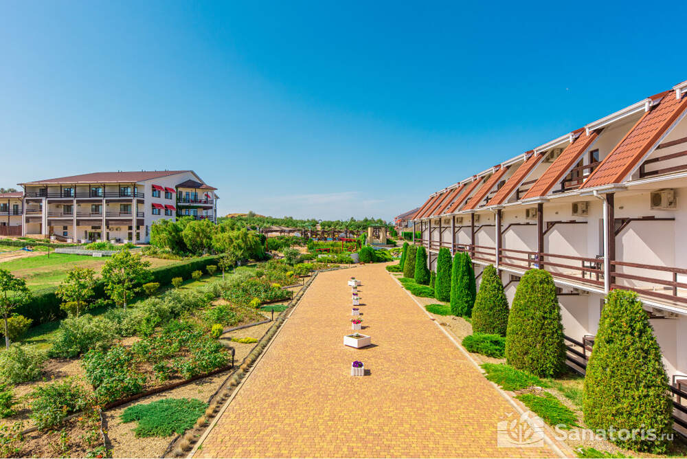 Общая площадь оздоровительного комплекса занимает пятнадцать гектаров. Для размещения гостей предусмотрены трехэтажные сооружения. Одновременно отель может принять 300 гостей. Проживание осуществляется в комфортных апартаментах, которые выполнены в классическом стиле.