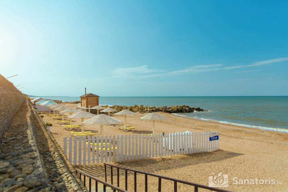 Расстояние до пляжа составляет сто метров. Дойти до него можно по специально обустроенным дорожкам. Здесь есть современные лежаки, пляжные зонты, площадка для игры в пляжный волейбол, кафе и бары.