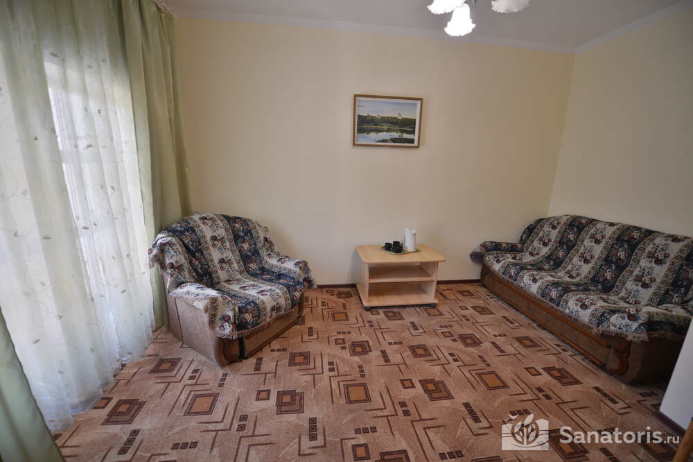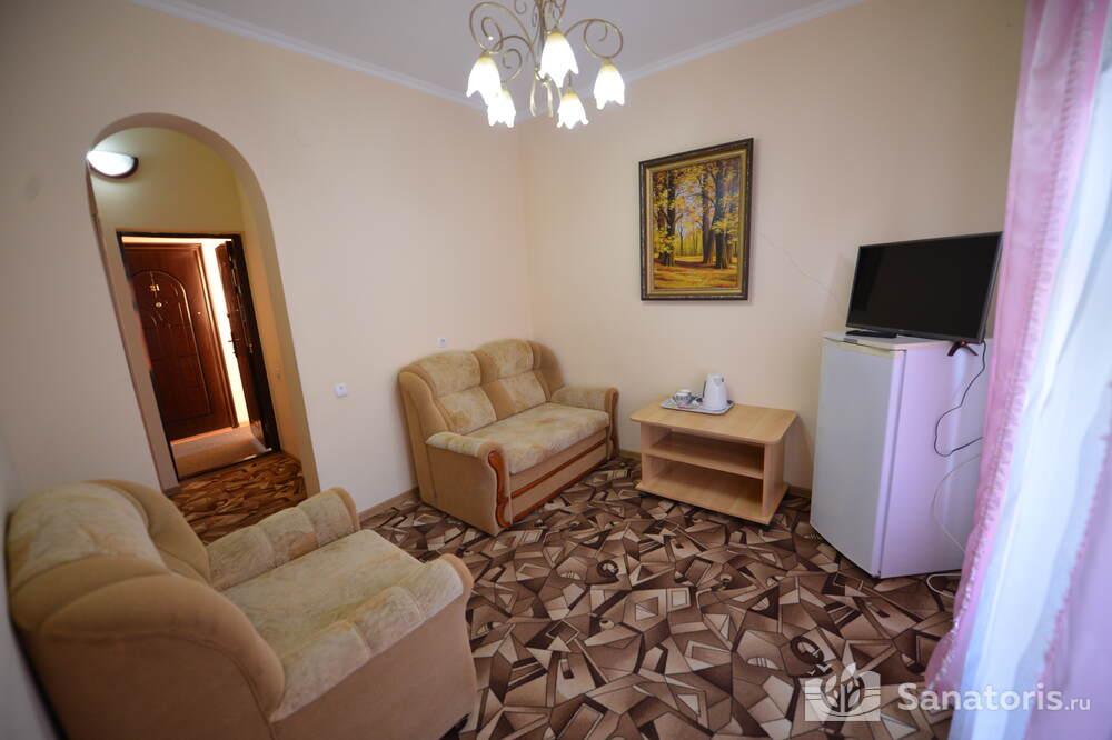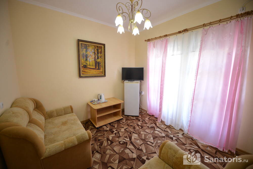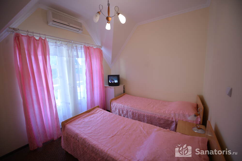 Для проживания гостей предусмотрены трехэтажные корпуса. Одновременно в гостинице могут разместиться 150 человек. Гости обеспечиваются комфортабельными апартаментами со всеми удобствами. Все номера выполнены в пастельных оттенках. Имеется санузел, ванная комната, система кондиционирования, кабельное телевидение, фен, электрический чайник и многое другое.
