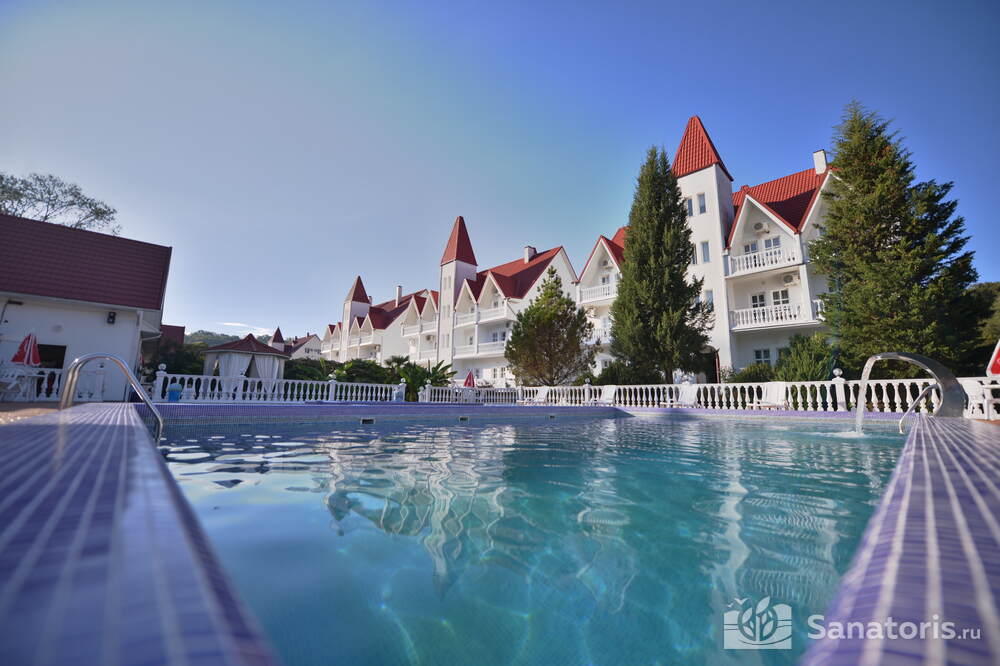 На улице обустроено два больших бассейна. Рядом есть шезлонги и зонтики. Гости отеля могут посетить сауну, бильярдную комнату, зал с тренажерами. На улице есть спортивные площадки и теннисный корт.