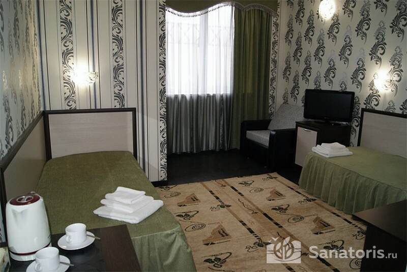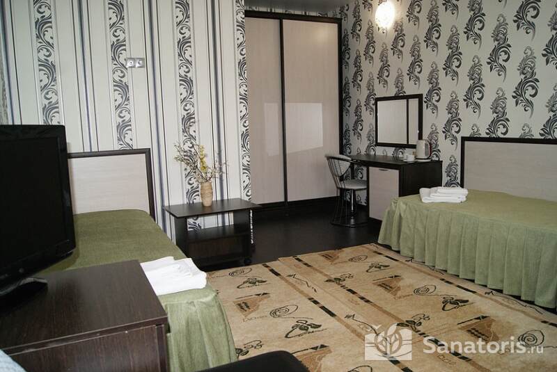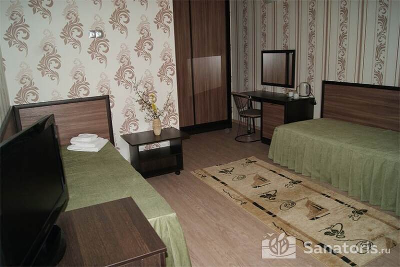 Санаторий под названием Восток представляет собой целый пансионат, состоящий из девяти отдельно стоящих корпусов. Два четырехэтажных здания вмещают в себя спальные номера, оборудованные всем необходимым. Также имеются коттеджи эконом и люкс класса, в которых расположится сможет большая компания друзей или семья с детьми. Отдельно стоит здание с обеденным залом, административный и лечебный корпуса.