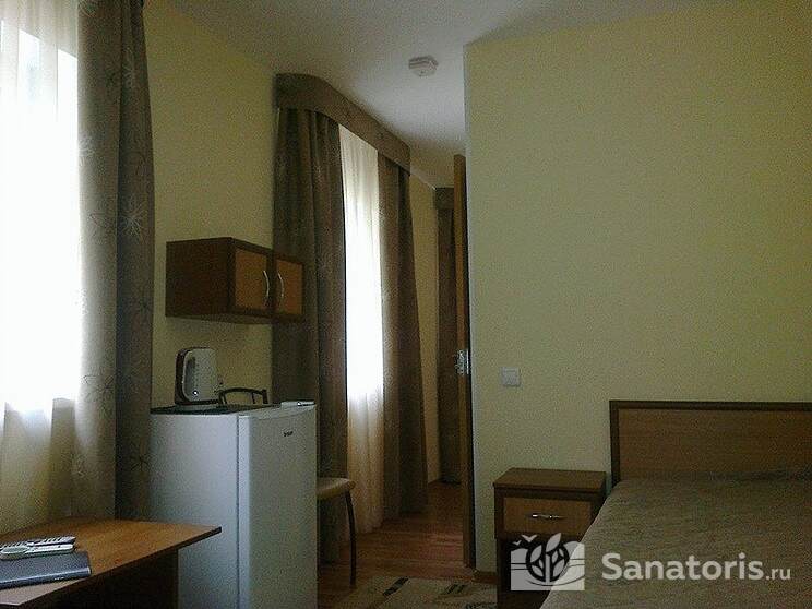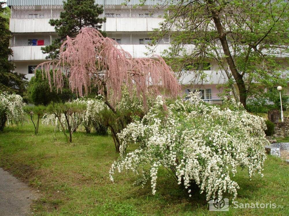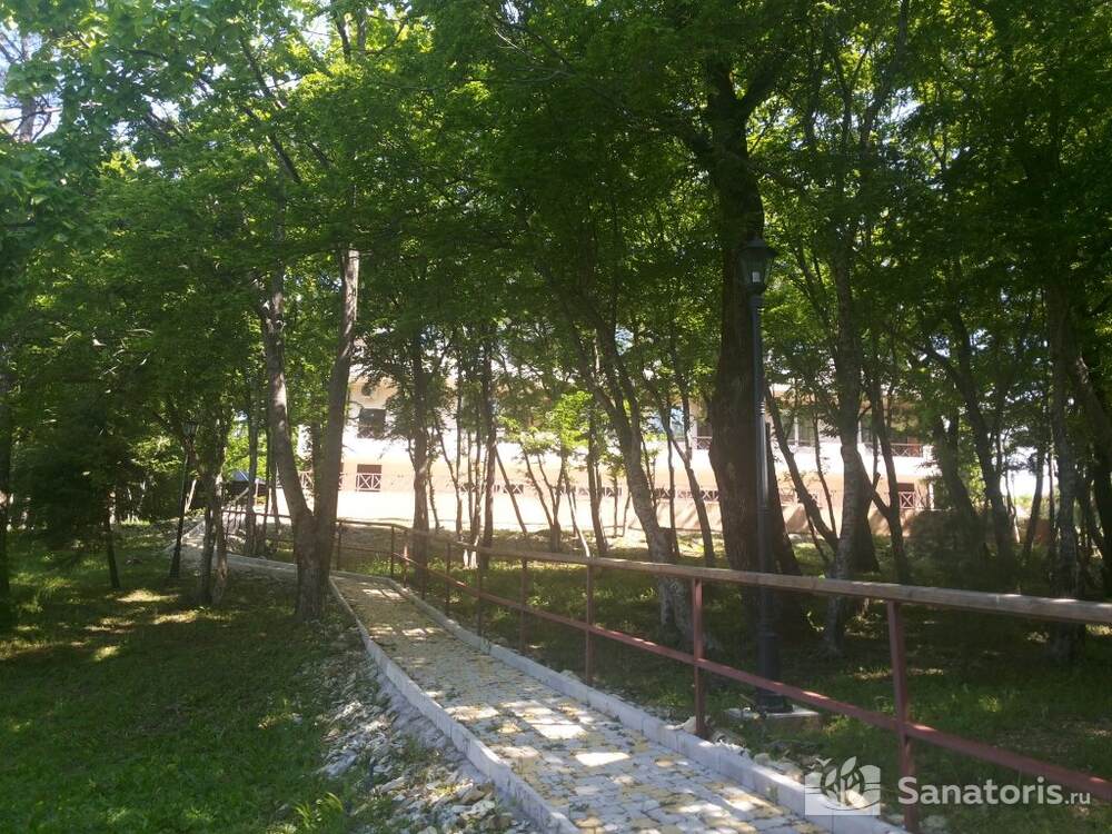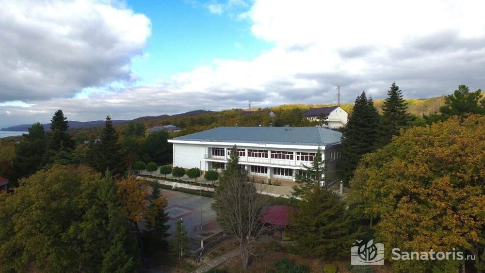 Также на территории санатория действует вместительный кинозал, в котором можно скоротать время за просмотром интересного фильма. Находится здравница в прекрасном уголке недалеко от моря в Михайловской бухте. Вид с окон санатория открывается невообразимый.