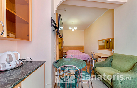 Посетить эту здравницу родители могут с детьми, начиная с четырехлетнего возраста. Для детей организовано пятиразовое питание. На территории санатория имеется детская комната, где ребята находятся под присмотром высококвалифицированного воспитателя. А по вечерам проводятся развлечения с аниматорами.