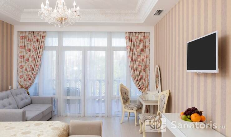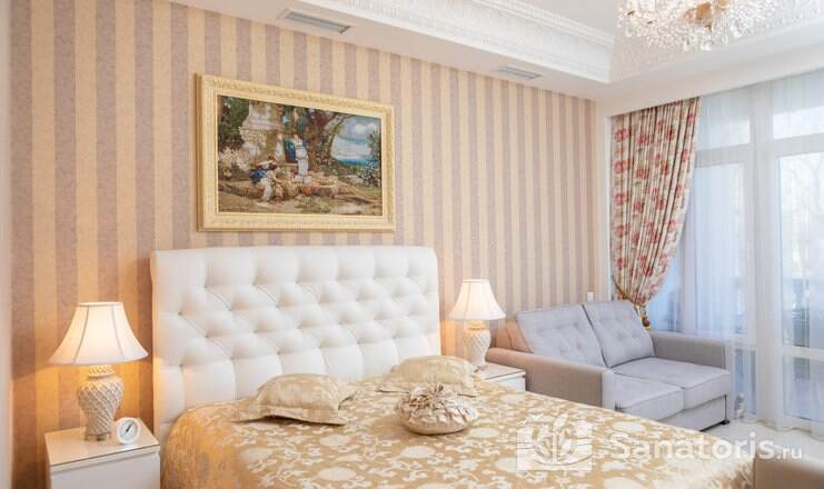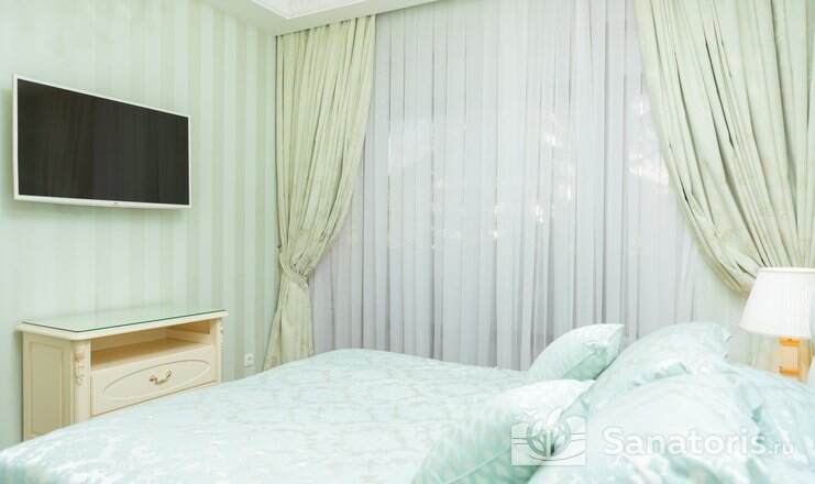 Для отдыхающих предоставляются номера, начиная «Стандарт» и заканчивая комфортабельным «Люксом». Все комнаты обладают уютным интерьером в классическом стиле.