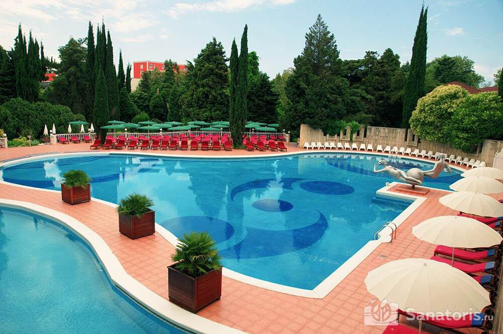 Бальнеологический санаторий находится у восхитительного Чёрного моря. Размеры курорта составляют более 11 Га.