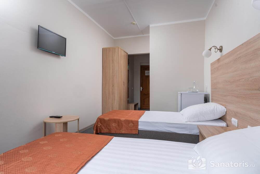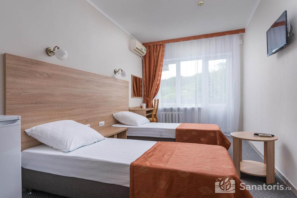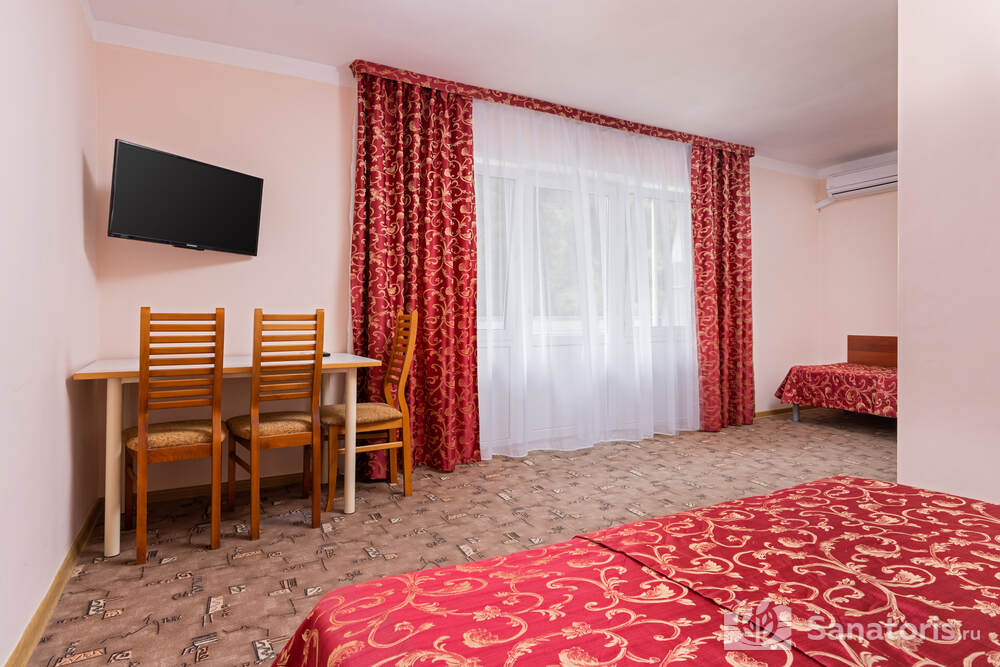 Все апартаменты выполнены в одном стиле. В каждом номере есть кондиционер, плазменный телевизор, холодильник, современная мебель и другие предметы первой необходимости. В жаркие летние дни система кондиционирования станет оригинальным бонусом для гостей санатория. Во всех номерах присутствует балкон, который открывает великолепный вид на природу.