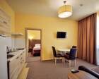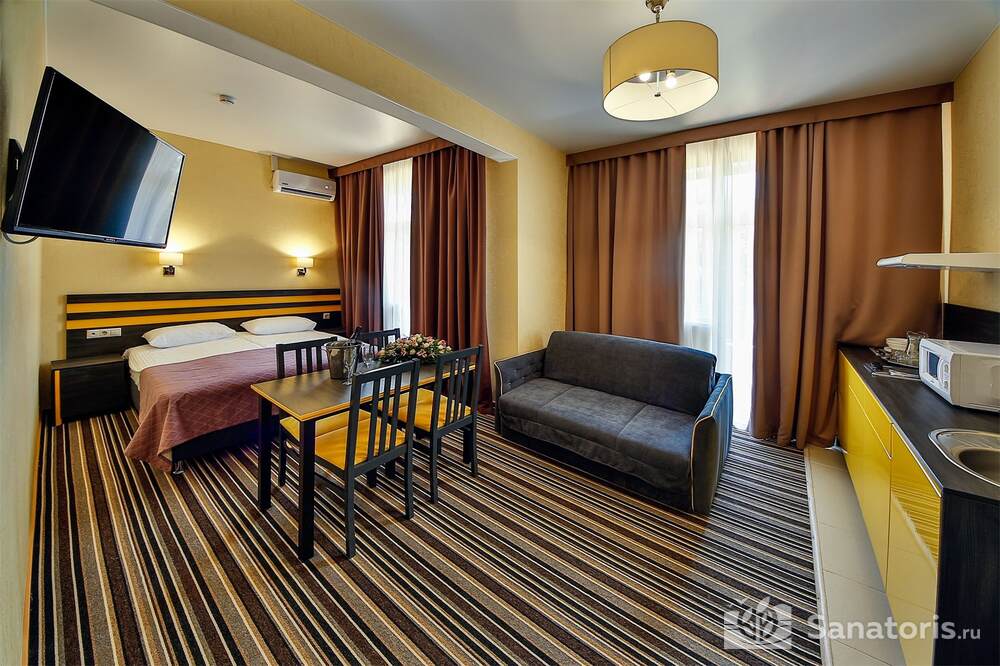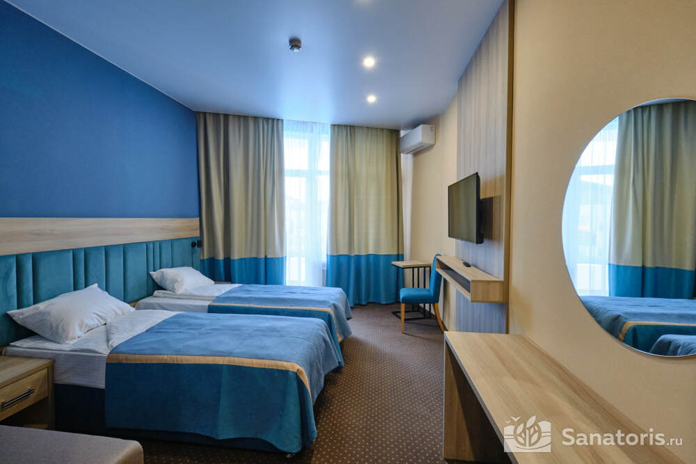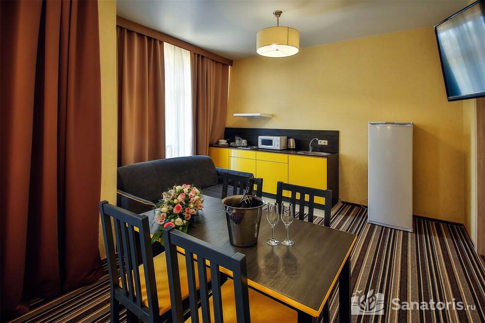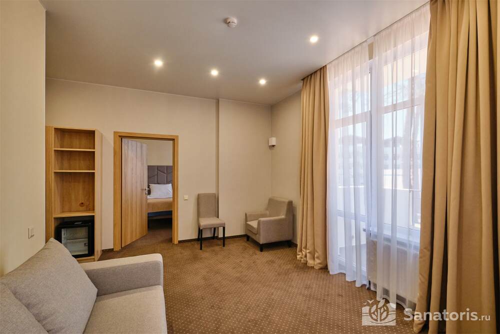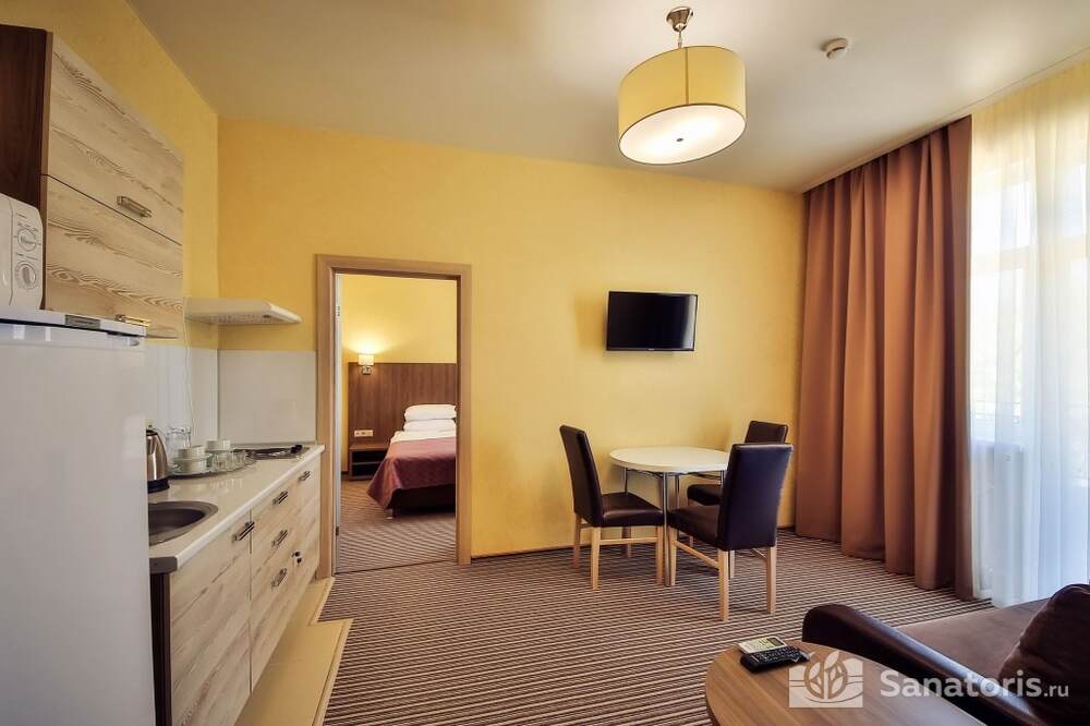 Номера санатория в основном двухместные или одноместные. Они оборудованы всем необходимым, чтобы создать комфортные условия для длительного пребывания. В них имеется мебельный гарнитур, фен и электрический чайник. При этом номерной фонд регулярно обновляет и улучшается.