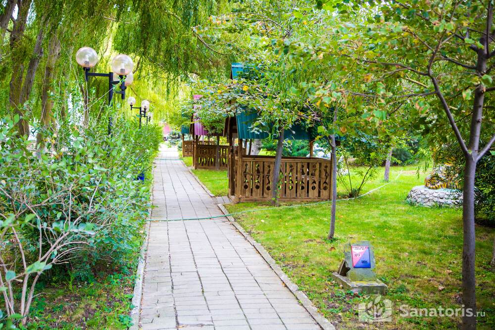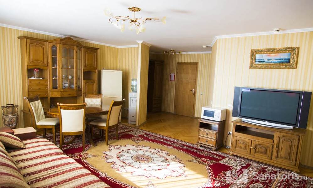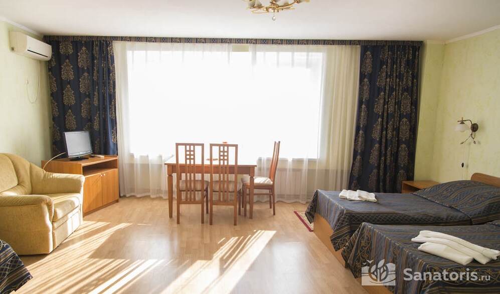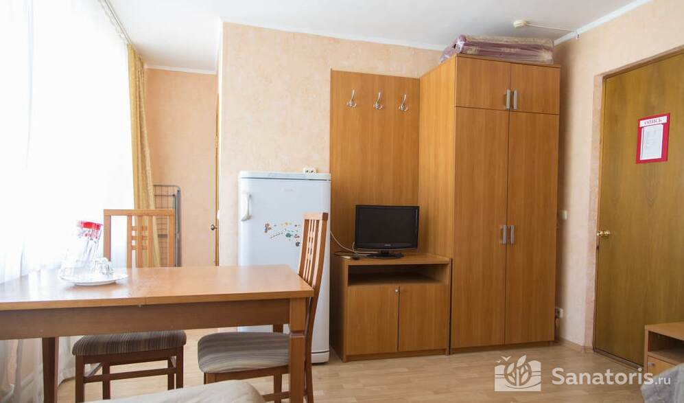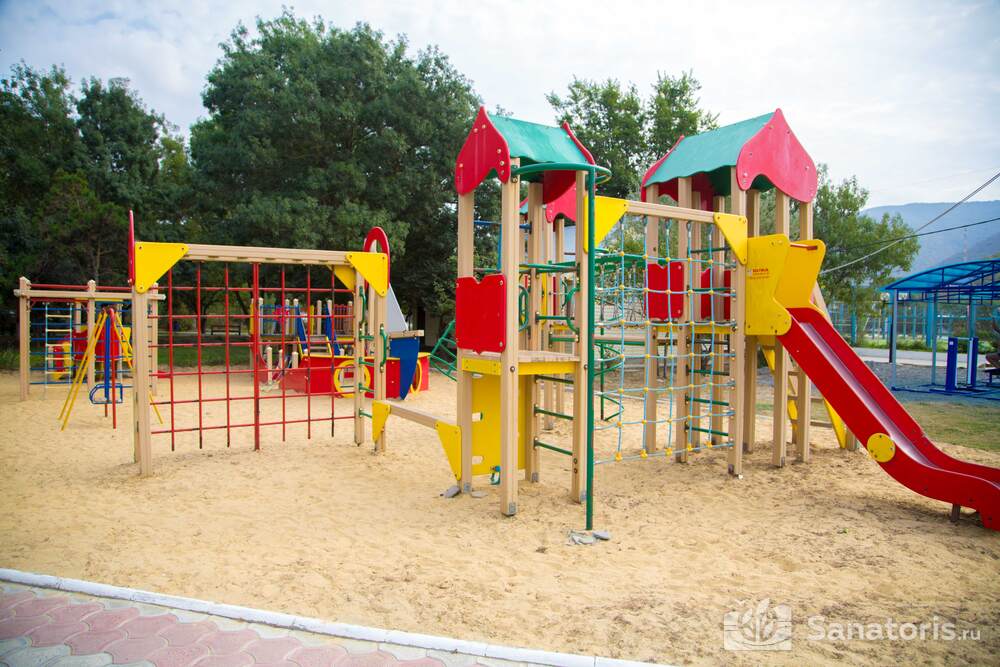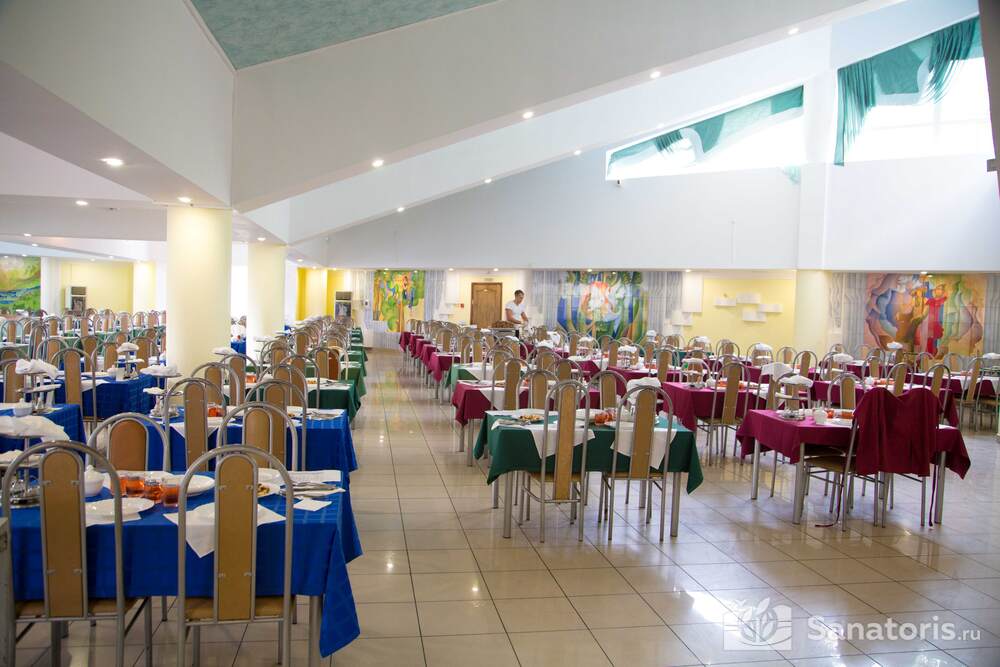 • место отдыха и организация питания. Размещают отдыхающих в 9 этажные корпуса с двухкомнатными и однокомнатными номерами. Принимать пищу они могут в столовой, в которой два зала. Заказать пищу можно предварительно по своему желанию, а детям её готовят по трём возрастным группам: с 4-6, с 7-10 и с 11-17 лет.