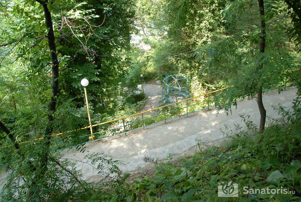 Недалеко от санатория имеется чистый пляж. На нем имеется все необходимое, чтобы отдыхающие могли принимать солнечные ванны с комфортом. Это шезлонги, раздевалки, зонтики. Лечение в стенах курортной здравницы основано на физиотерапии, грязевых аппликаций, массажа, использования акупунктуры.