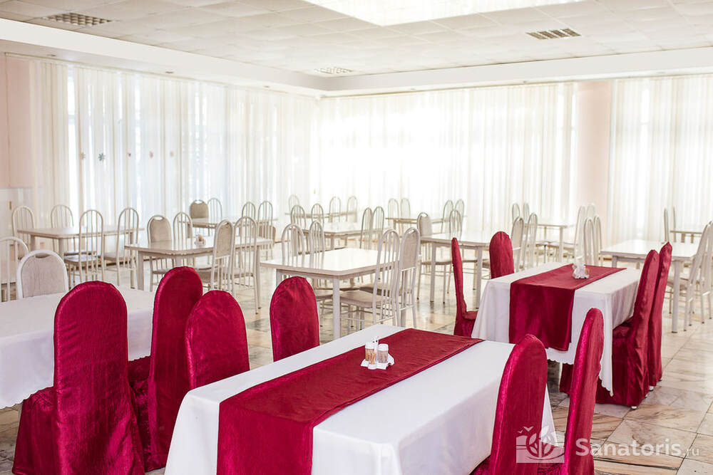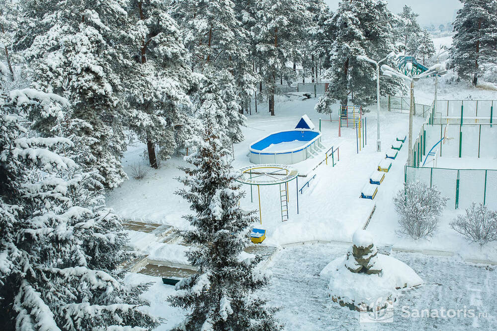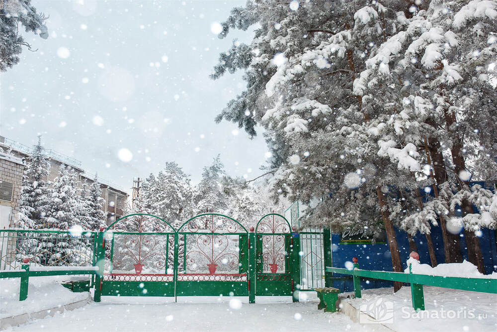 По периметру территории, на которой располагается санаторий, посажены деревья, создающие иллюзию зеленого ограждения. В теплое время года отдыхающим будет приятно прогуляться, вдыхая воздух, обогащенный кислородом. Сама турбаза находится под охраной, работающей круглосуточно. Водолечебница, прилегающая к жилым корпуса, специализируется на разных заболеваниях. Здесь предлагаются курсы ингаляций, массажей, грязевых обертываний.