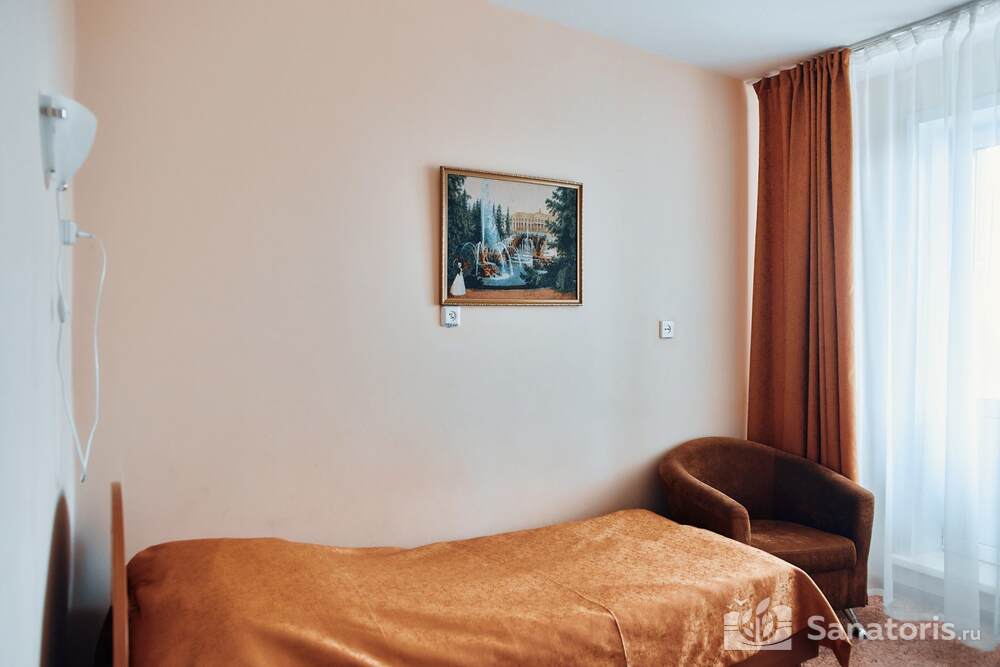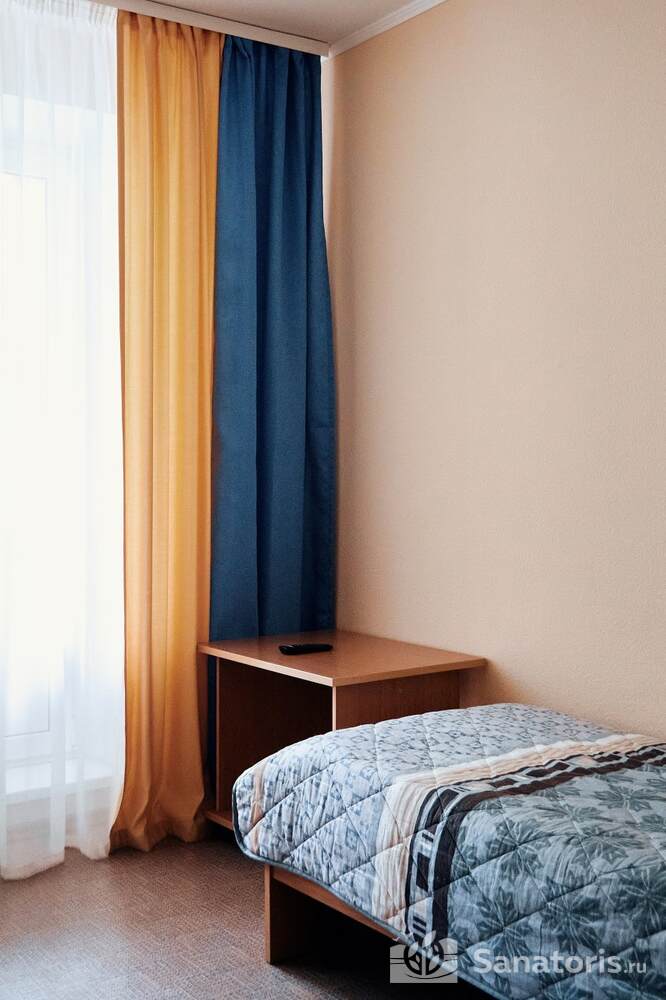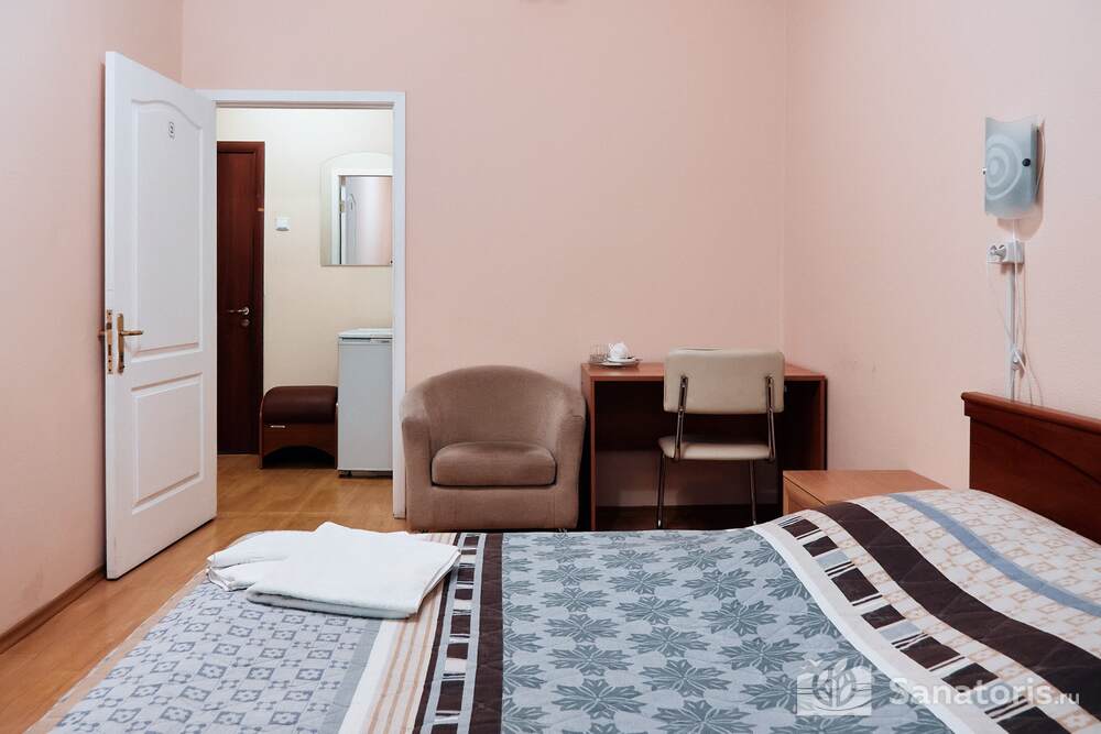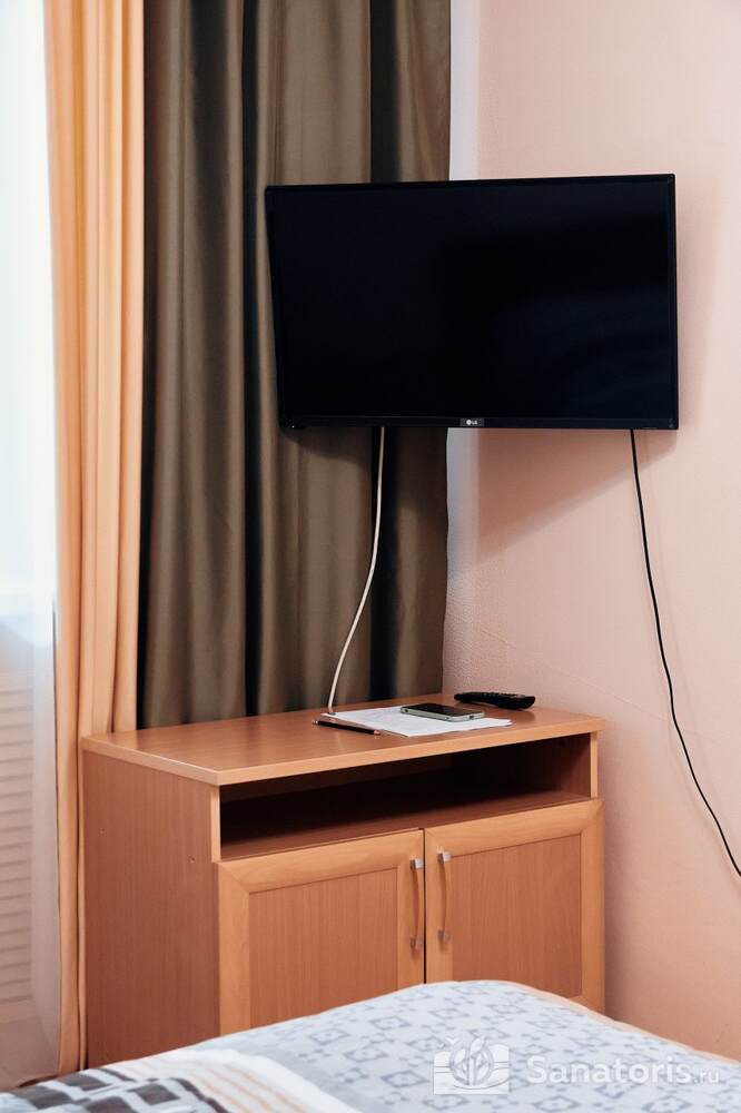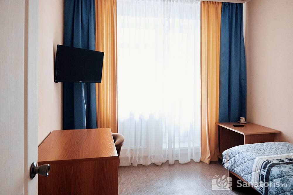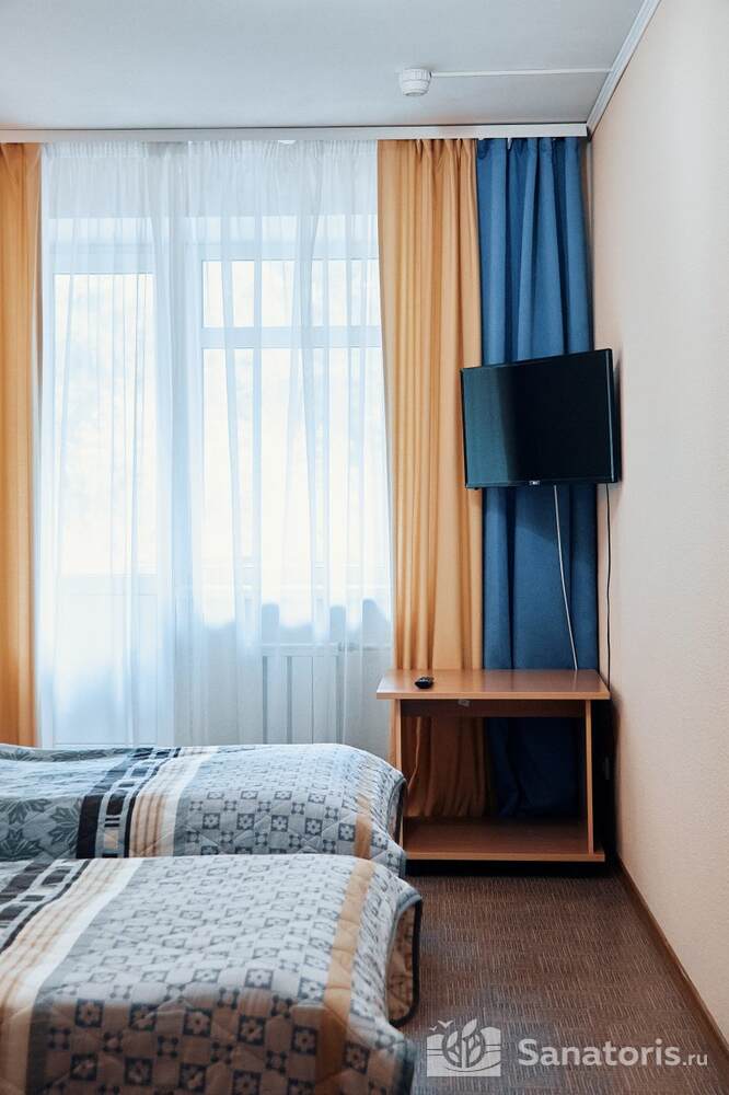 Постояльцы санатория проживают в комфортных номерах разной вместительности. В каждом номере есть кабельное телевидение, посуда, электрический чайник и небольшой холодильник. Удобства находятся на этаже.