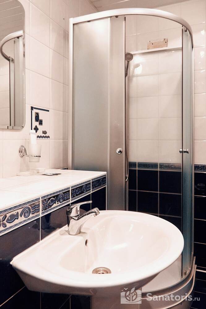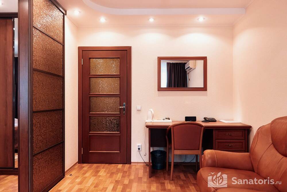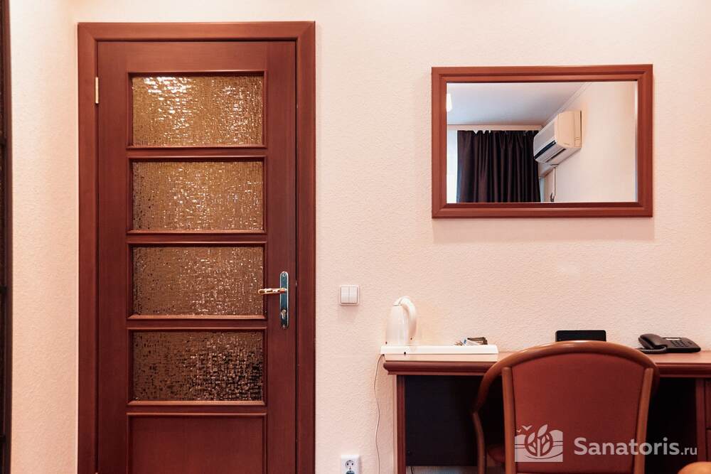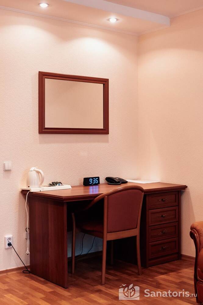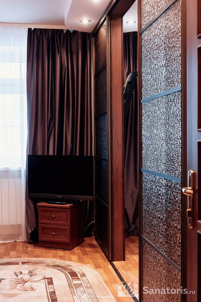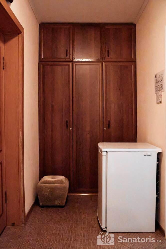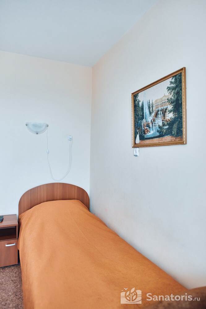 Постояльцы санатория проживают в комфортных номерах разной вместительности. В каждом номере есть кабельное телевидение, посуда, электрический чайник и небольшой холодильник. Удобства находятся на этаже.