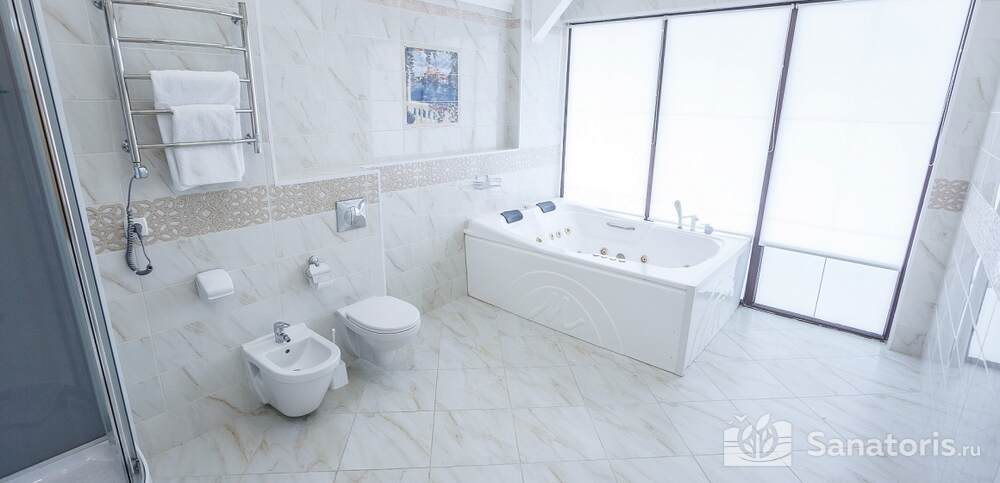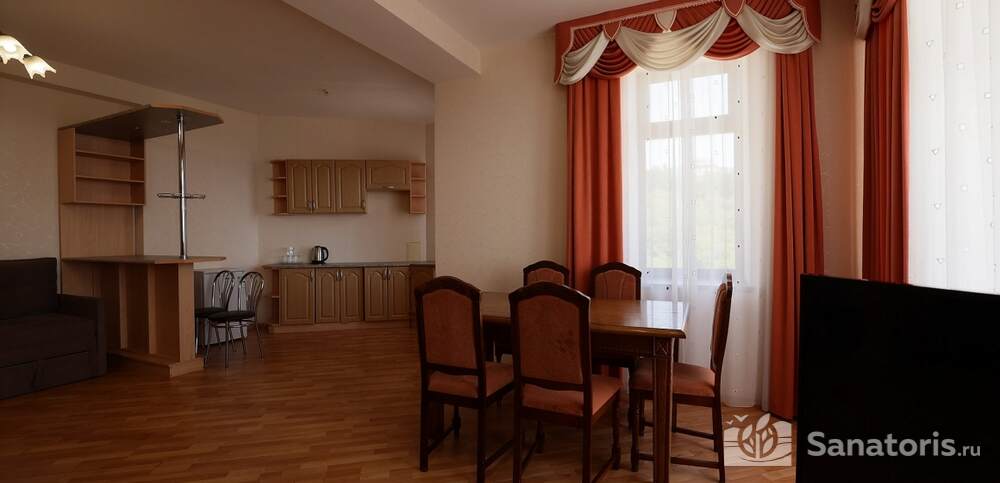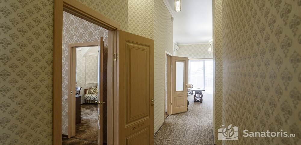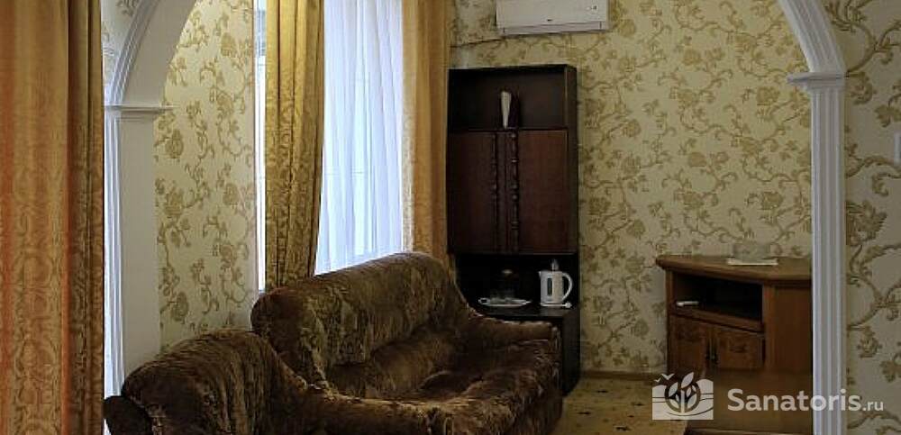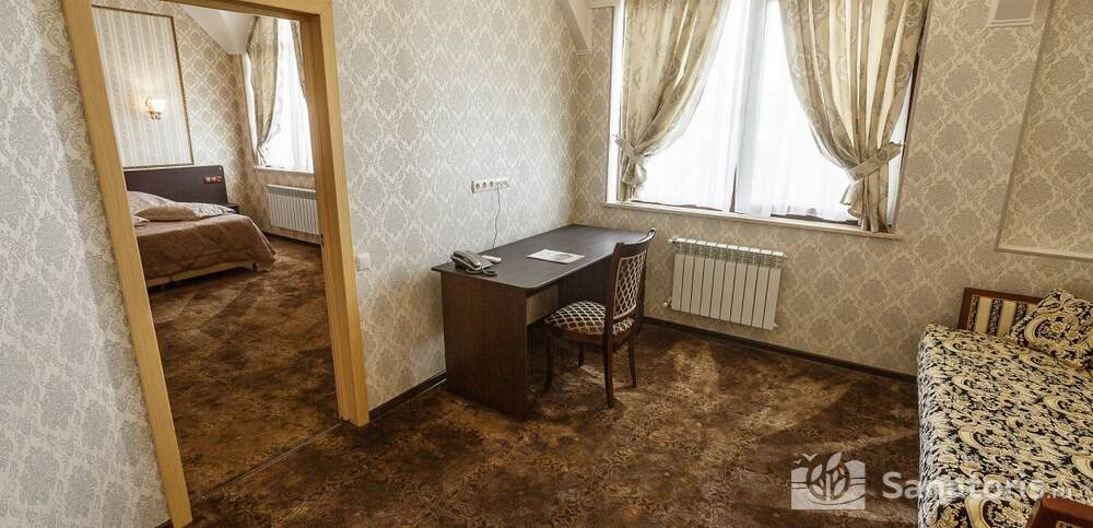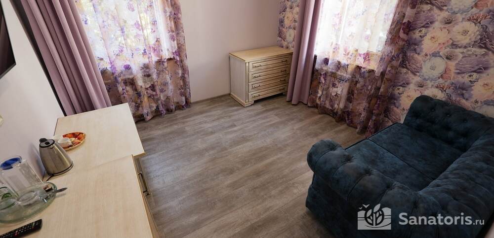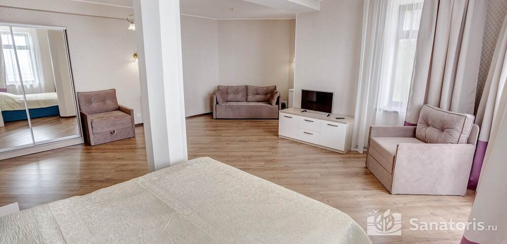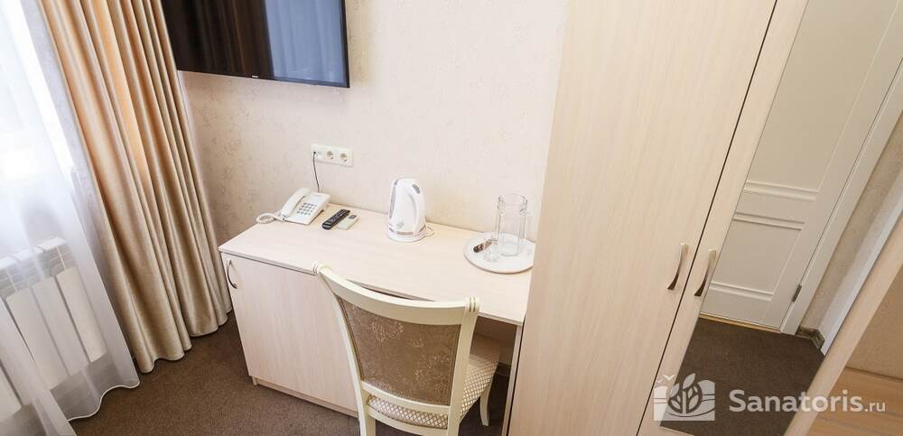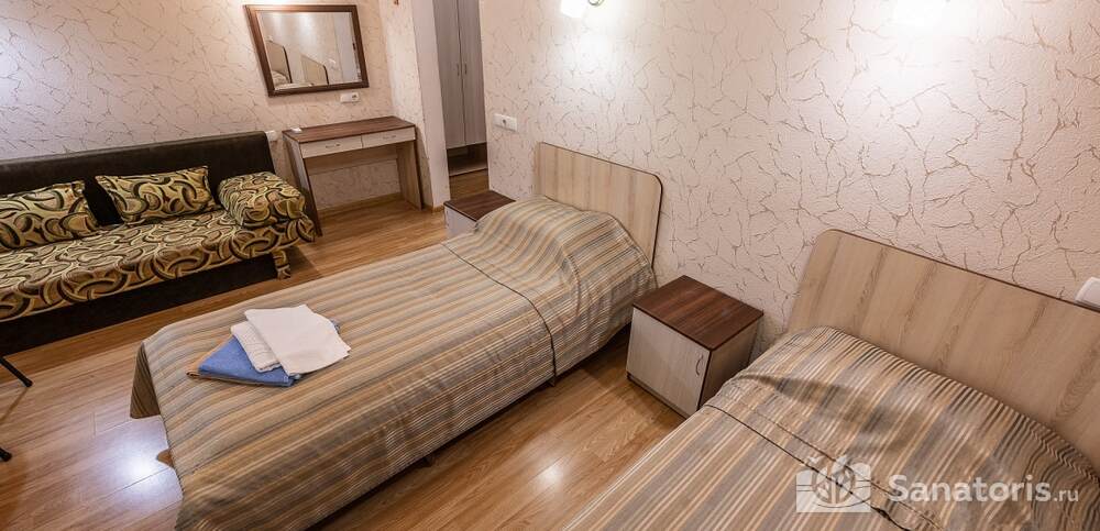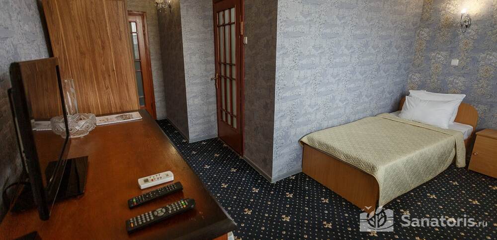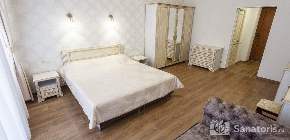Номера комфортные и оснащены всем необходимым. В них имеется холодильник, кондиционер и телевизор, отдельные ванные комнаты. Недалеко от него раскинулось море и песчаный пляж. Вблизи санатория бьют минеральные источники. Ежедневное употребление такой воды укрепляет иммунную систему, избавляет от воспалительных процессов и простуд, положительно влияет на организм человека в целом.