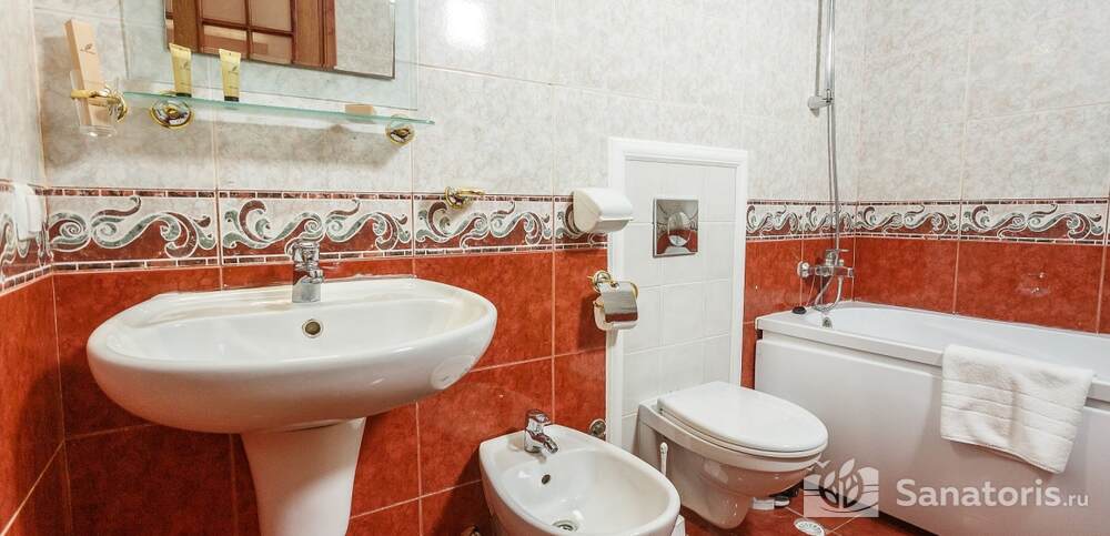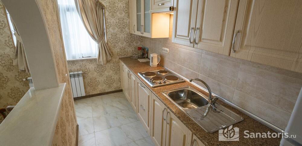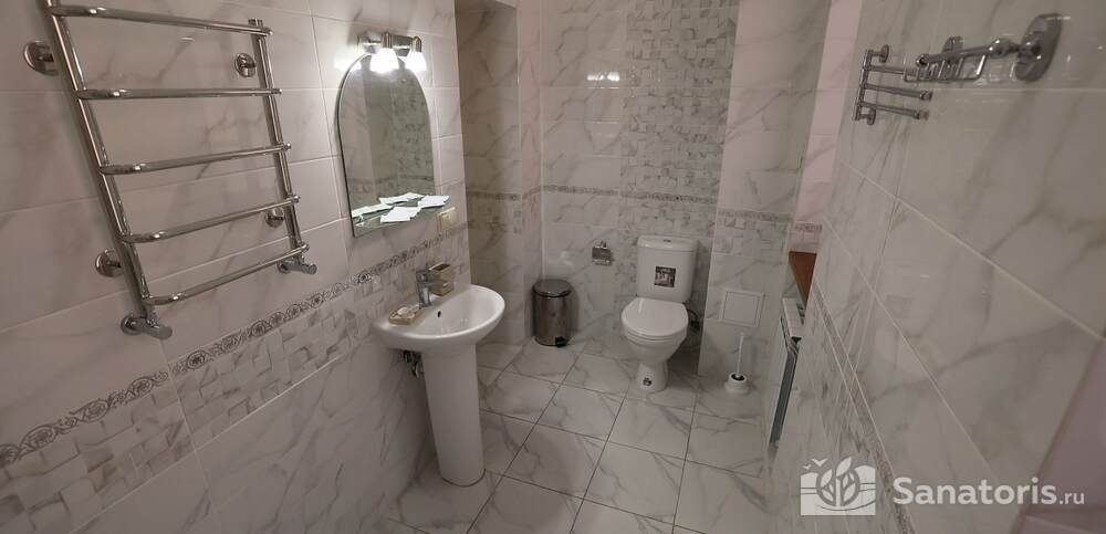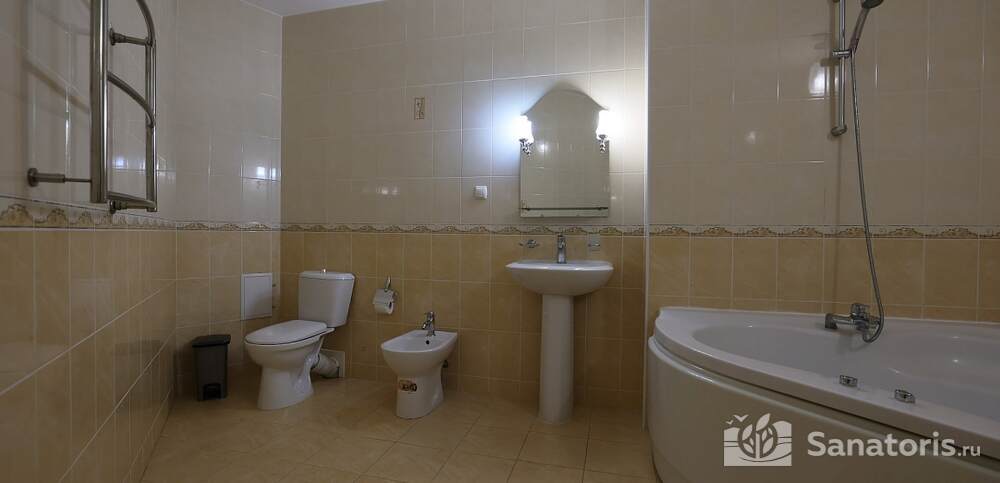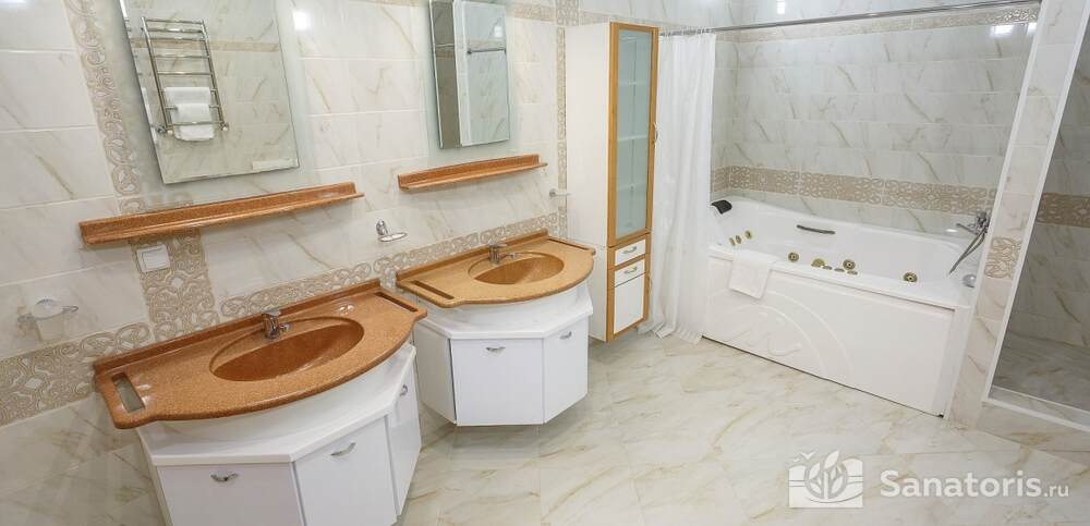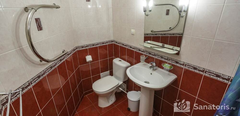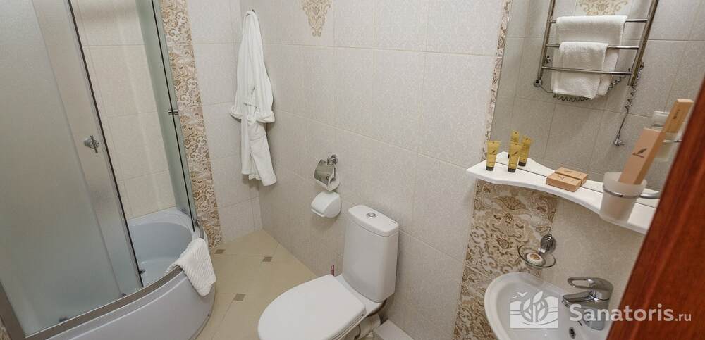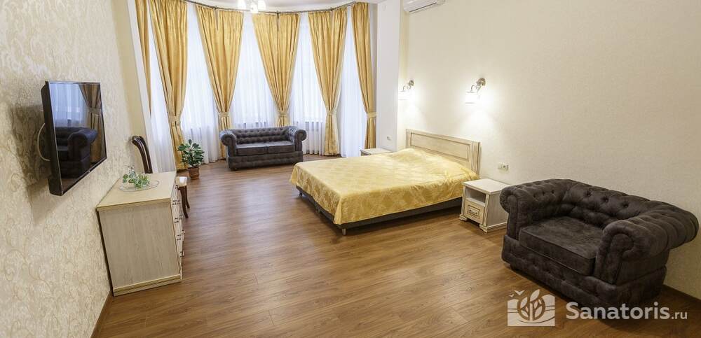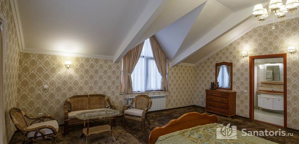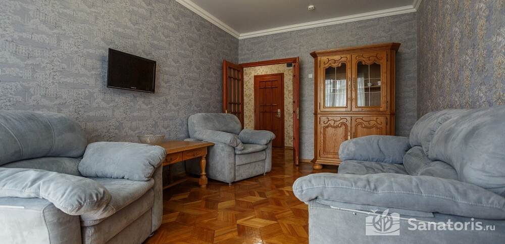 Номера комфортные и оснащены всем необходимым. В них имеется холодильник, кондиционер и телевизор, отдельные ванные комнаты. Недалеко от него раскинулось море и песчаный пляж. Вблизи санатория бьют минеральные источники. Ежедневное употребление такой воды укрепляет иммунную систему, избавляет от воспалительных процессов и простуд, положительно влияет на организм человека в целом.