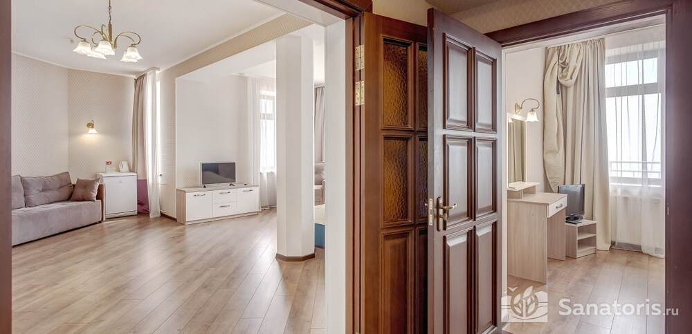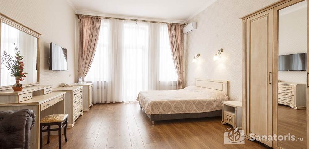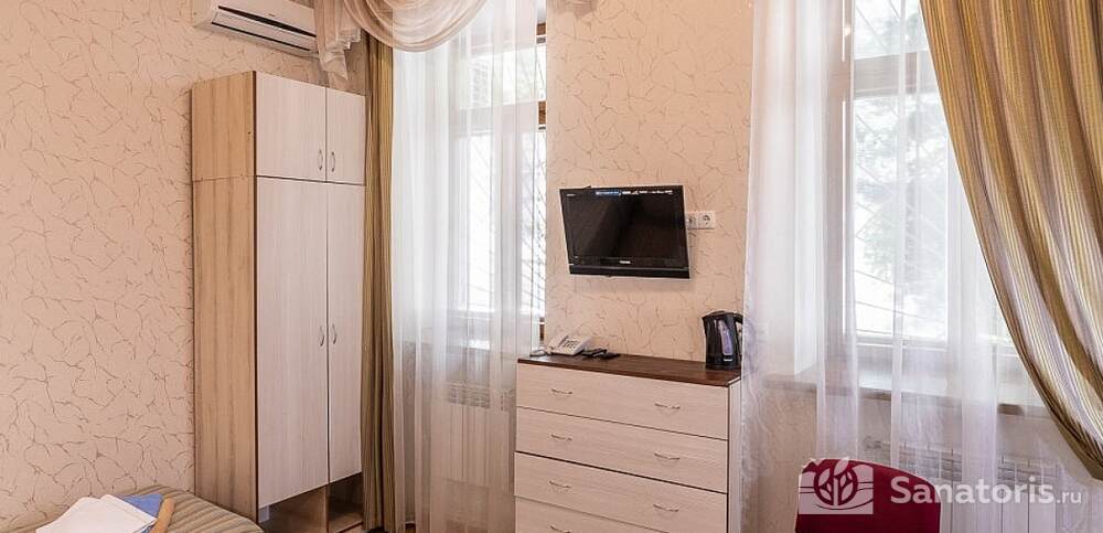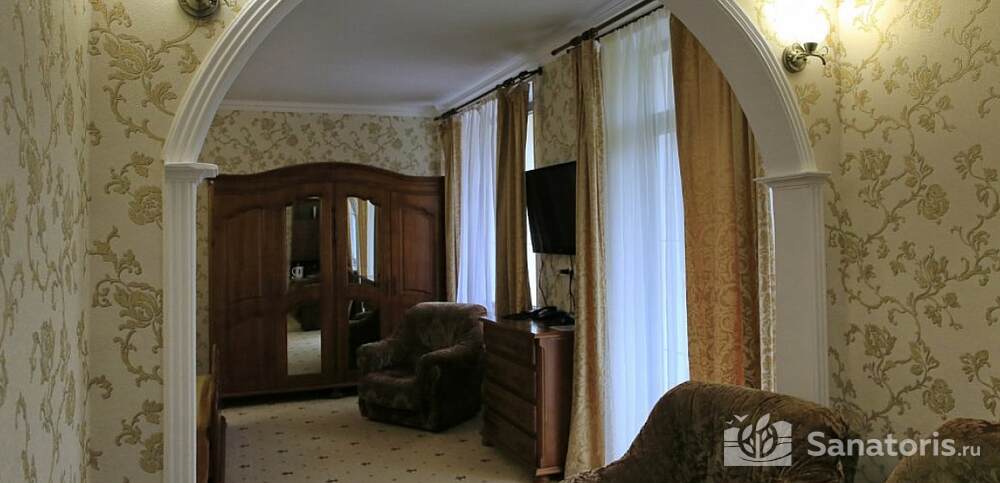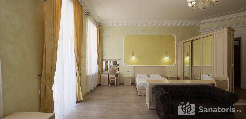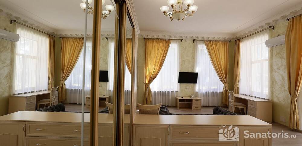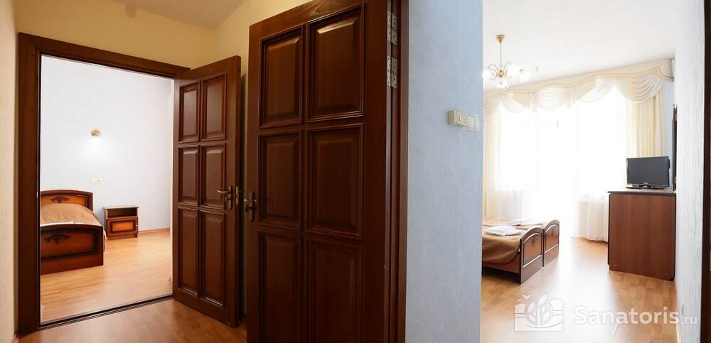 Первый корпус санатория относится к архитектурным памятникам. Он предлагает двухместные и одноместные номера, сразу трех категорий. Помимо этого имеется еще четыре корпуса со спальными местами.