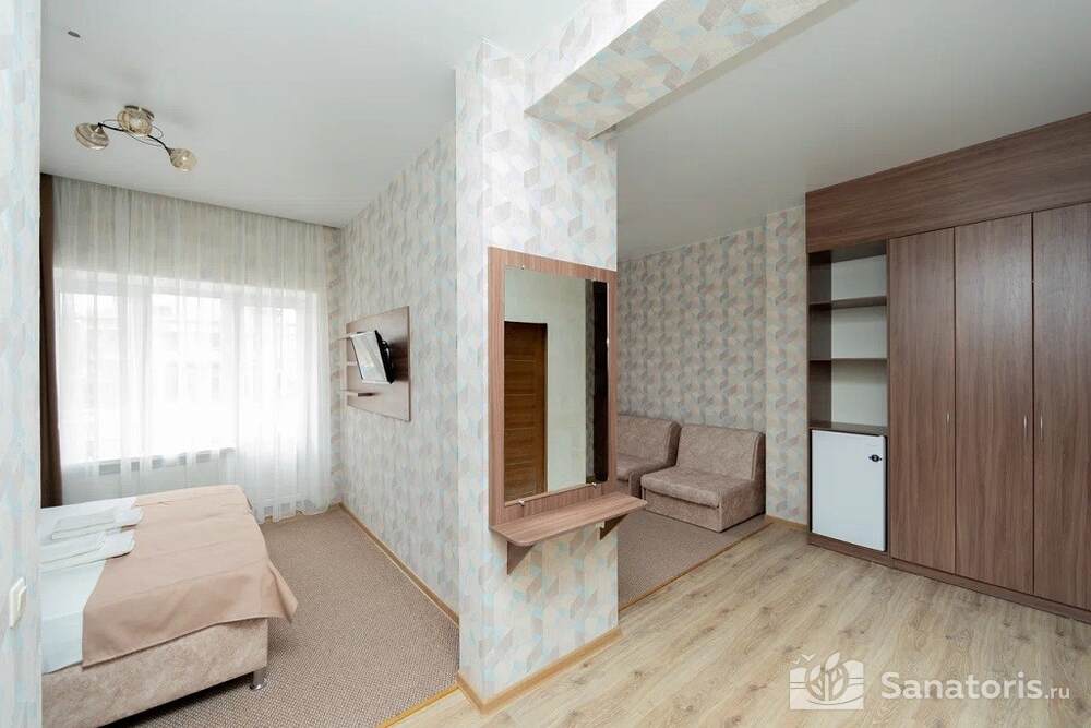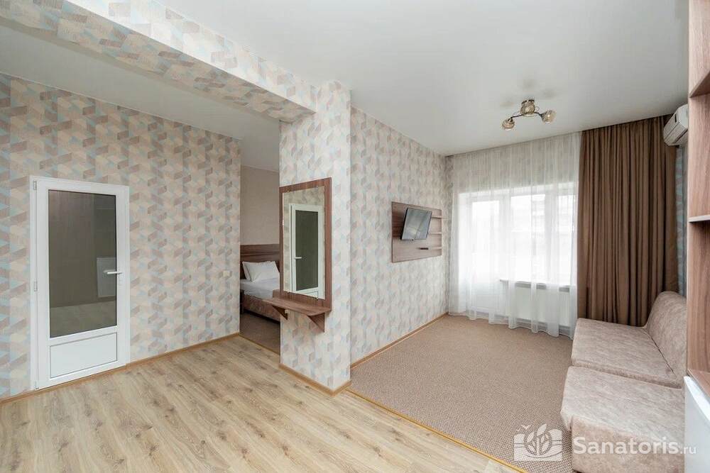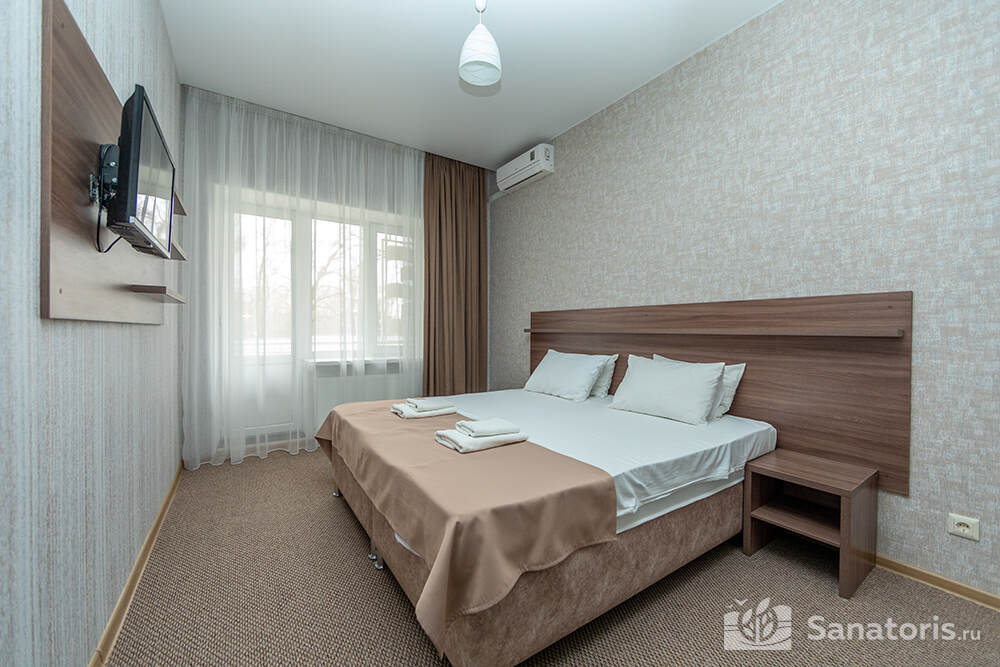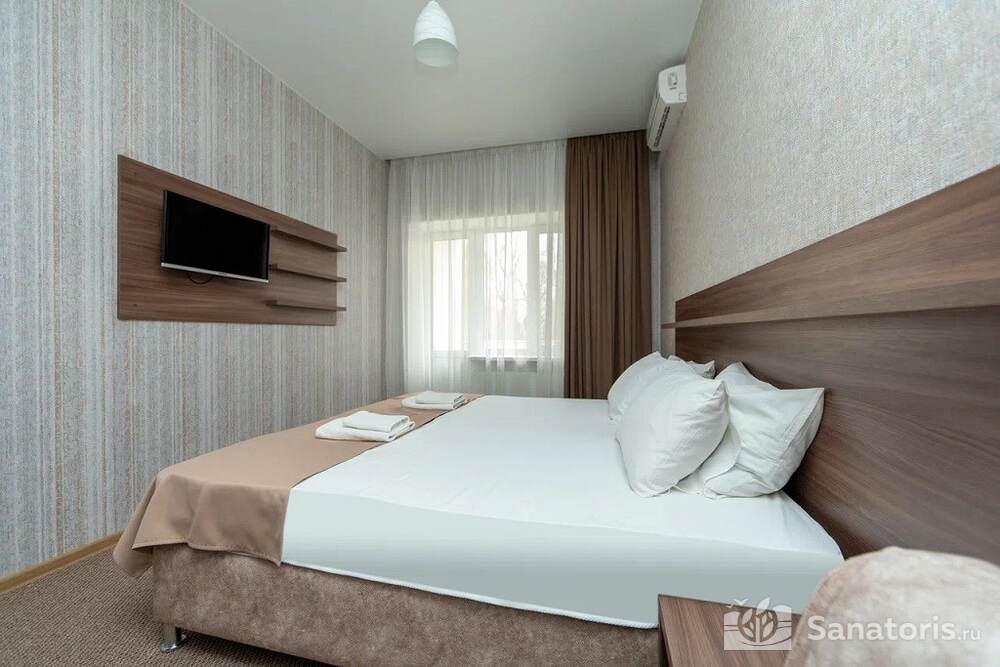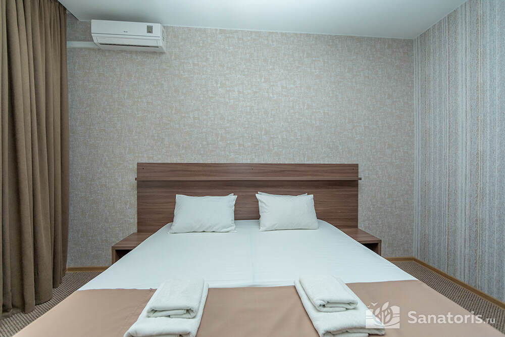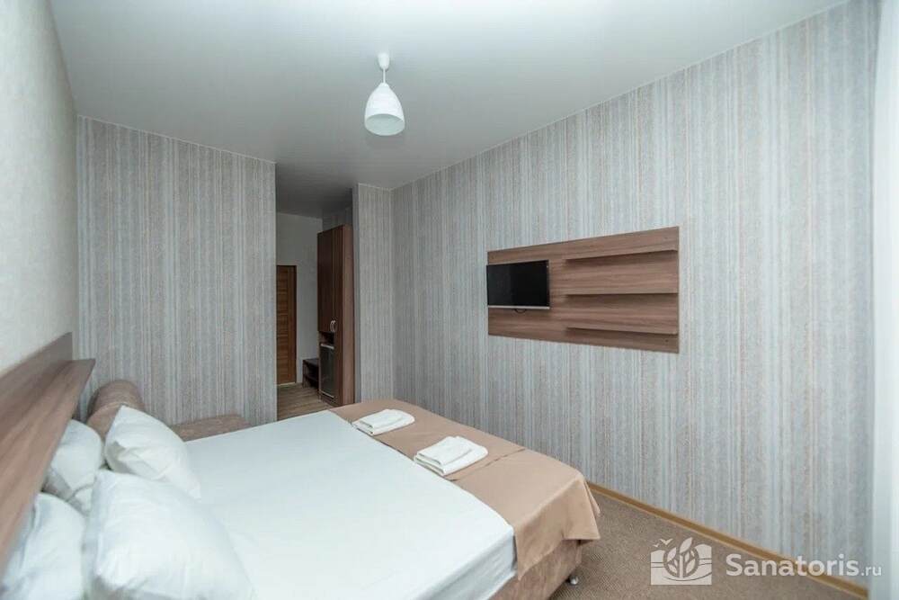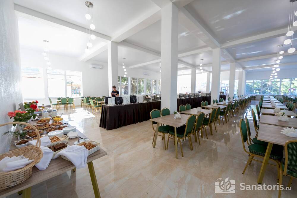 Для размещения отдыхающих построен 5 этажный корпус, имеющий 154 комфортабельных номера, в которых имеется необходимая техника. Пищу принимают по системе «шведский стол». В меню продукты, выращенные в Крыму.