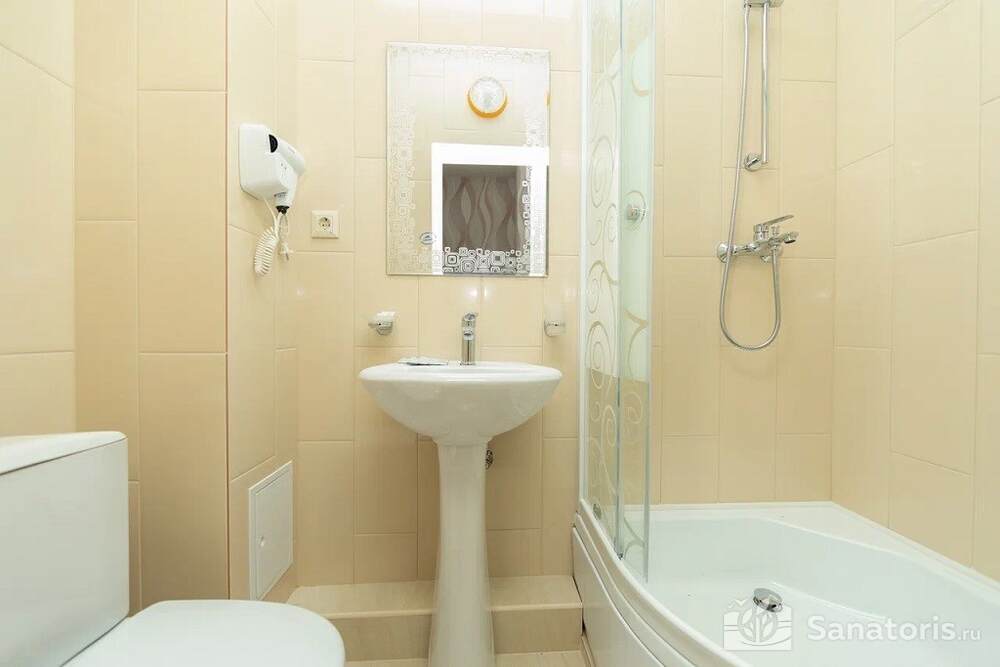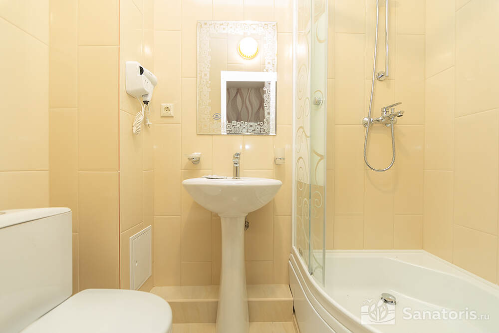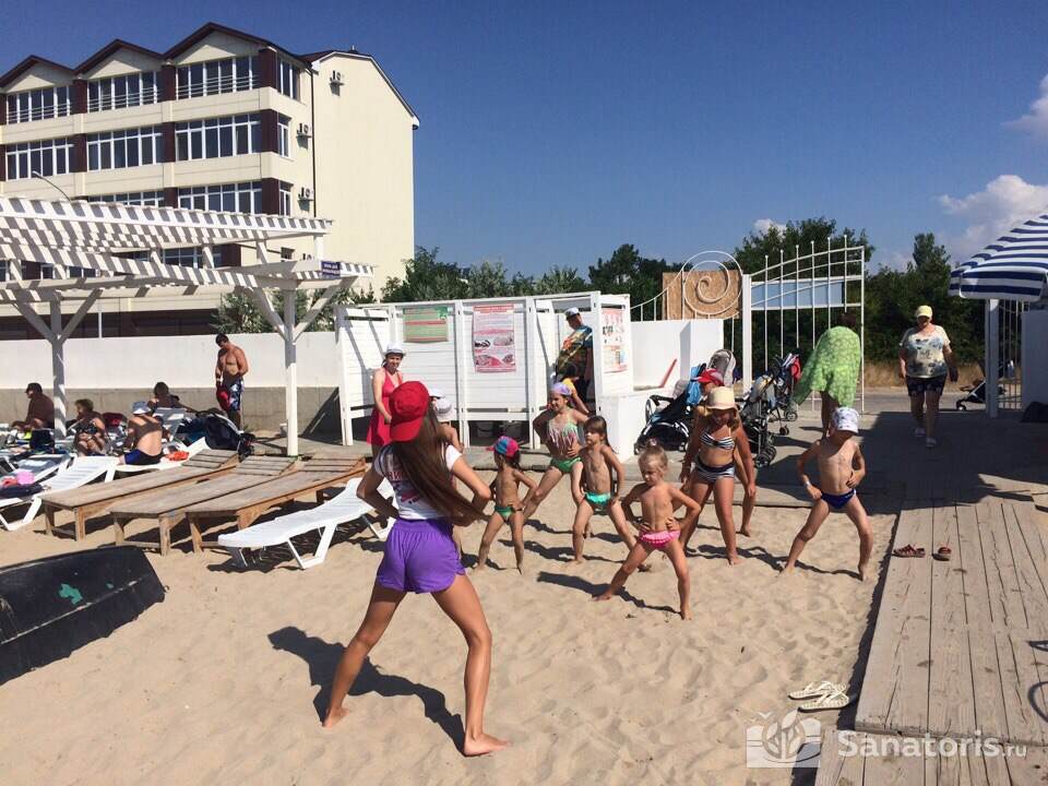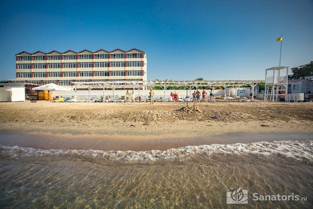 Принимать морские и солнечные процедуры можно на песчаном пляже, который находится на расстоянии 350 м. от здравницы. Территория пляжа имеет все необходимые удобства: душ, туалет, лежаки, навесы, зонтики от солнца.