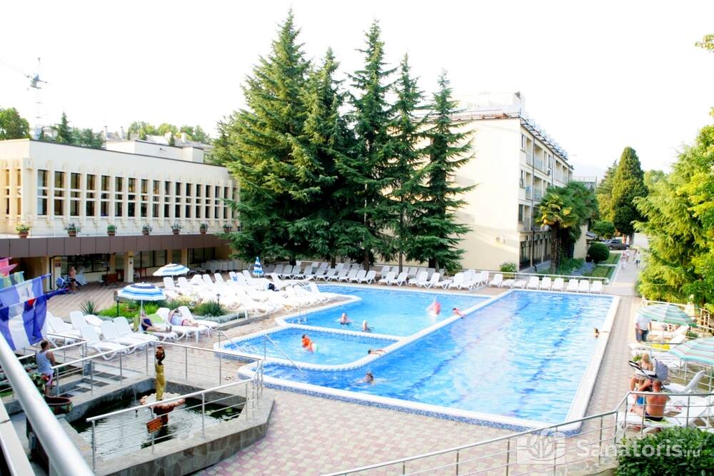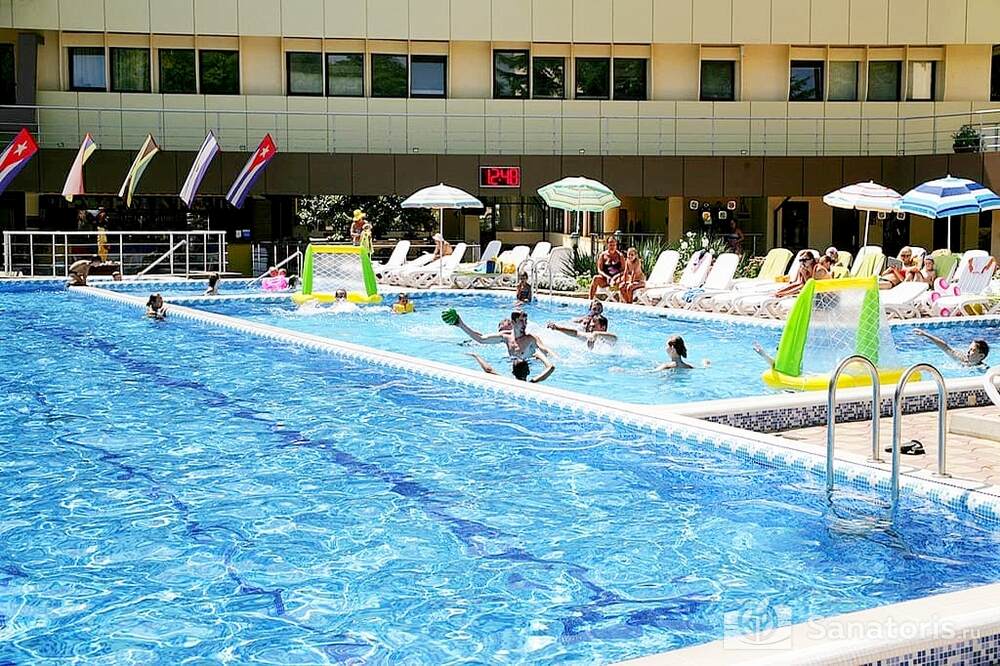 Вместительный ресторан размещен в главном корпусе. Питание представлено в стиле шведского стола. Также имеется лобби-бар, где по вечерам можно провести время за караоке. В качестве развлечения и приятного времяпрепровождения гостям здравницы предлагается посещение аква-зоны. Она насчитывает сразу три бассейна, для взрослых и детей, несколько саун и джакузи, хамам и большой тренажерный зал.