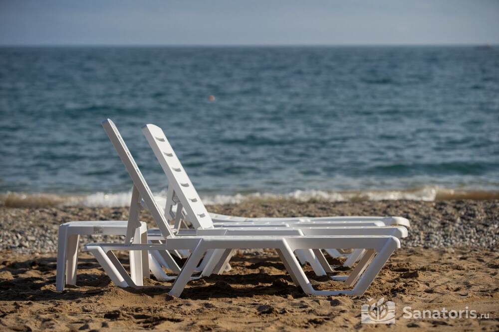В 600 м от ТОК «Горизонт» есть пляж протяженностью 60 м. Он оборудован всем необходимым для расслабляющего отдыха. Пляж состоит из песка и гальки.
