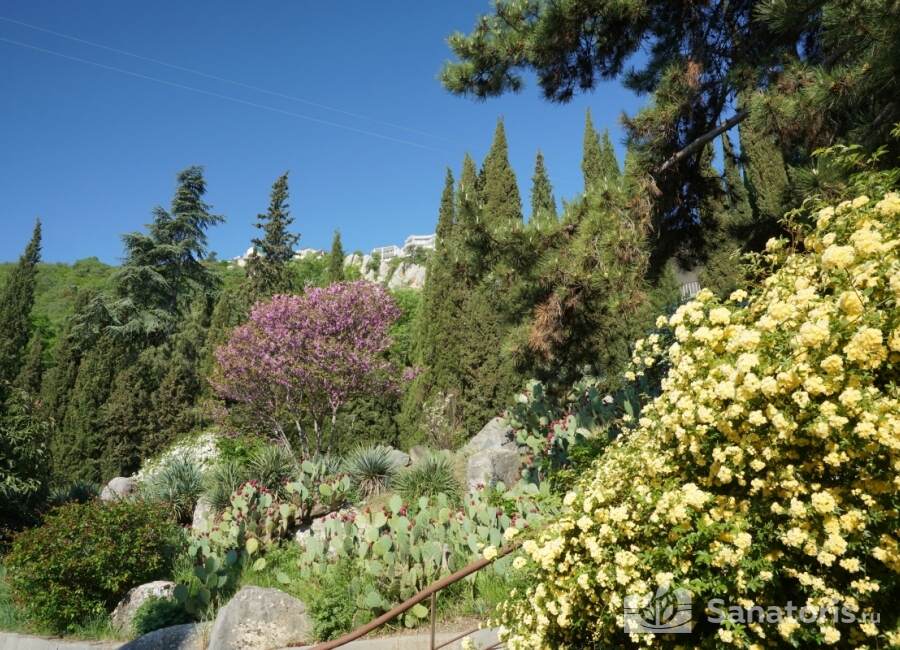 Ялта – мечта всех курортников, посещающих солнечный и гостеприимный Крым. В 8 км от Ялты недалеко от Ливадийского дворца расположен санаторий «Горный». Здравница находится на высоте 300 м над уровнем моря, парковая территория раскинулась на 17 га и позволяет гостям сполна наслаждаться прогулками по сосновой роще с разнообразными хвойными деревьями, ухоженными аллеями и потрясающими видами на море.