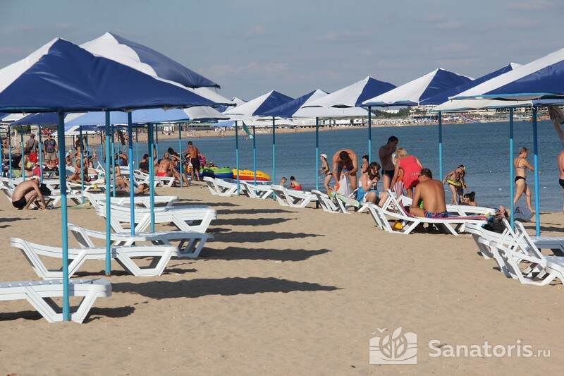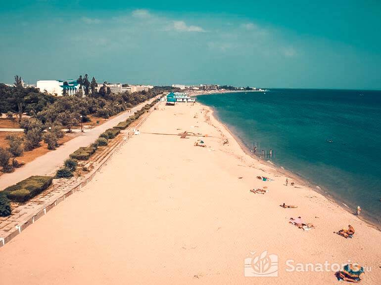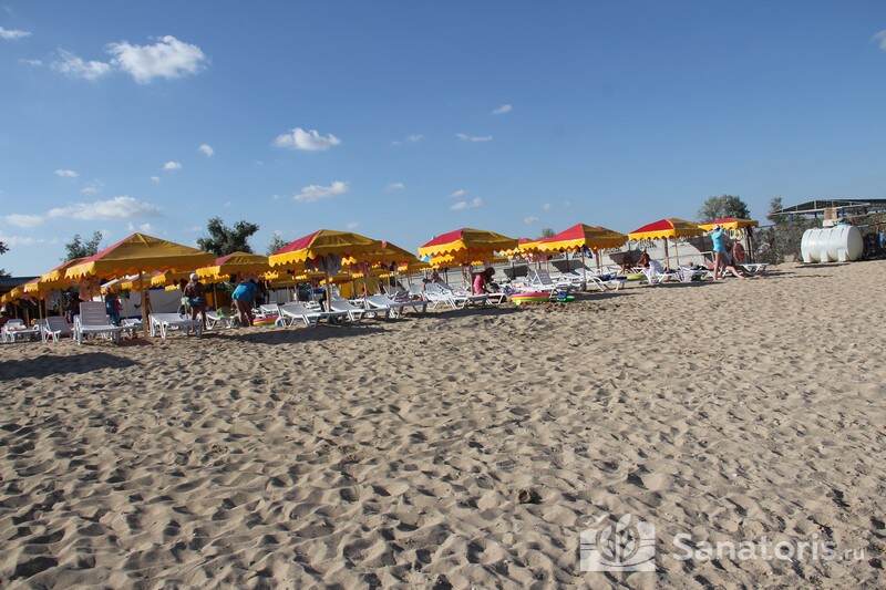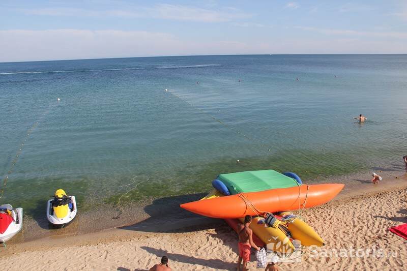 Вблизи здравницы имеется песчаный чистый пляж, который выходит к морю. Он полностью оборудован шезлонгами, зонтами от палящего солнца, душевыми кабинками. А если пройти немного дальше, можно выйти на городской пляж, где дополнительно построены кафе и бары, имеются туалетные кабины.