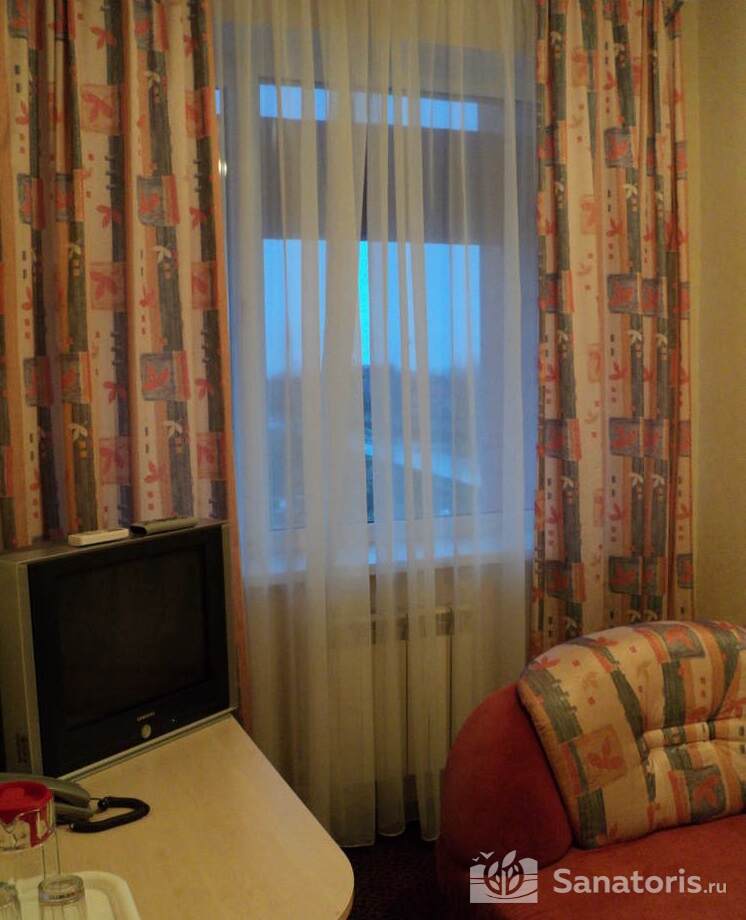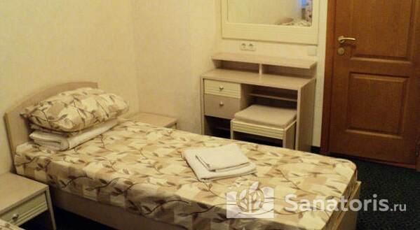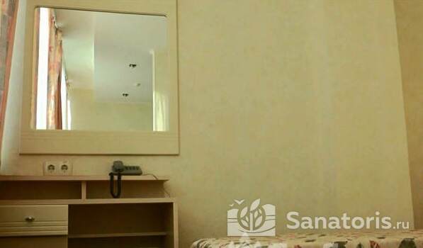 Здание санатория представлено шестью этажами. Номера двухместные, но встречаются и однокомнатные. Выбрать можно стандарт, люкс и повышенный комфорт. В стандартных номерах имеется такая техника, как фен, телевизор, холодильник, кондиционер. Дополнительно есть сейф, где можно хранить документы и личные ценные вещи.