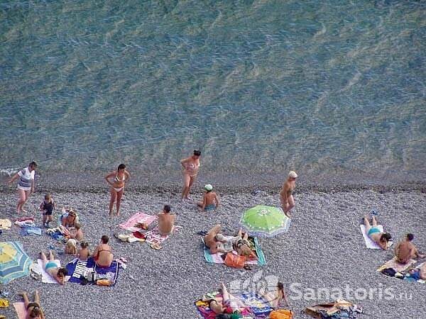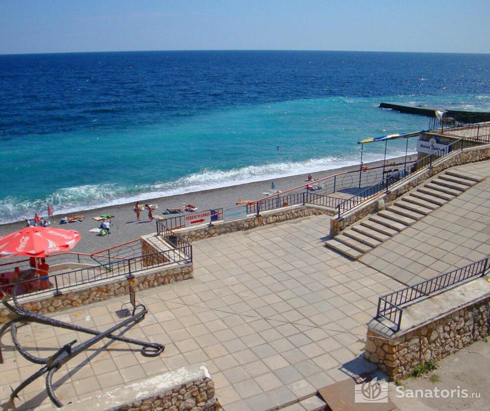 Лифт в главном здании санатория доставит гостей прямо на пляж. Там отдыхающие могут воспользоваться лежаками, расслабиться в специальных теневых зонах или перекусить в кафе. Для удобства есть отдельный душ и туалет.
