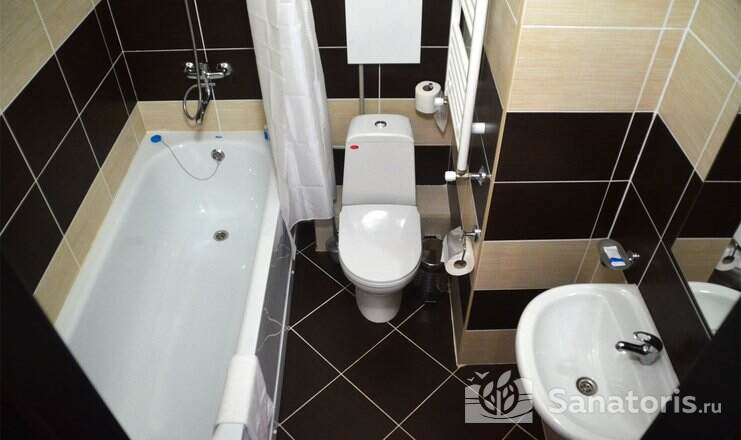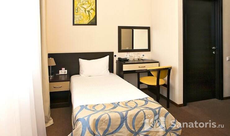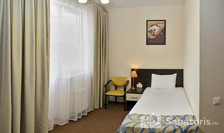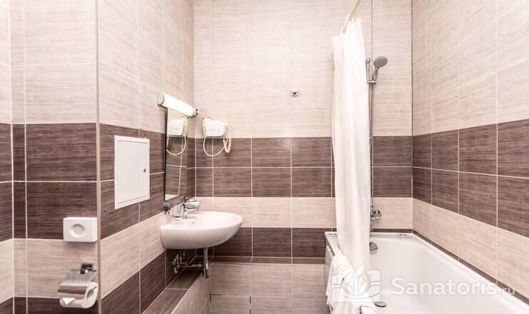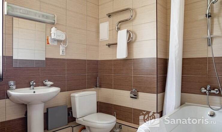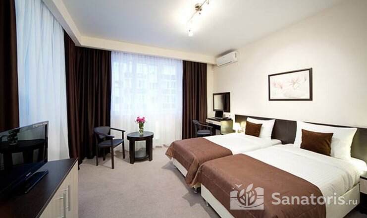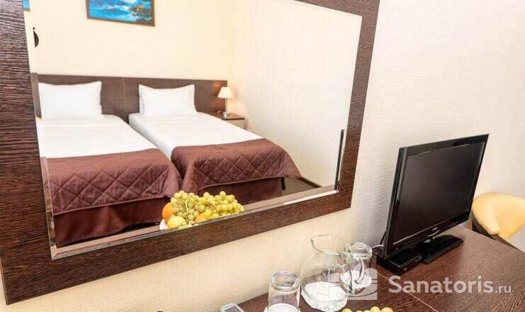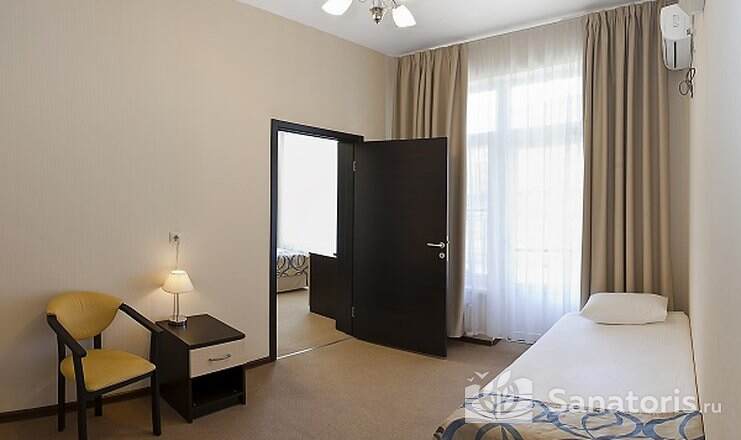 Так же на территории санатория есть двухэтажный корпус №6. Здесь предусмотрены удобства на 2 номера. В номерах есть мини-холодильник и телевизор. Апартаменты класса «люкс» расположены в двухэтажном корпусе №7.