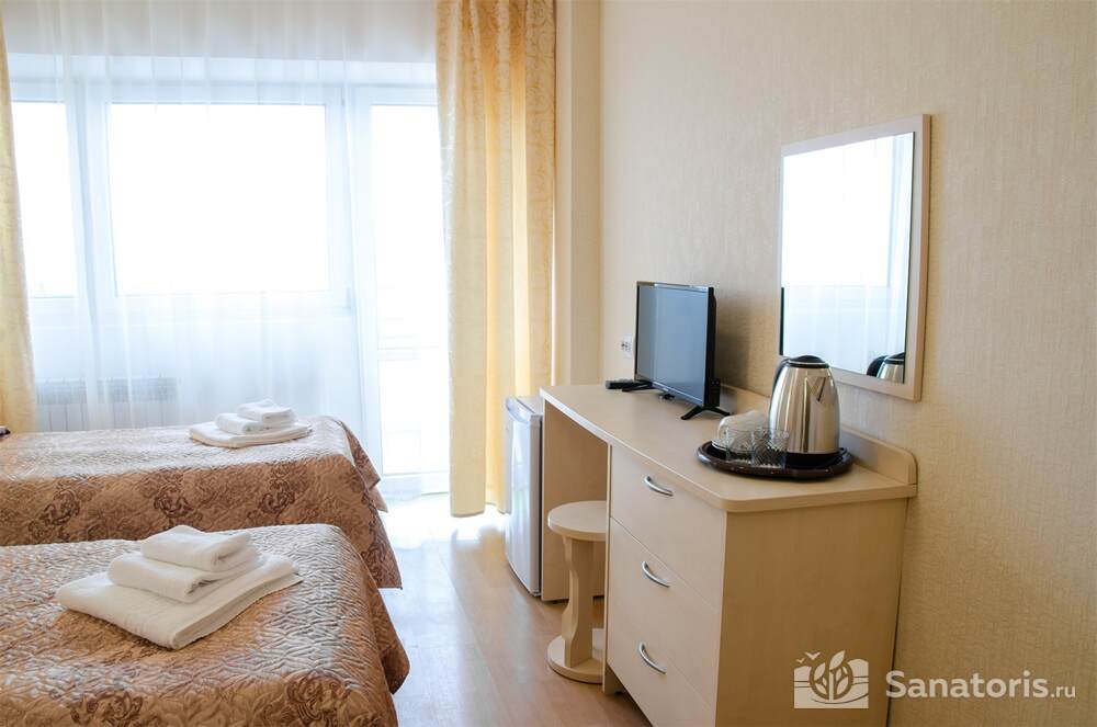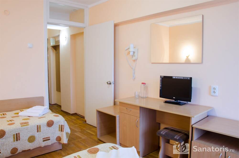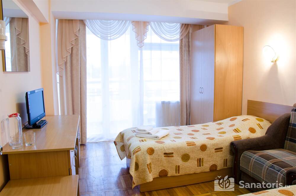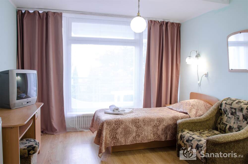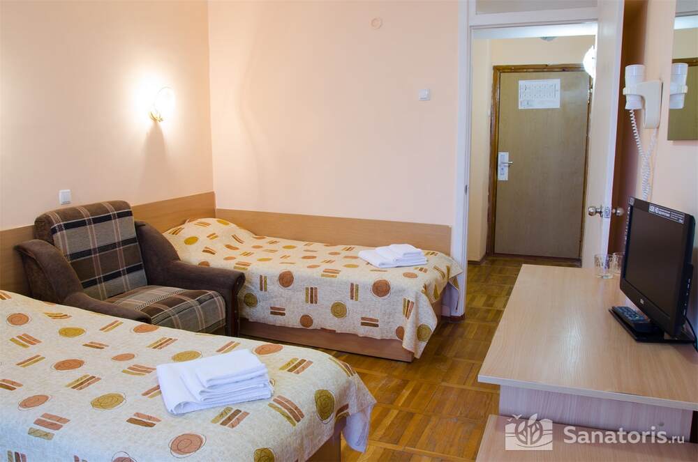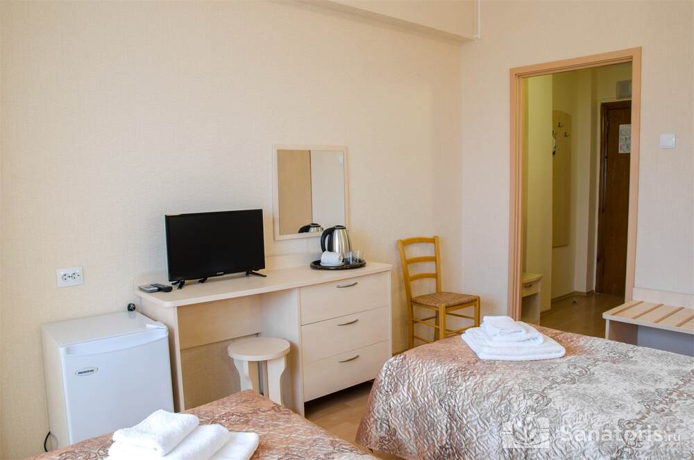 В главном корпусе находятся спальные номера. У него пятнадцать этажей и несколько лифтов. Здесь можно найти номера категории стандарт, люкс, полулюкс. Отдельно стоит еще один спальный корпус, который размещается на берегу моря и предоставляет к проживанию люксовые семейные номера. За одно посещение санаторий способен вместить более пятисот людей.