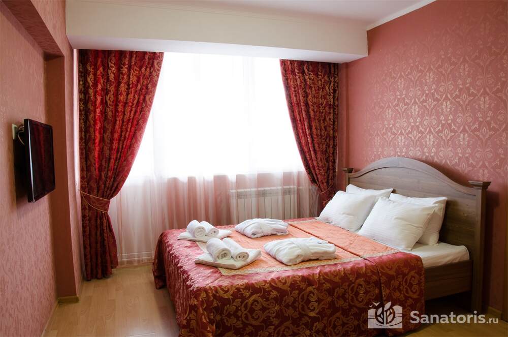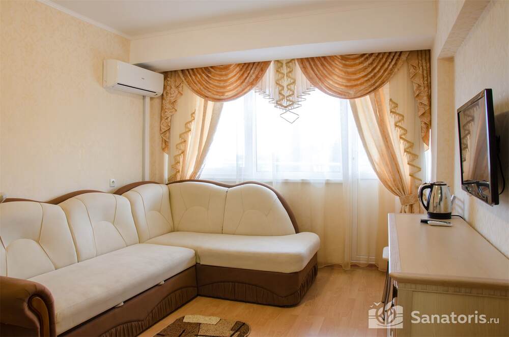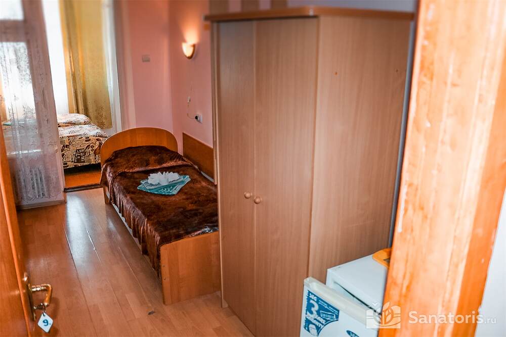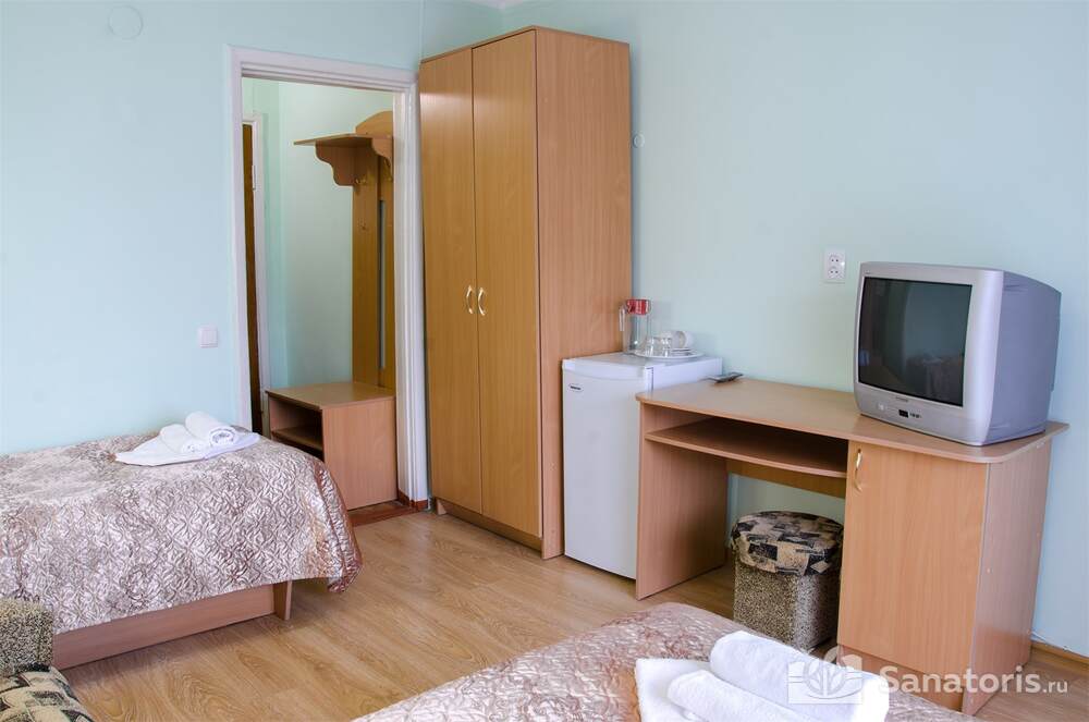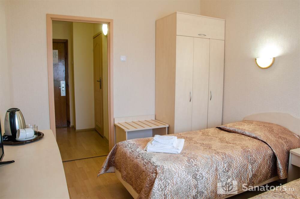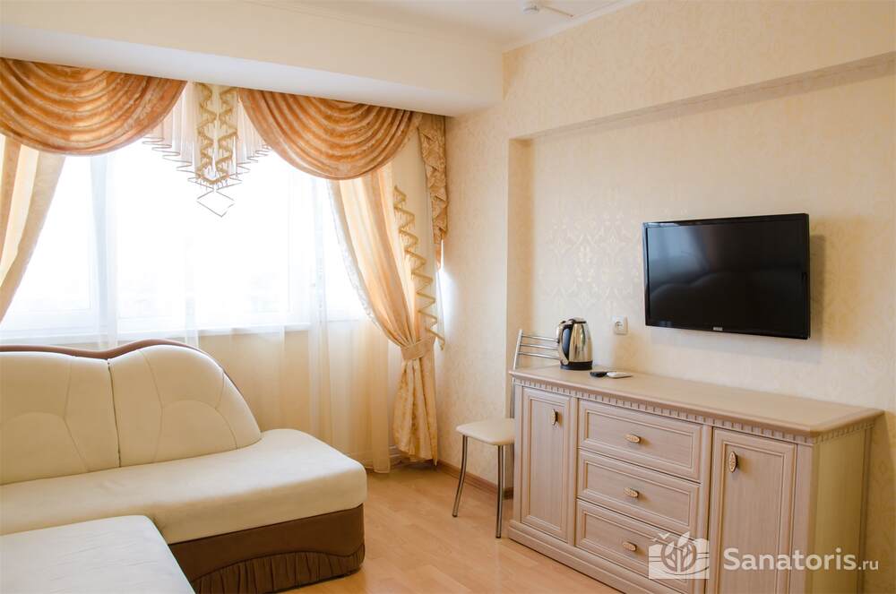 В главном корпусе находятся спальные номера. У него пятнадцать этажей и несколько лифтов. Здесь можно найти номера категории стандарт, люкс, полулюкс. Отдельно стоит еще один спальный корпус, который размещается на берегу моря и предоставляет к проживанию люксовые семейные номера. За одно посещение санаторий способен вместить более пятисот людей.