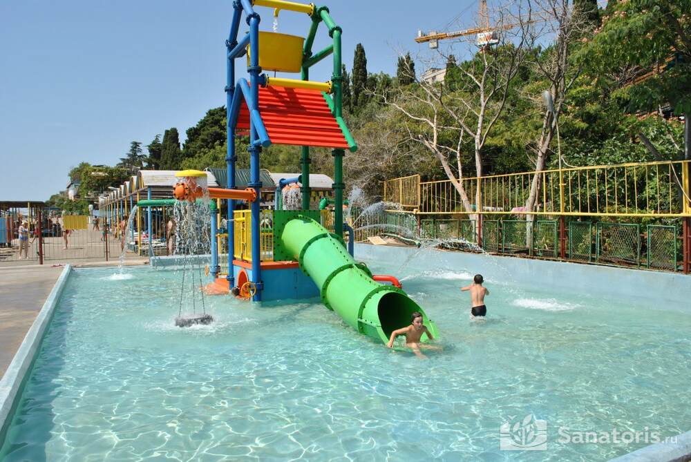 Регулярно для взрослых и подростков проводится фитнес и аэробика в воде, а для деток организуется лечебное плавание. До пляжа от здравницы идти совсем недалеко. На нем также имеются лежаки и зонтики, защищающие от солнца. На набережной приятно прогуляться, посидеть в кафе и полюбоваться красивейшим закатом.